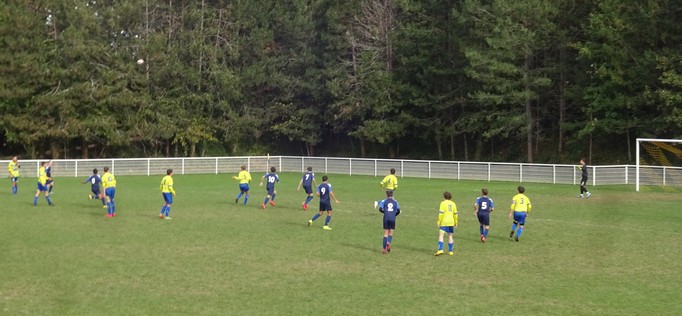 Les vingt premières minutes sont plutôt timides. Les locaux tiennent le ballon sans toutefois être dangereux. L’entente ouvre le score sur un coup franc flottant de vingt mètres d’Achille. Ce but met l’équipe sur les bons rails et lui donne confiance. Ca enchaîne mieux et les occasions arrivent progressivement. L’entente double la mise par Thomas de près qui profite d’un ballon repoussé dans l’axe par le gardien. 2-0, score à la pause. En deuxième période, il n’y a quasiment plus qu’une équipe sur le terrain. Les partenaires de Louis monopolisent le ballon, se créée de multiples occasions par Pierre, Flavio, Victor, Elno (sur la transversale), Achille mais ne trouvent pas les filets. Solide défensivement à l’image de Louis D, très présent dans le jeu aérien, l’entente a aussi bien combiné au milieu avec Maxence et Pierre. Le score aurait pu, dû, être bien plus lourd ! A confirmer….