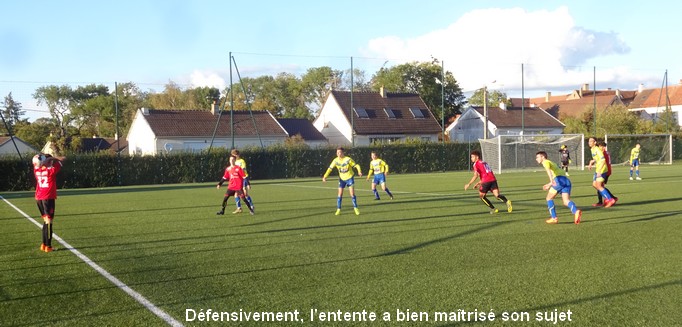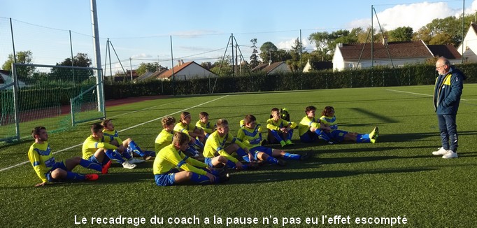 Les U18 s’imposent 3-1 face à USSE à l’issue d’un match relativement tristounet, bien loin de ce qu’ils nous avaient donné l’habitude de voir. Le début de rencontre est équilibré. Les locaux ouvrent le score sur une frappe mal évaluée par Pierrot. L’égalisation vient très rapidement par Thomas, idéalement servi par Adam. Les partenaires de Louis J prennent ensuite l’avantage par Victor parti dans le dos de la défense pour venir battre de près le portier adverse. Sans être rayonnants, les occasions se multiplient mais le score n’évolue pas alors que le résultat devrait être scellé à la pause.