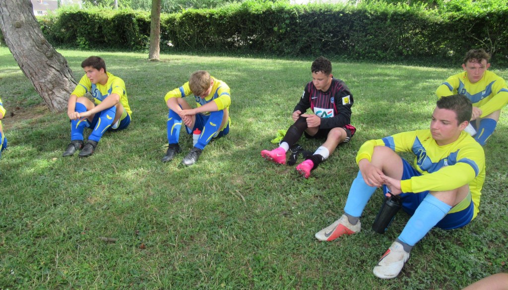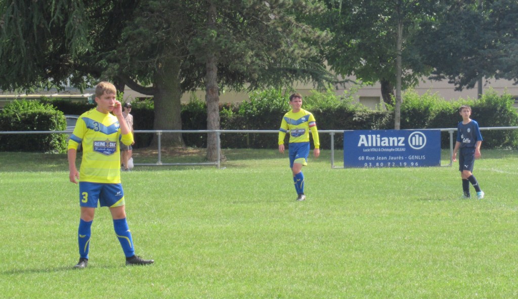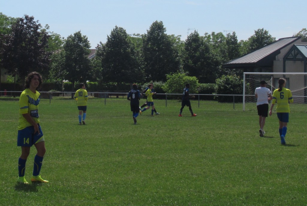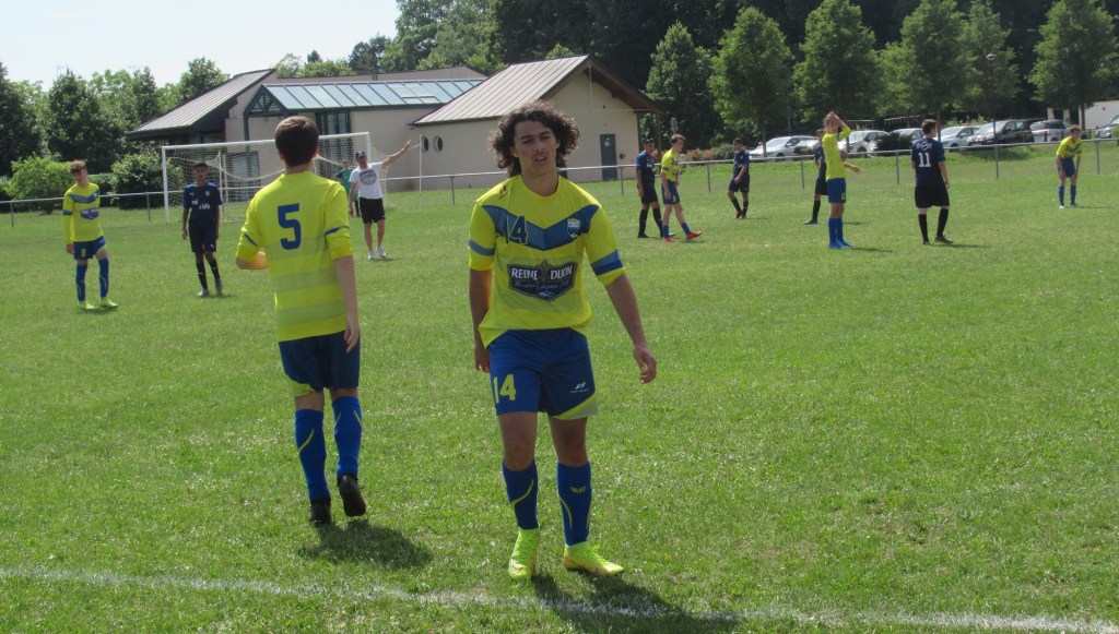 Les U18 ont partagé les points face à une très belle équipe de Sennecey / Neuilly au fort potentiel physique. D’entrée de jeu, Pierrot nous fait une « Lagaf » qui permet aux locaux de mener au score. Le jeu est équilibré. Samuel pèse sur la défense par son pressing constant. Un coup franc de Louis est repoussé par le gardien et « Boule » à l’affût égalise en vrai renard des surfaces. Chaque équipe à son lot d’occasions et se sont les banlieusards dijonnais qui vont faire la différence et prendre un avantage de deux buts. Mais nos petits jeunes ont de la ressource et vont trouver l’énergie nécessaire pour revenir au score, puis égaliser grâce à deux nouveaux buts de « Boule ». On retiendra le rythme assez élevé de la rencontre malgré la chaleur et la très belle prestation de Flavio en défense centrale.