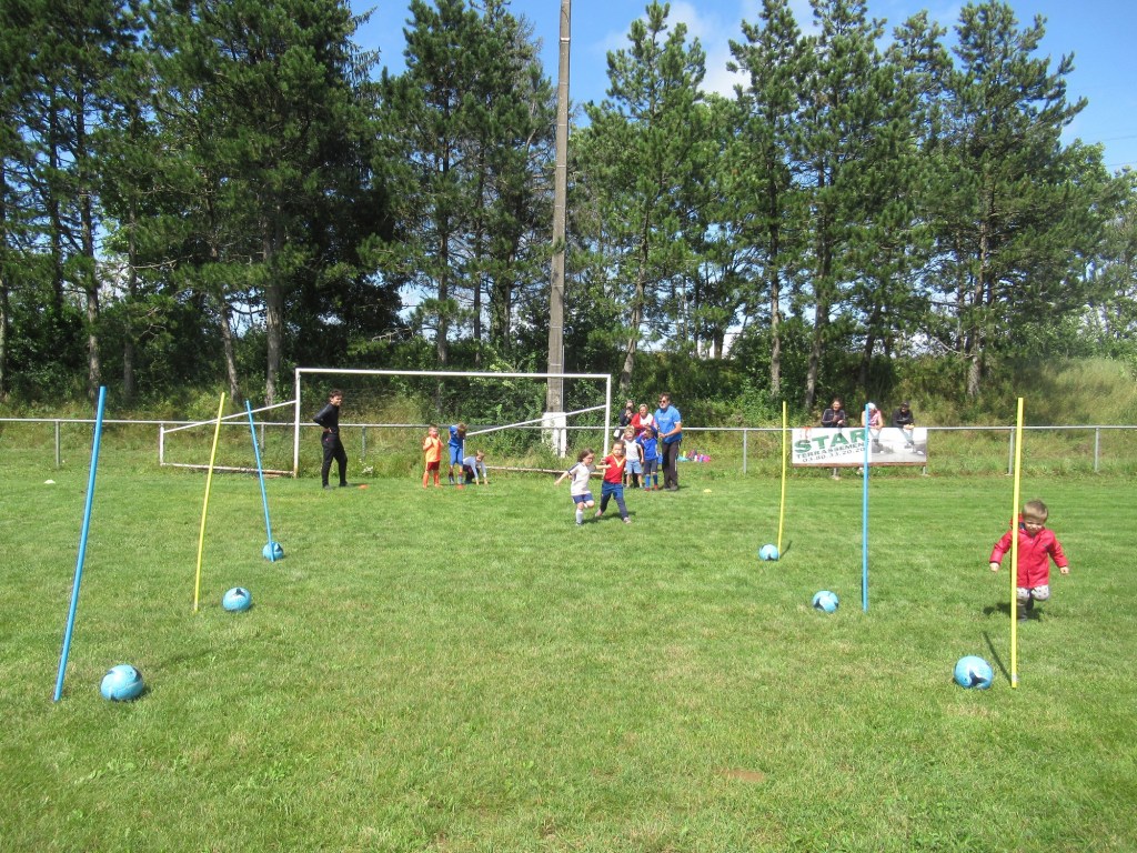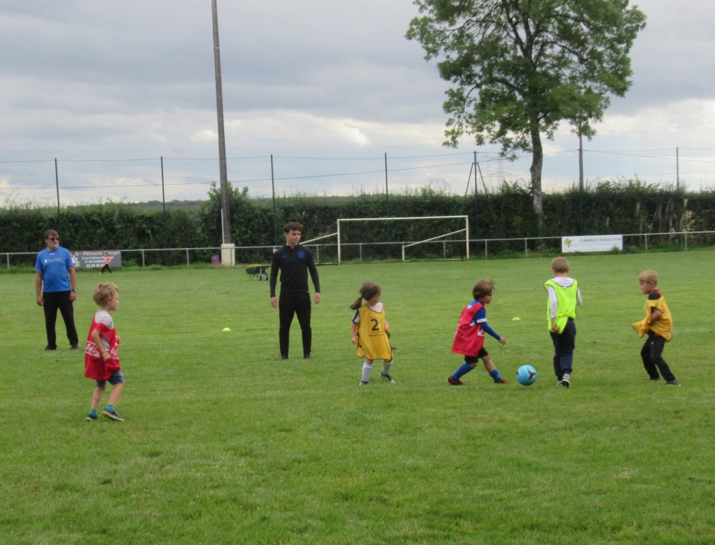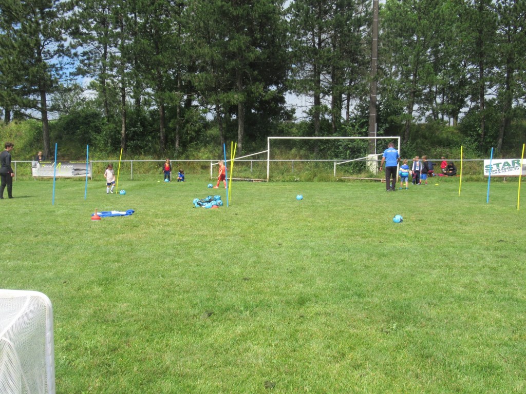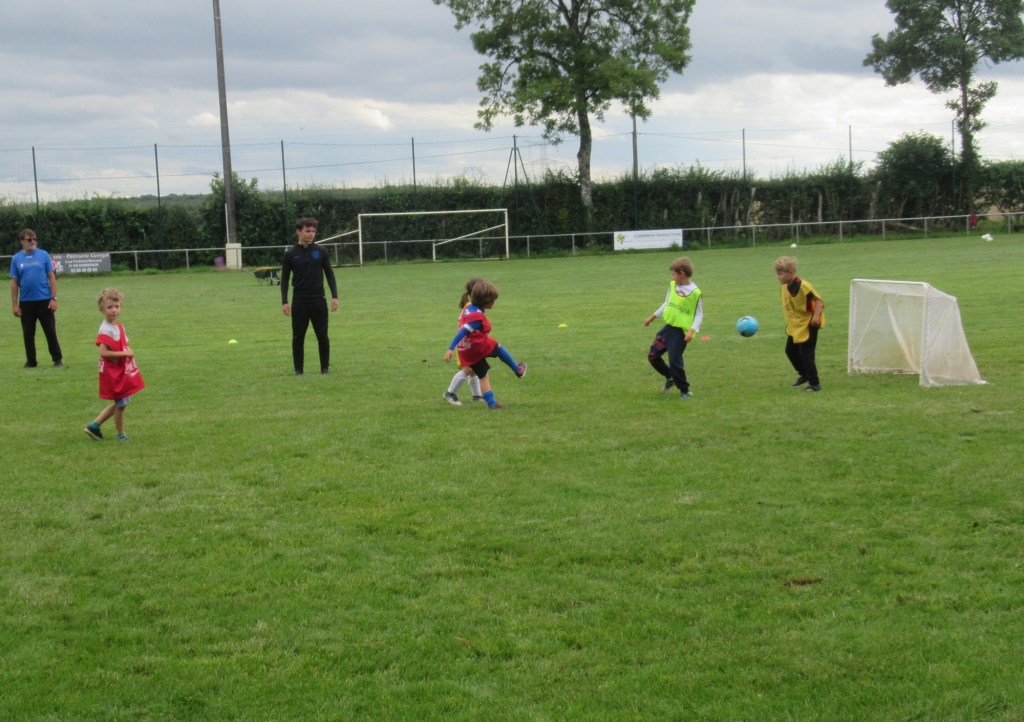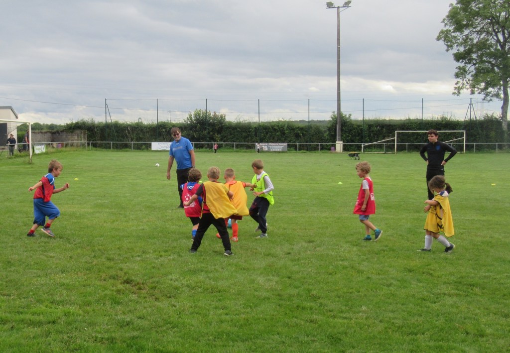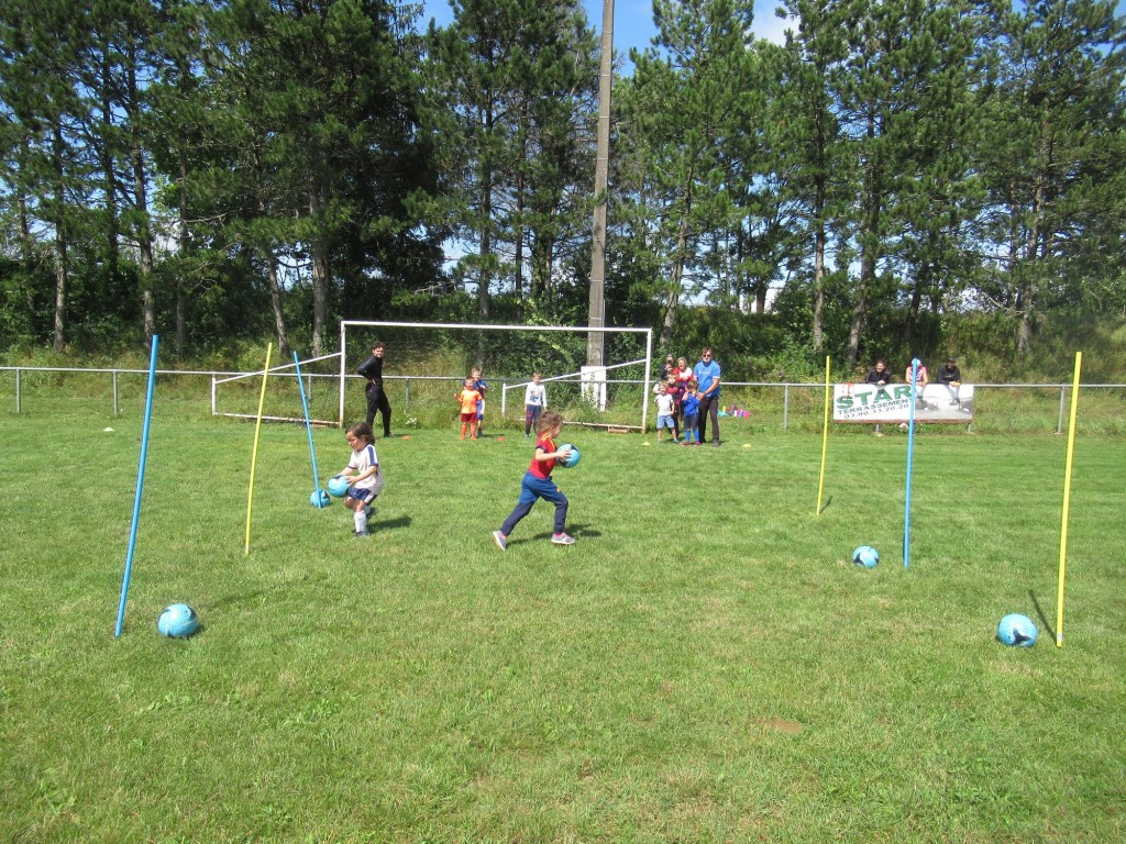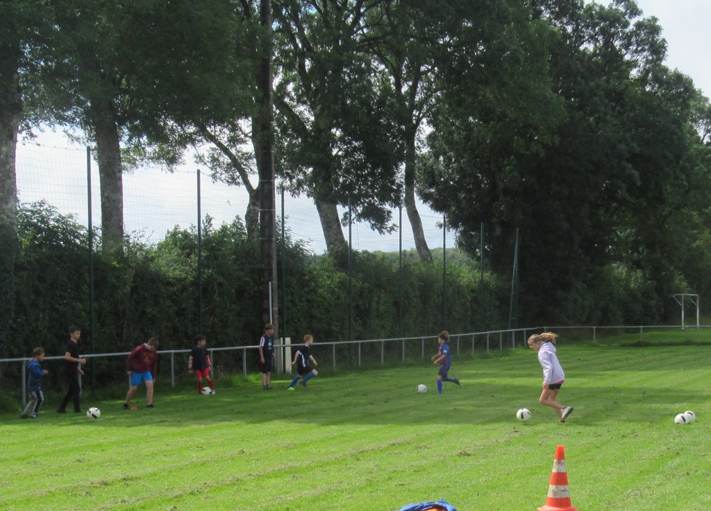 Une averse en tout début d’après midi a bien plombé l’ambiance. Toutefois une quinzaine de jeunes (dont trois féminines) ont bravé la pluie pour s’adonner à leur sport favori. Le retour du soleil a vite réchauffé l’atmosphère. Exercice de coordination, travail technique, jeu et ….. le petit match de fin d’entraînement tant attendu ! Voila le programme d’une séance sans prétention pour garder le parfum des vacances !