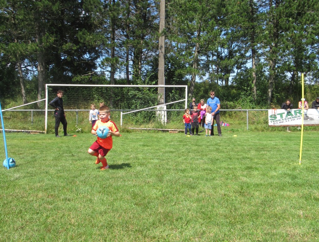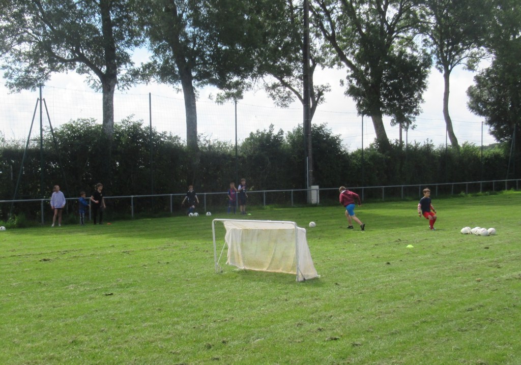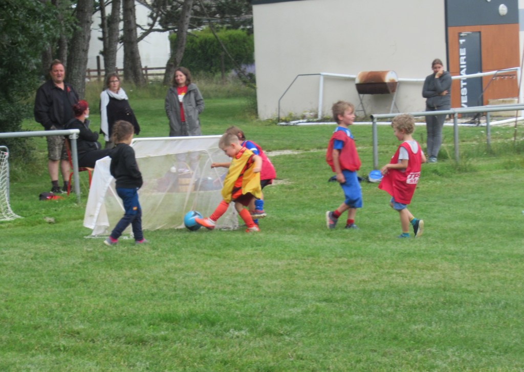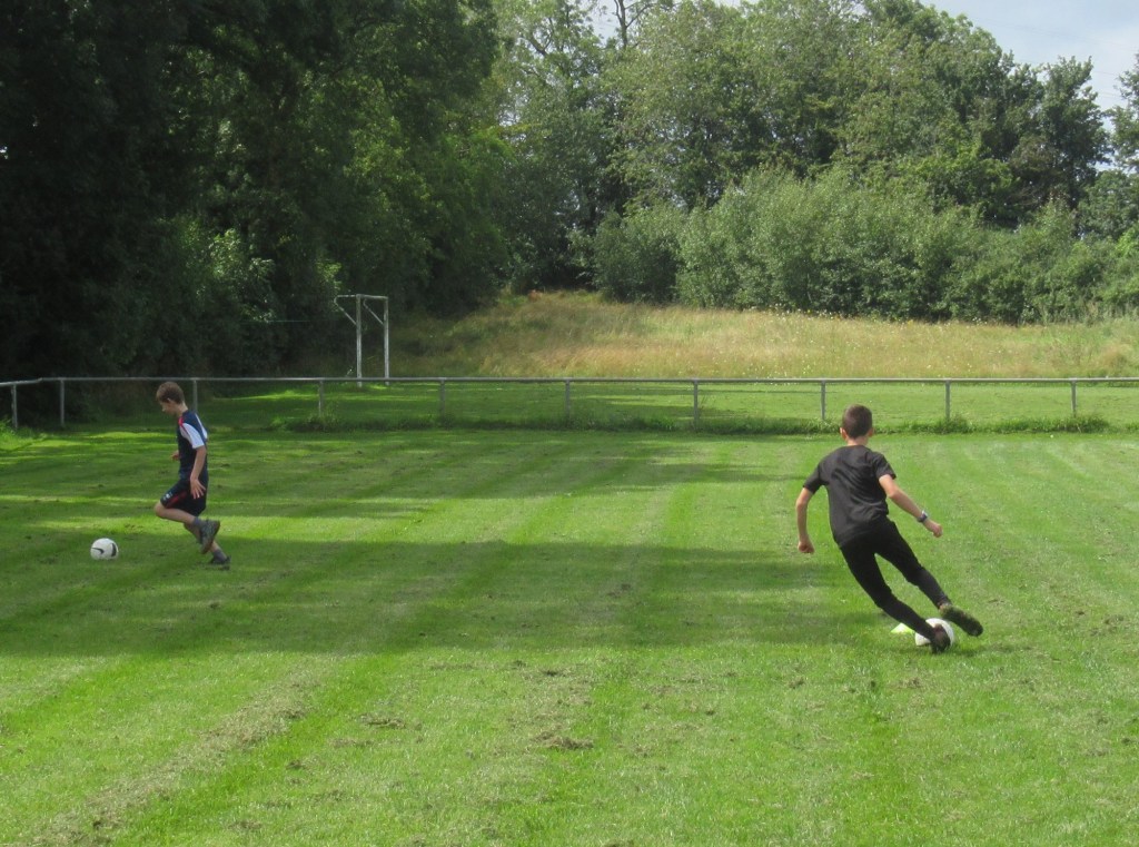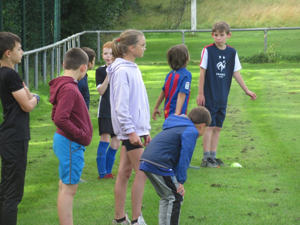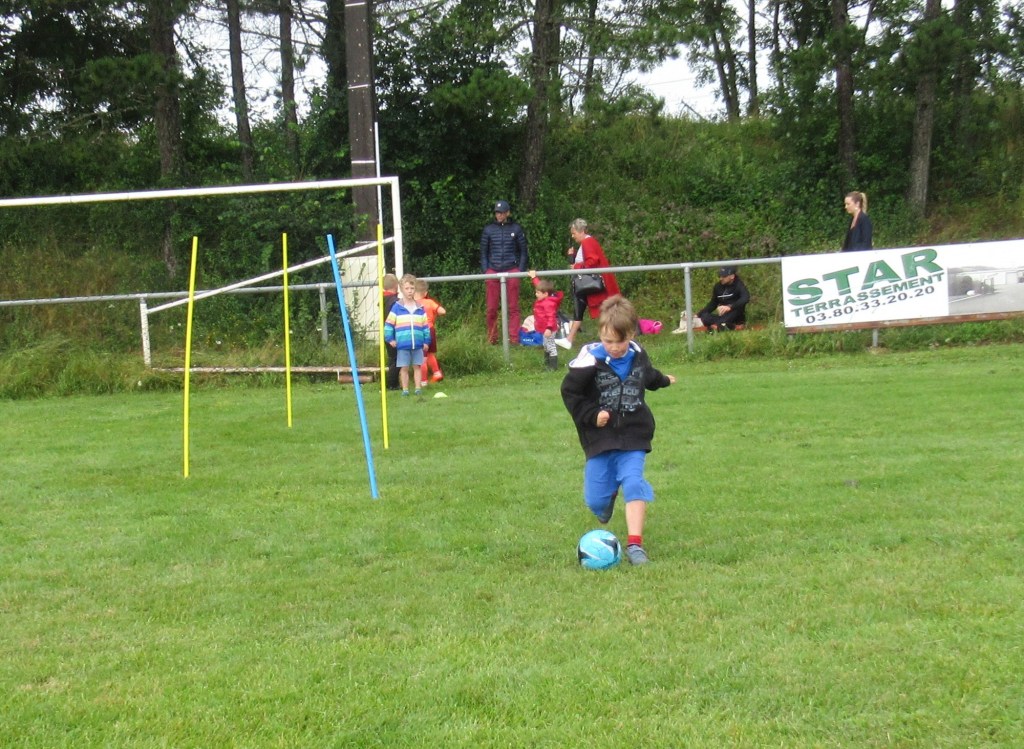 Une averse en tout début d’après midi a bien plombé l’ambiance. Toutefois une quinzaine de jeunes (dont trois féminines) ont bravé la pluie pour s’adonner à leur sport favori. Le retour du soleil a vite réchauffé l’atmosphère. Exercice de coordination, travail technique, jeu et ….. le petit match de fin d’entraînement tant attendu ! Voila le programme d’une séance sans prétention pour garder le parfum des vacances !