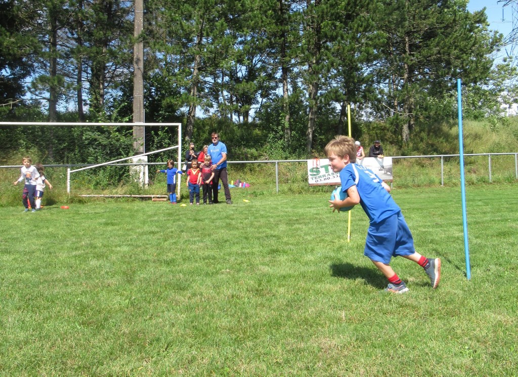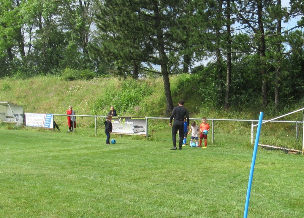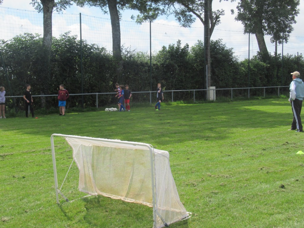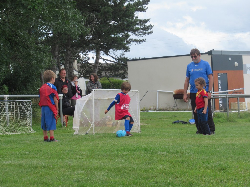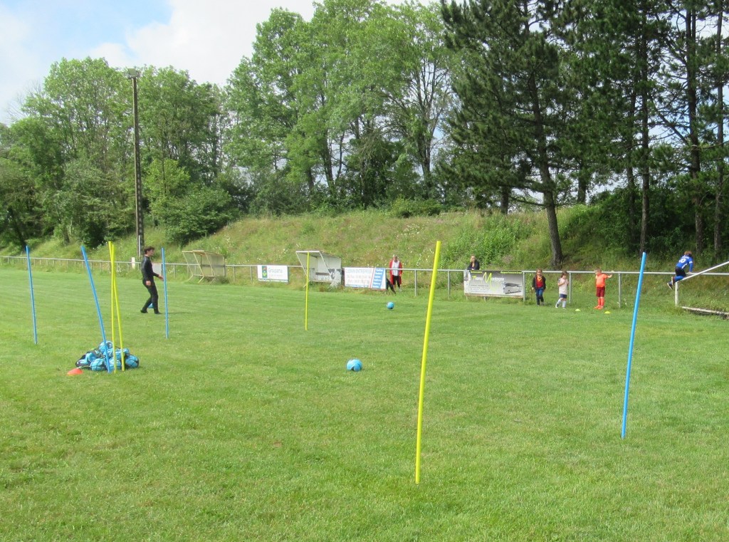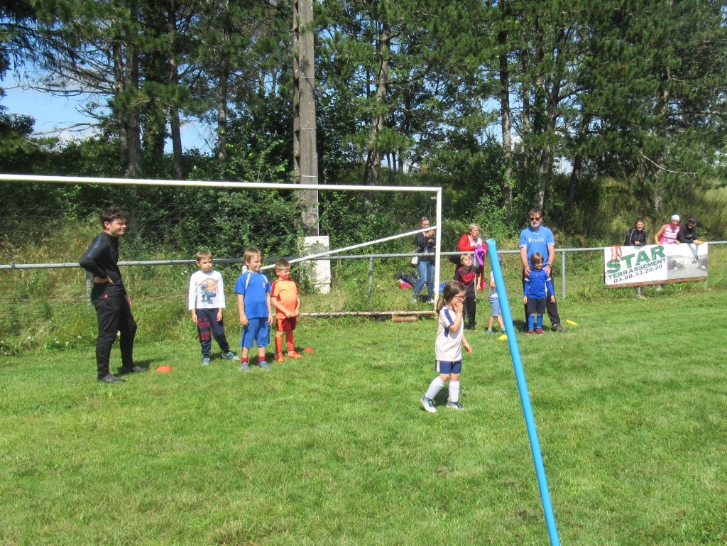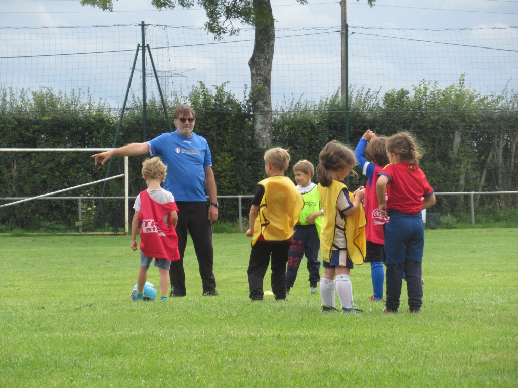 Une averse en tout début d’après midi a bien plombé l’ambiance. Toutefois une quinzaine de jeunes (dont trois féminines) ont bravé la pluie pour s’adonner à leur sport favori. Le retour du soleil a vite réchauffé l’atmosphère. Exercice de coordination, travail technique, jeu et ….. le petit match de fin d’entraînement tant attendu ! Voila le programme d’une séance sans prétention pour garder le parfum des vacances !