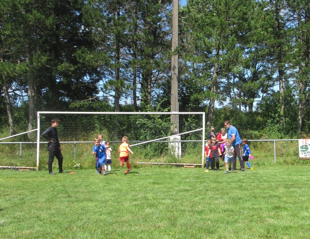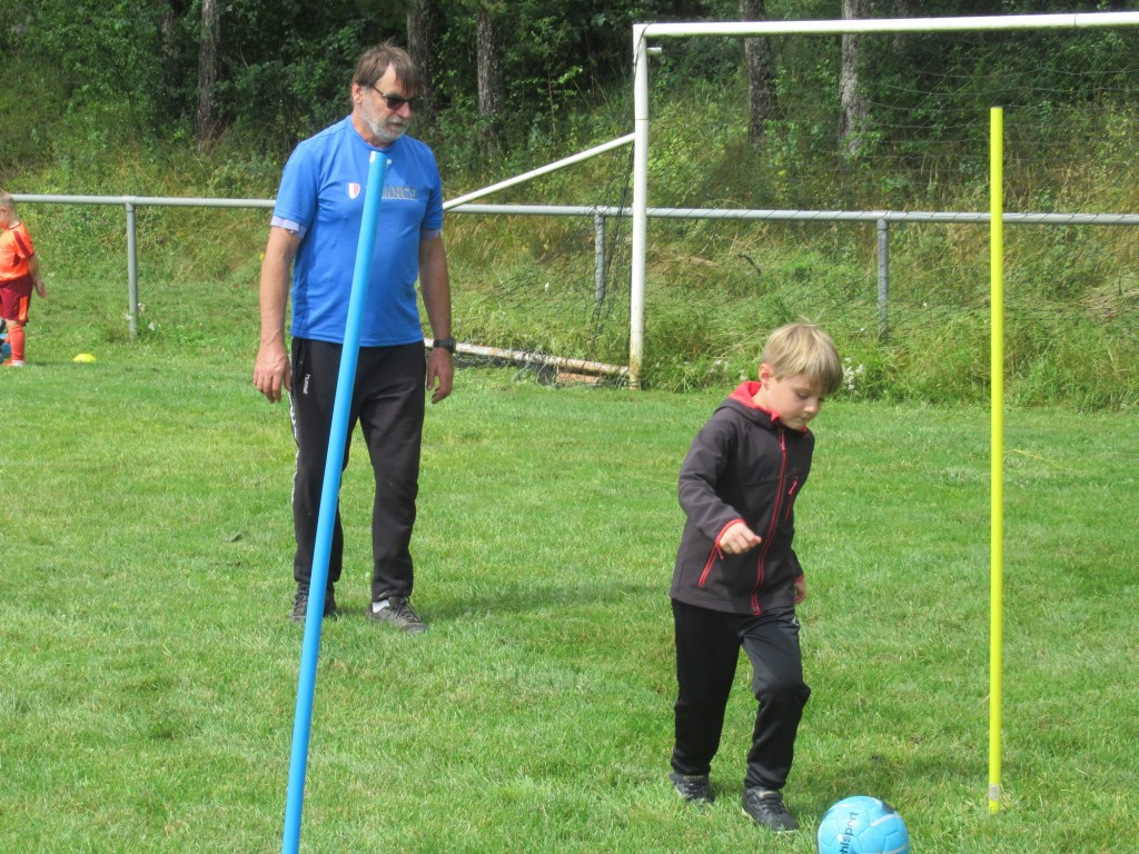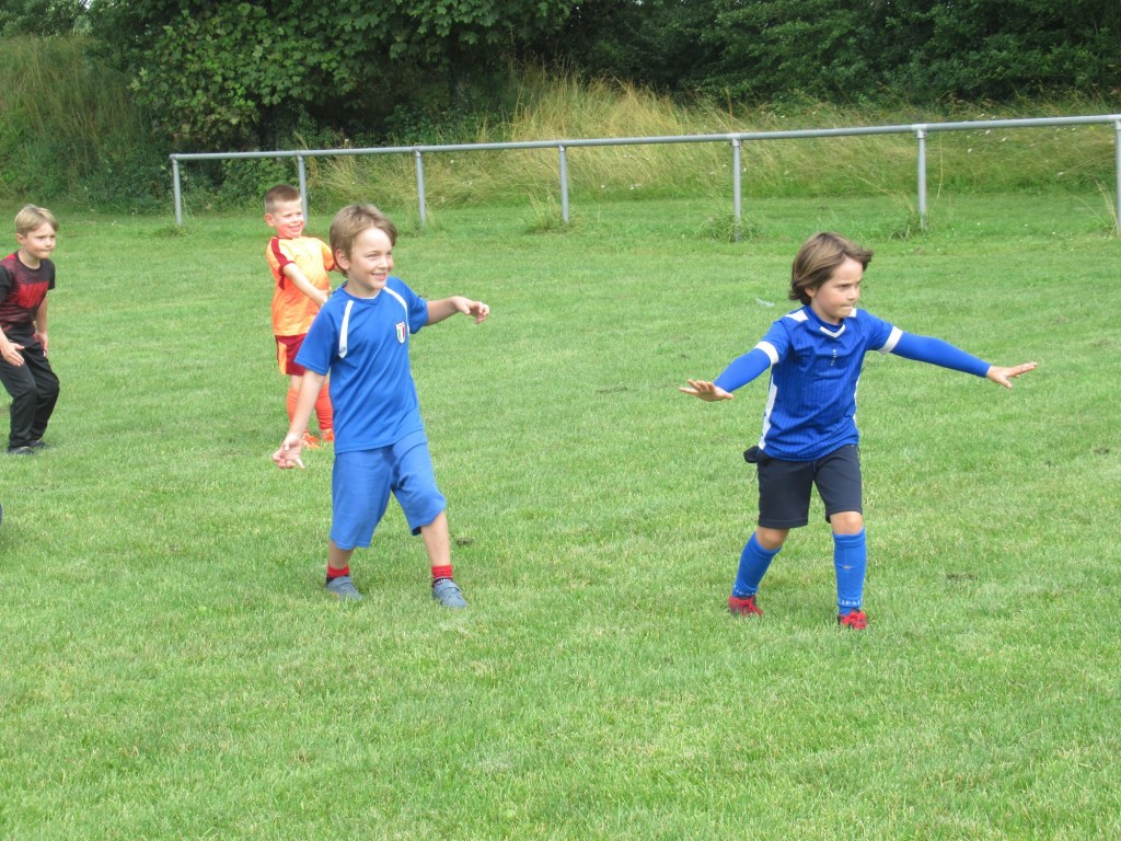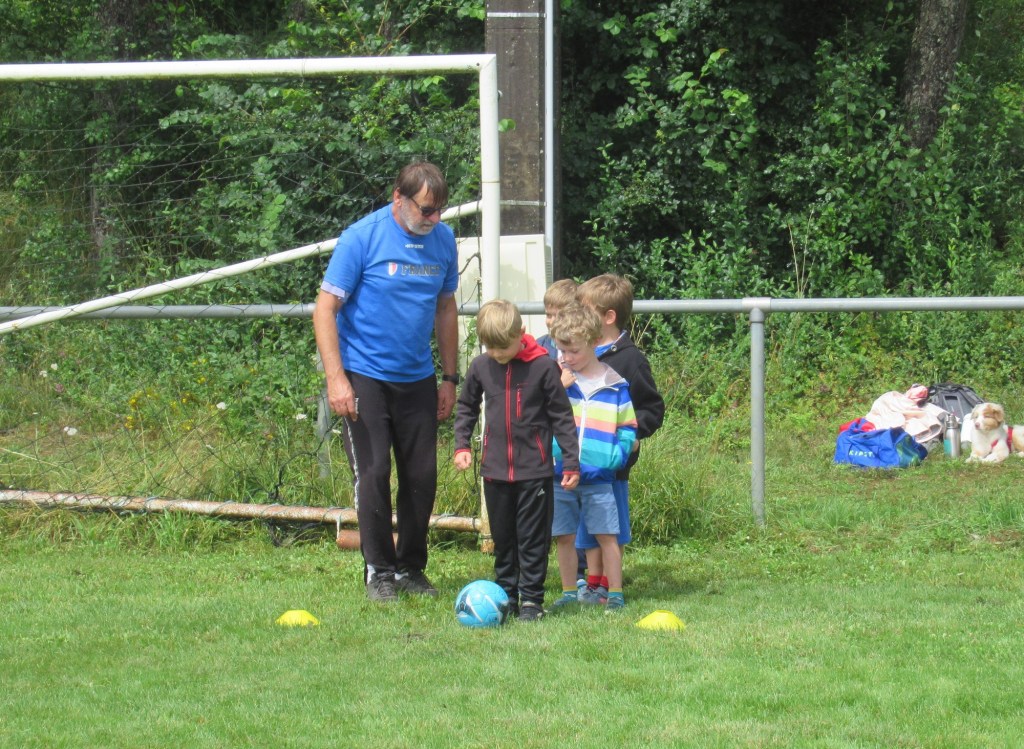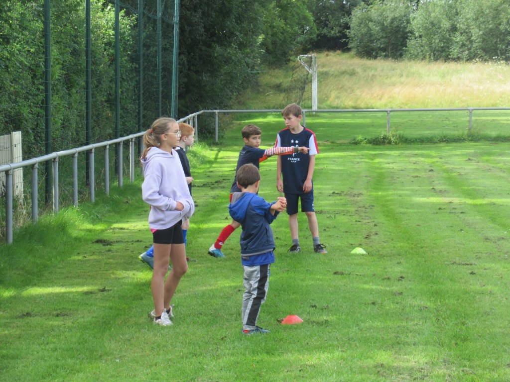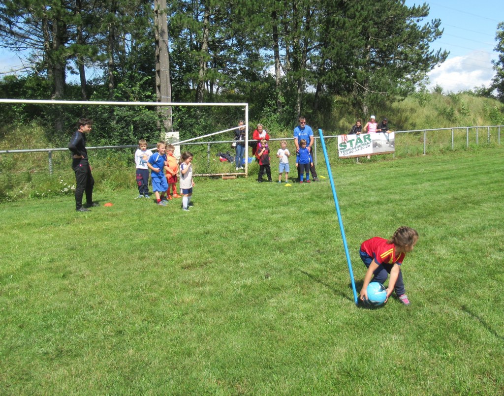 Une averse en tout début d’après midi a bien plombé l’ambiance. Toutefois une quinzaine de jeunes (dont trois féminines) ont bravé la pluie pour s’adonner à leur sport favori. Le retour du soleil a vite réchauffé l’atmosphère. Exercice de coordination, travail technique, jeu et ….. le petit match de fin d’entraînement tant attendu ! Voila le programme d’une séance sans prétention pour garder le parfum des vacances !