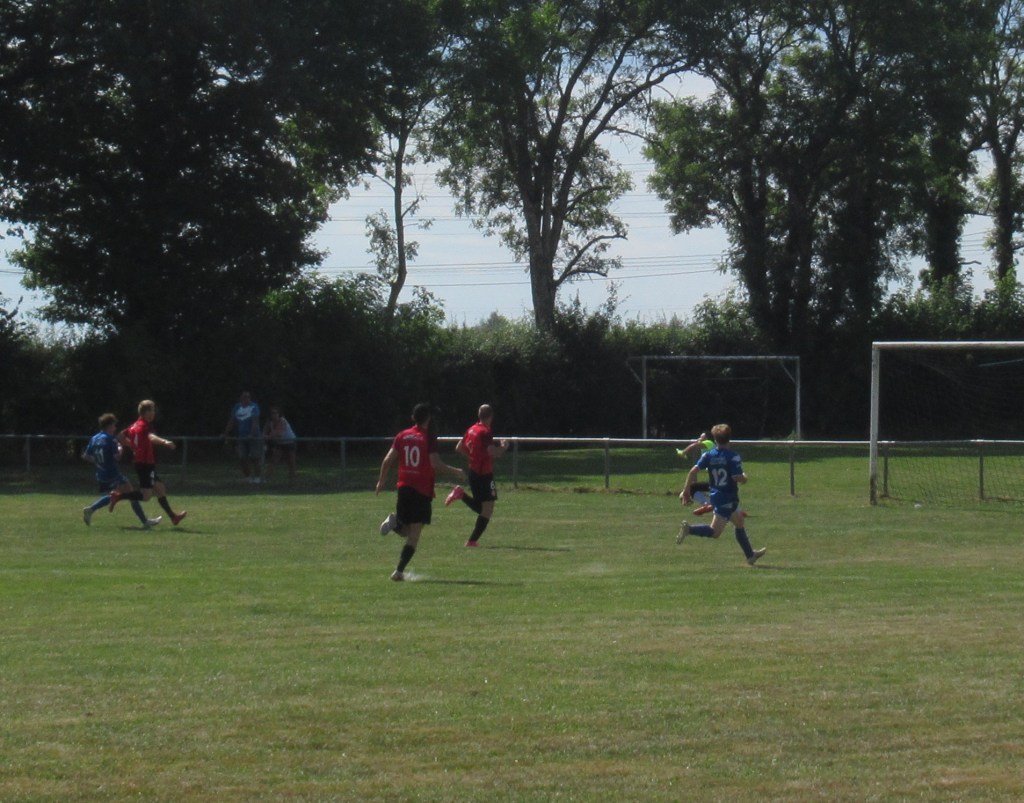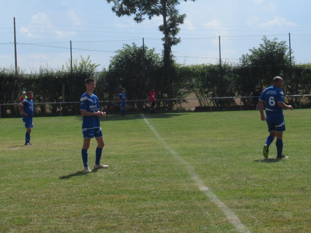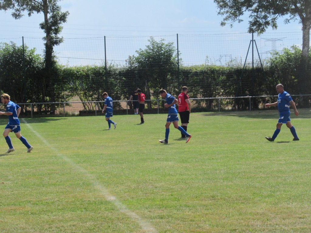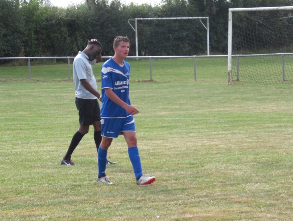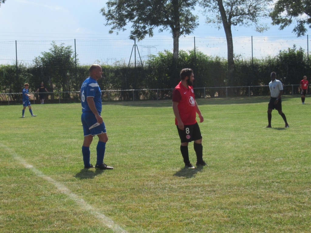 Les choses commencent plutôt mal puisque les visiteurs ouvrent rapidement le score. Mais les hommes de cap’tain Mercu ne s’en laissent pas compter et égalisent par Kawa qui reprend à bout portant une frappe de Clément repoussée par le portier adverse. On assiste à une bonne partie de kik and rush dans laquelle les défenses prennent le pas sur les attaques. Ca bataille ferme au milieu de terrain et quelques cartons jaunes s’échappent de la poche de l’arbitre qui maîtrise bien son match. 1 à 1 à la pause.