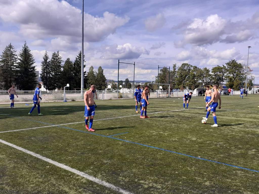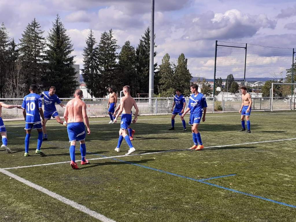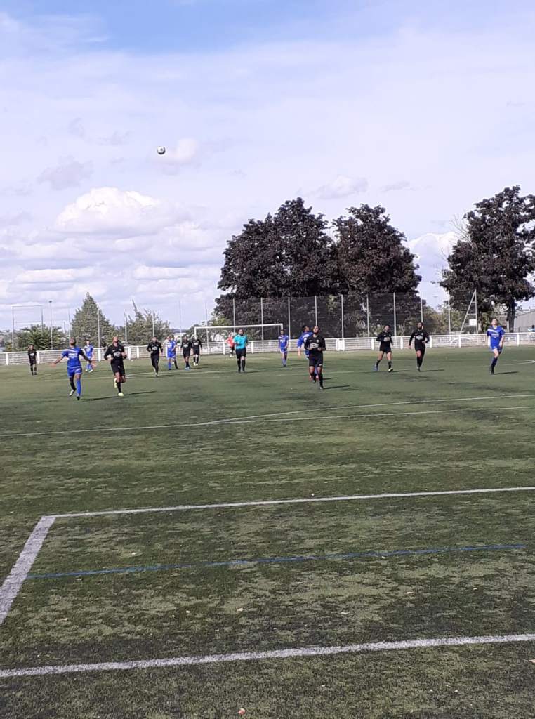 Le FC Grésilles ouvre le score mais sur un coup franc de Basile un défenseur marque contre son camp d’une belle tête. Puis pénalty pour les Grésilles juste avant la mi temps 1-2. Au retour des vestiaires faute sur Cyril et pénalty transformé par Clément, 2-2. Les locaux pressent et prennent l’avantage. Puis un nouveau pénalty contre les bleus, 2-4 puis 2-5 sur un coup franc dévié. Et un petit dernier pour un attaquant qui vient en solo éliminer la défense et Seb. 2-6 score final. En début de rencontres, Cyril s’est vu refuser un but pour une position de hors-jeu sur un service de Basile. Les 2 gardiens se sont mis en valeur en réalisant de belles parades. Les bleus ont longtemps tenu avant de céder en fin de match.