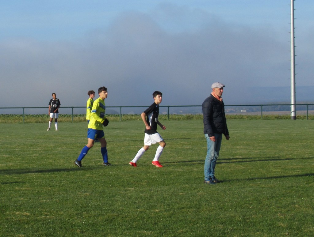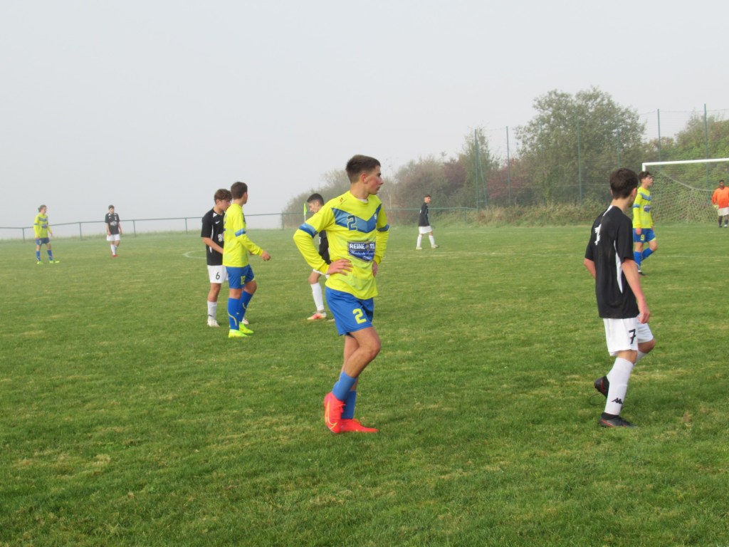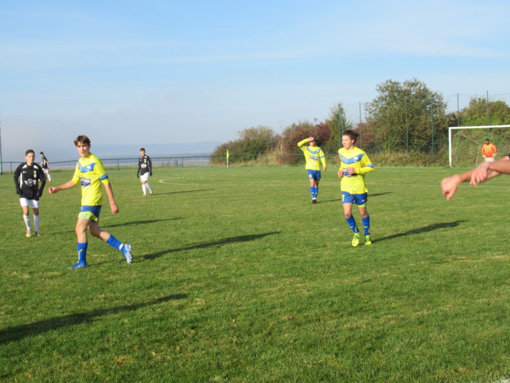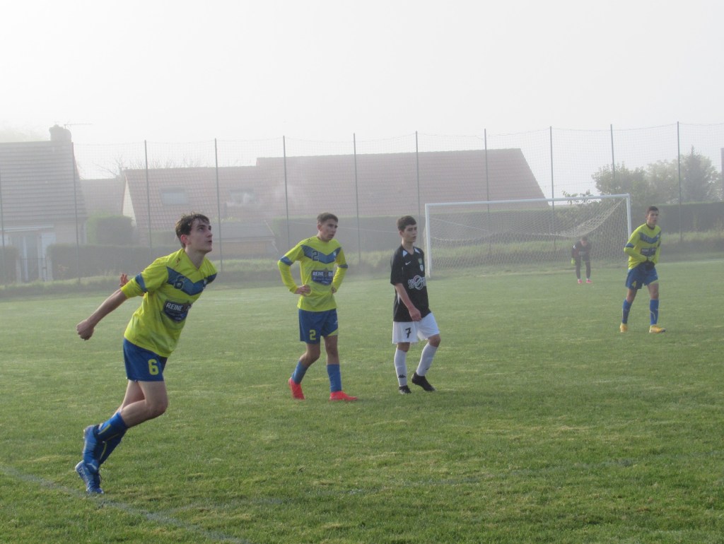 La victoire est plus tranquille que le score ne l’indique. La première période est bien maitrisée et la domination sans faille. Après dix minutes de jeu, « Boule » trouve le chemin des filets d’une superbe frappe lobée de vingt mètres. Dix minutes plus tard il récidive de près en marquant dans un angle fermé après que Simon ait trouvé la transversale. Entre temps Thomas avait manqué…l’immanquable. Pierrot est au chômage technique. 2-0 à la pause. Ensuite, les jaunes perdent leur jeu de passe qui faisait leurs forces depuis le début de saison. La défense concède un corner sur une erreur technique. Et Pierrot boit le calice jusqu’à la lie en étant trompé par Timéo, son propre défenseur, 2-1. On pourrait craindre le pire, mais sans être brillante l’entente a le ballon et se crée les occasions qui pourraient la mettre à l’abri. Mais il y a trop de précipitations et de déchet technique pour conclure. L’entente est toutefois suffisamment solide en défense en ne laissant aucune possibilité à l’adversaire de revenir. Victoire logique, mais on attend un contenu bien meilleur.