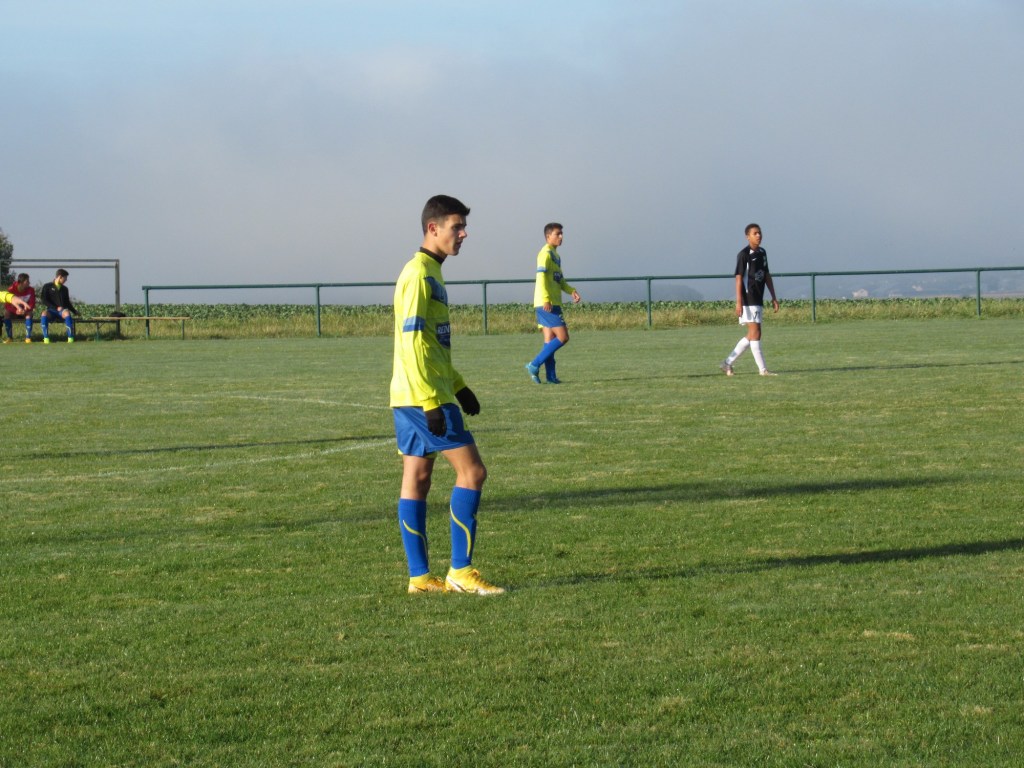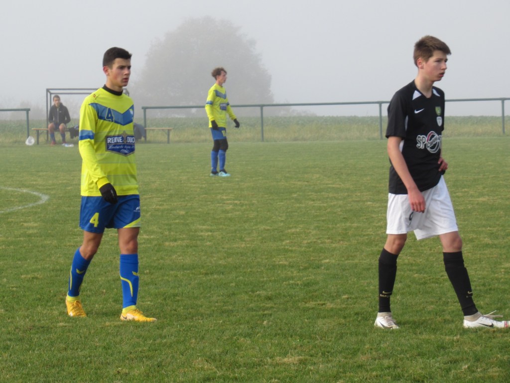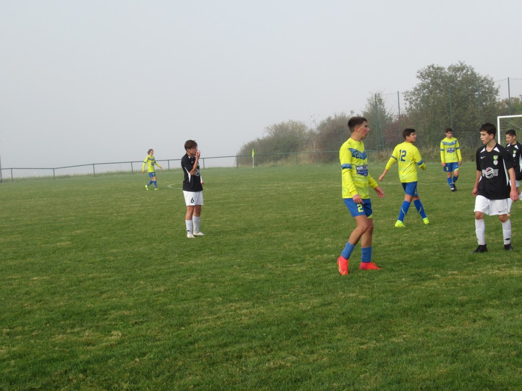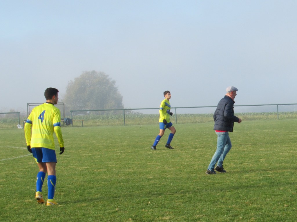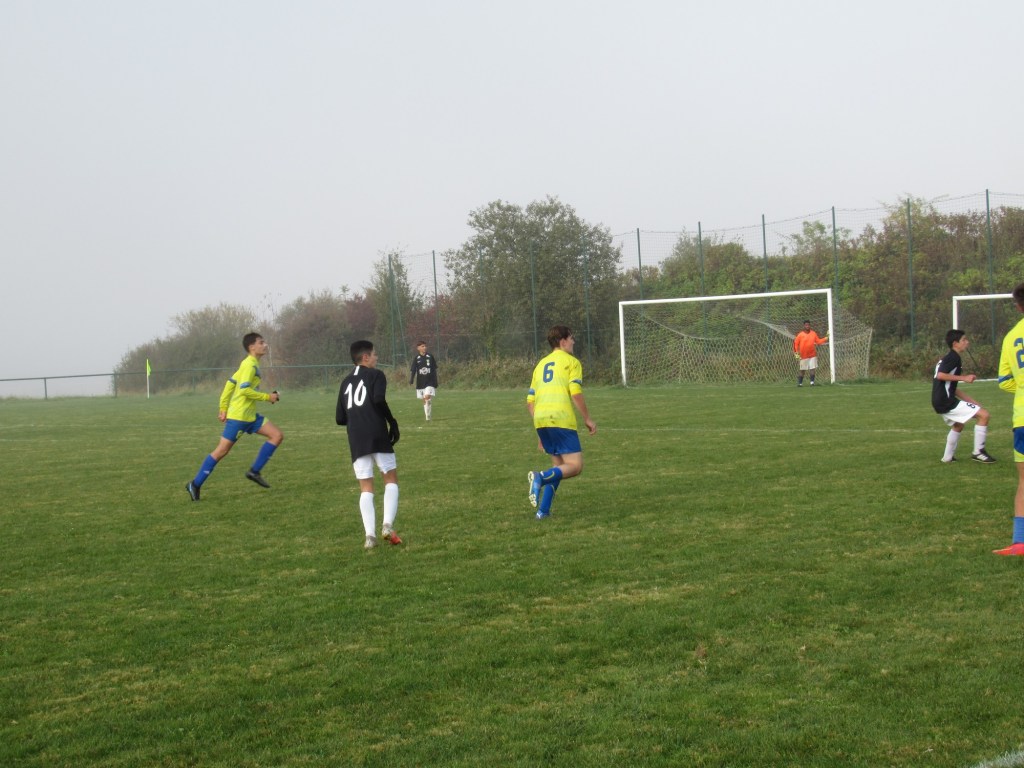 La victoire est plus tranquille que le score ne l’indique. La première période est bien maitrisée et la domination sans faille. Après dix minutes de jeu, « Boule » trouve le chemin des filets d’une superbe frappe lobée de vingt mètres. Dix minutes plus tard il récidive de près en marquant dans un angle fermé après que Simon ait trouvé la transversale. Entre temps Thomas avait manqué…l’immanquable. Pierrot est au chômage technique. 2-0 à la pause. Ensuite, les jaunes perdent leur jeu de passe qui faisait leurs forces depuis le début de saison. La défense concède un corner sur une erreur technique. Et Pierrot boit le calice jusqu’à la lie en étant trompé par Timéo, son propre défenseur, 2-1. On pourrait craindre le pire, mais sans être brillante l’entente a le ballon et se crée les occasions qui pourraient la mettre à l’abri. Mais il y a trop de précipitations et de déchet technique pour conclure. L’entente est toutefois suffisamment solide en défense en ne laissant aucune possibilité à l’adversaire de revenir. Victoire logique, mais on attend un contenu bien meilleur.