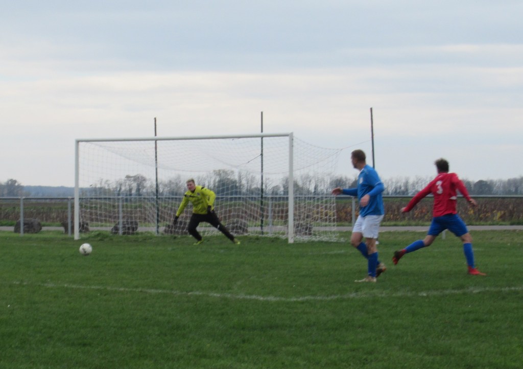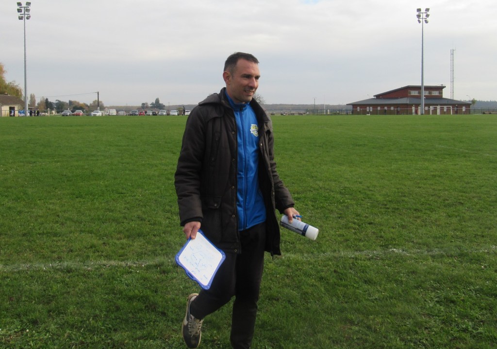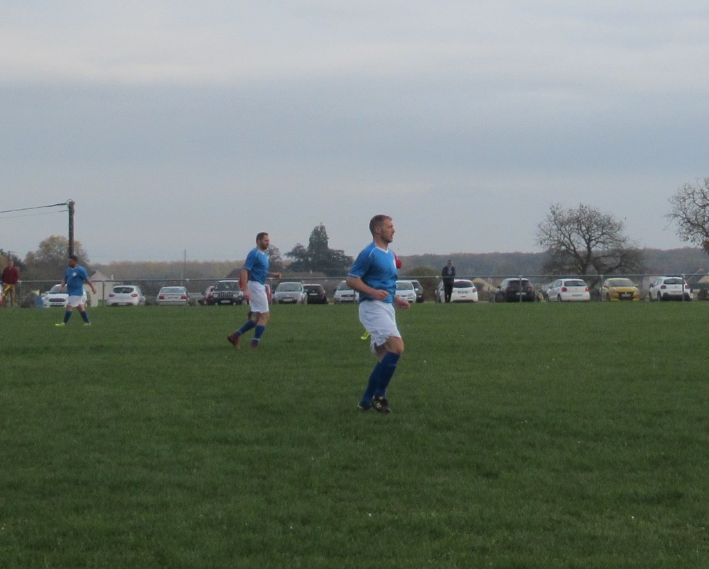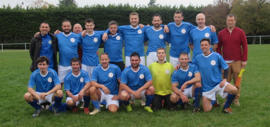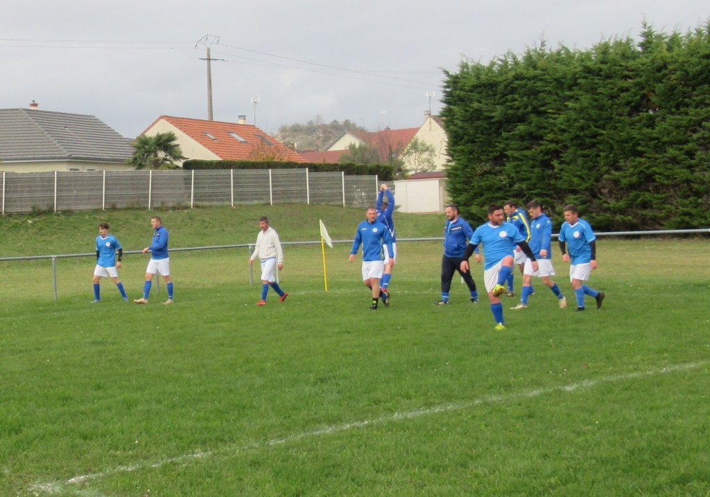 Le début de rencontre est plus que timide, mais pour leur première incursion dans le camp adverse, Elie mystifie trois défenseurs et marque d’une frappe croisée du gauche, 1-0. Mais pour ce début de match, c’est trop beau et les locaux profitent d’un cafouillage pour égaliser, 1-1. L’entrée en jeu de Renaud, qui apporte sa combativité et son agressivité dans le bon sens du terme, met ses coéquipiers sur les bons rails. Et Elie marque deux nouveaux buts, d’abord sur une service de Clément puis en profitant d’une erreur de la défense, 3-1 à la pause. En seconde période le FCSG met enfin la main sur le ballon et les occasions se multiplient par Elie encore et Thomas. Mais une frappe improbable des locaux vient se loger sous la latte et le match est relancé, 3-2. Mais les bleus emmenés par un Clément omniprésent dans l’entre jeu vont asseoir leur succès. Jordan dans un premier temps récupère un ballon mal dégagé pour marquer de près, 4-3. Bien servi sur un coup franc d’Alexis, Elie marque son quatrième but personnel qu’il dédiera à Michel Renault, affaibli par la maladie, son formateur en équipe de jeunes.
