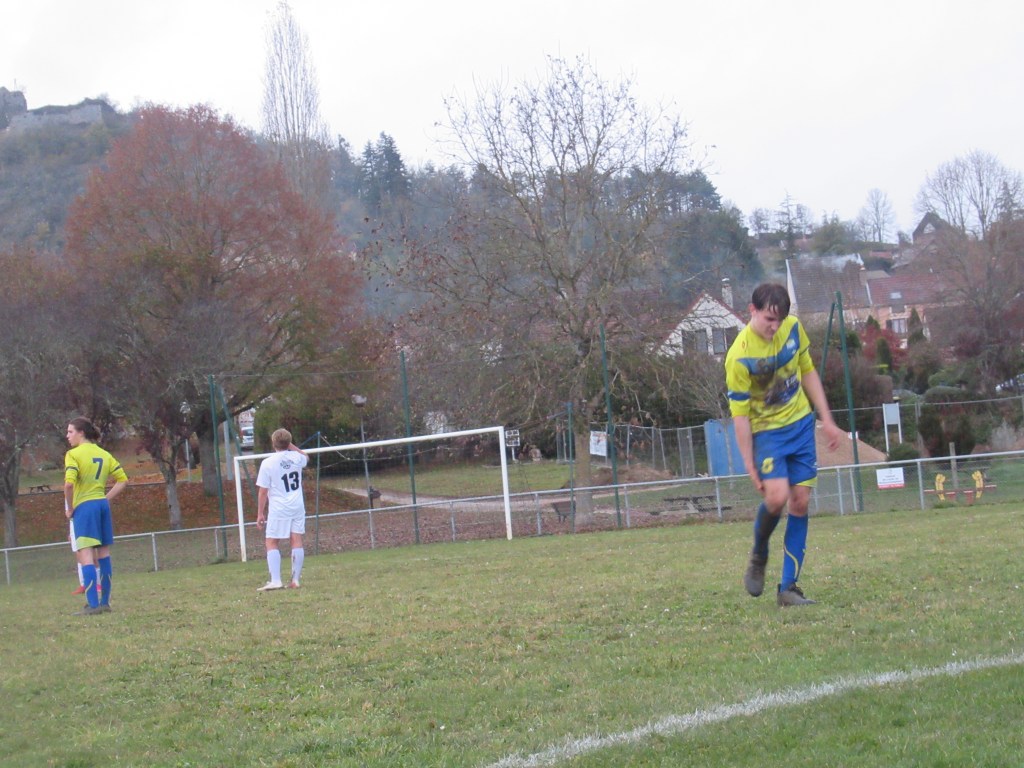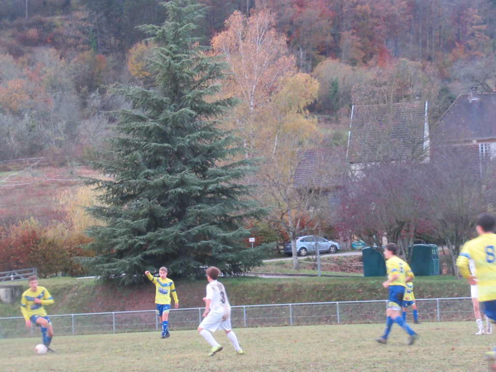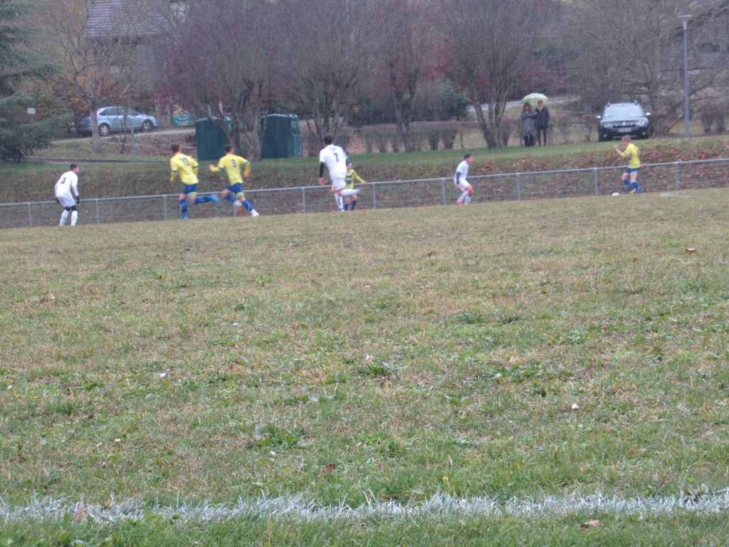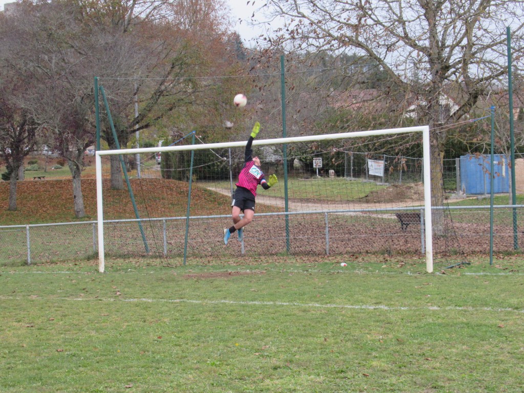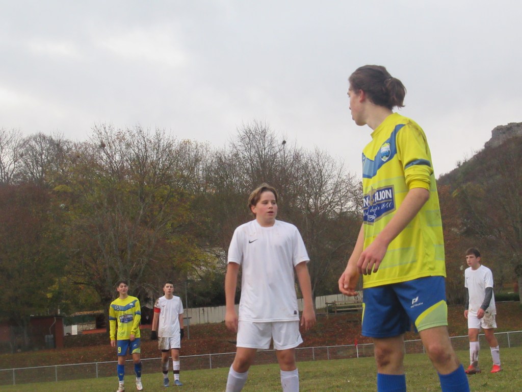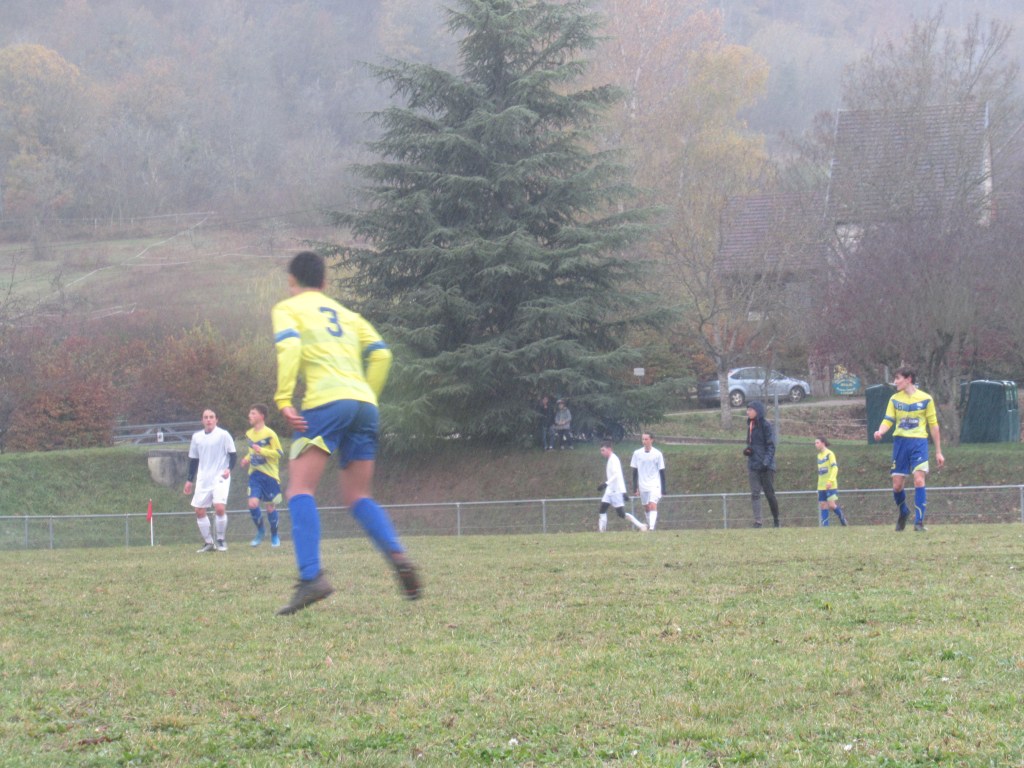 Un match sérieux pour les U18 qui ouvrent la marque par Thomas Gallay sur un bon centre de Thomas Gerbet, 1-0. On assiste quasiment à une attaque – défense tellement les jaunes sont dominateurs. Le 2-0 viendra par Pierre remarquablement lancé par Flavio Belloresque ! Puis le 3-0 par Romain qui gagne son duel avec le gardien. Score à la pause. L’objectif est de gagner les deux mi-temps et il sera atteint. Thomas Gerbet met le quatrième d’un splendide centre-tir puis Simon apportera la touche finale d’un plat du pied précis. Pierrot va bien tôt devoir s’inscrire à Pôle Emploi tellement il est peu sollicité !