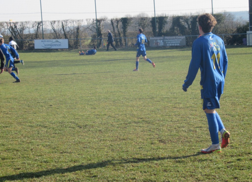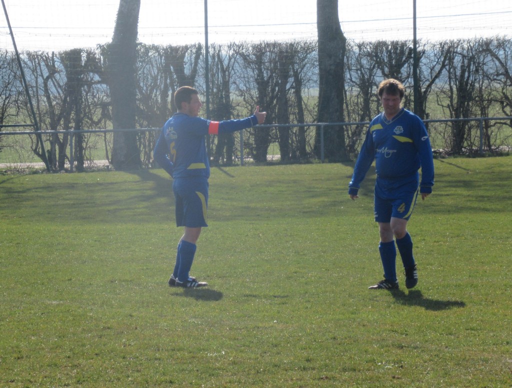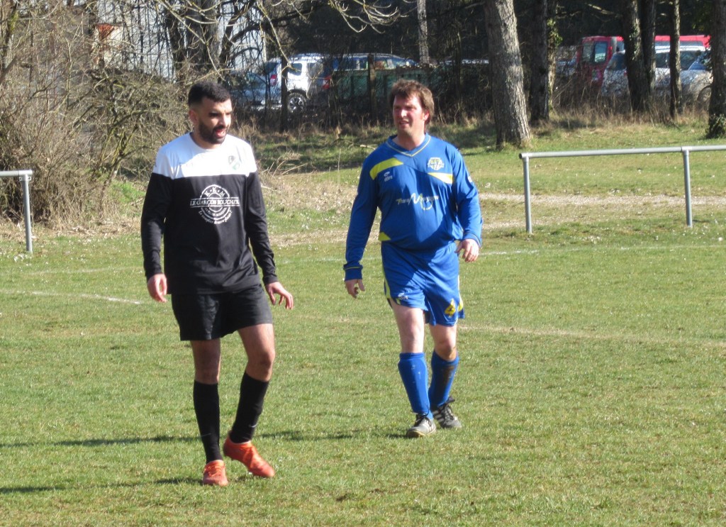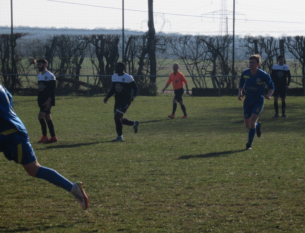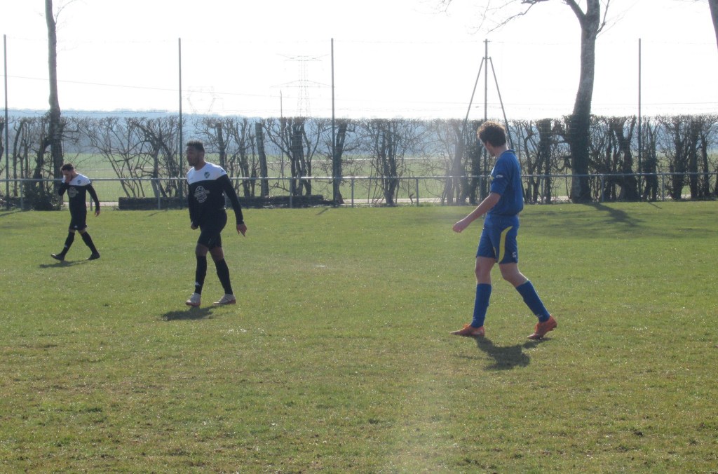 Le FC Sombernon-Gissey confirme ses belles prestations face aux grosses cylindrées. C’est un superbe succès que se sont offert les partenaires de cap’tain Cyril. La réserve de Longvic, troisième du groupe, impose son rythme en début de match avec une équipe très athlétique. Les bleus ont ensuite une très belle opportunité mais la frappe d’Olivier heurte la base du poteau. Les visiteurs ne sont pas en reste, mais un Sébastien Barthézien réussit deux très belles parades coup sur coup. Ca bataille dur au milieu. Les récupérateurs sont omni présents sous l’impulsion du duo Antonin-Alexis. 0 à 0 à la pause. La seconde période débute par un coup de théatre. Sur un coup franc plein axe, le gardien se troue sous la pression de Clément qui regarde le cuir échouer quelques centimètres derrière la ligne, 1 à 0. La pression adverse s’intensifie. Mais bis répétita quelques minutes plus tard. Le gardien relâche une balle et Clément en embuscade d’une tête plongeante rageuse au ras du poteau double la marque, 2-0. Les bleus défendent cette avantage becs et ongles à l’image de Sébastien impérial dans les airs. On est même tout près du 3-0 mais Elie n’assure pas sa frappe de près. Longvic presse, presse, presse encore mais rien n’y fait. Le FCSG engrange un succès très important dans l’opération maintien.