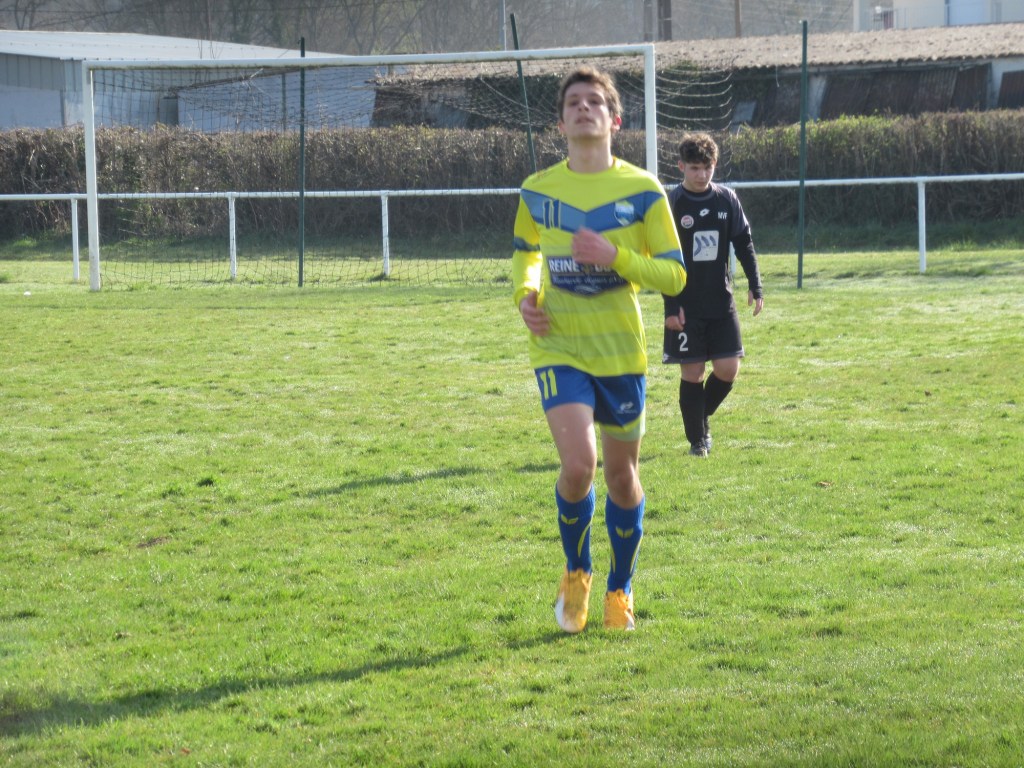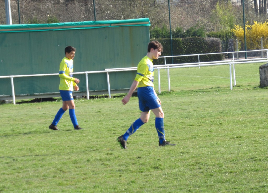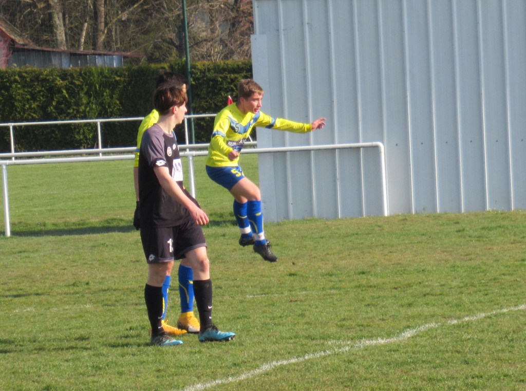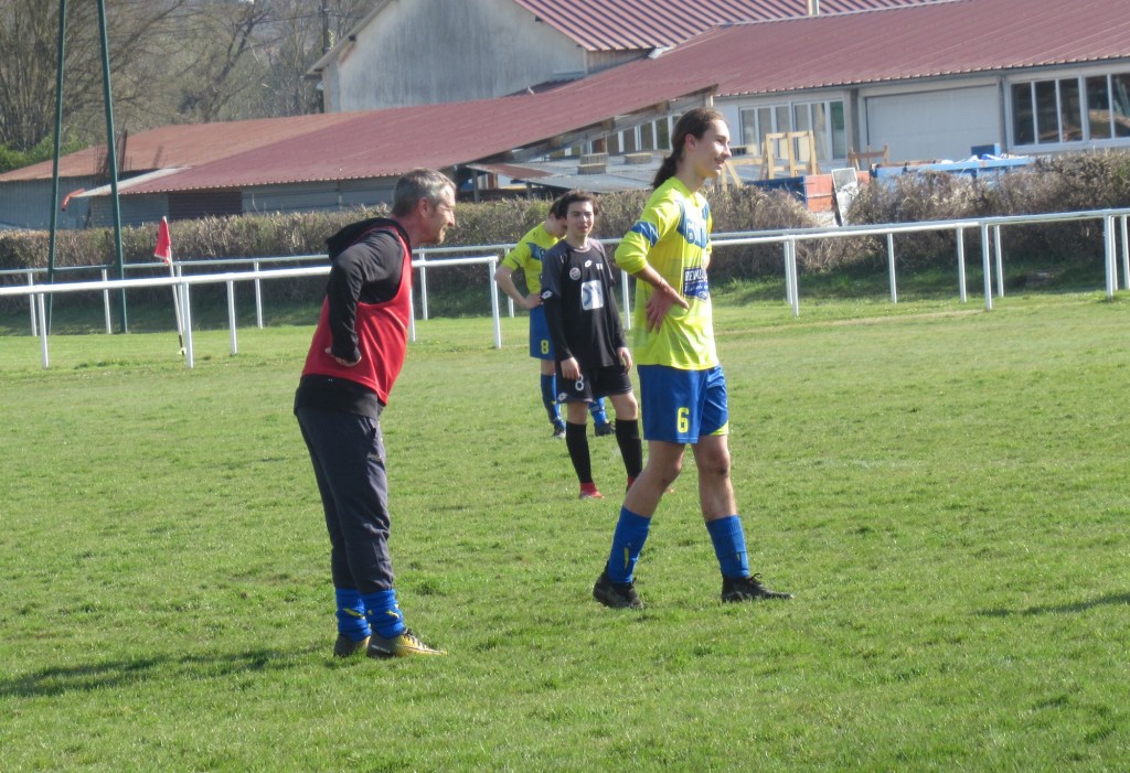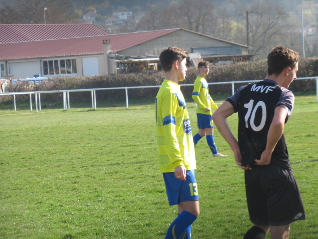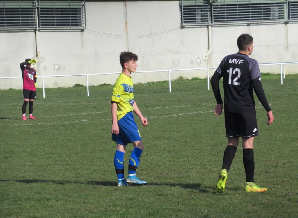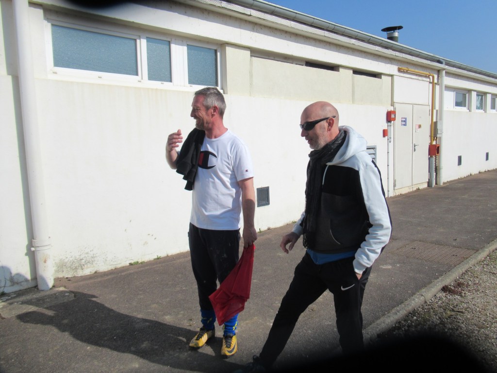 Les partenaires de Pierrot se sont fait un peu bouger mais comme d’habitude ça défend super bien et on ne concède pour ainsi dire pas d’occasions. L’Entente va même ouvrir le score par Mehdi d’un plat du pied à bout portant au deuxième poteau suite à un corner de Thomas prolongé par le grand Hugo, auteur d’une prestation XXL. Les locaux poussent mais son brouillons dans les trente derniers mètres. 1 à 0 à la pause. Après le repos, MVF accentue sa pression et on dispose de quelques balles de contre pas toujours bien négociées. A un quart d’heure de la fin l’avant centre adverse perfore l’axe défensif pour venir battre Pierrot de près, 1 à 1. A la 85ème, l’Entente a l’opportunité de terrasser le leader mais le pénalty de Pierre ne trouve pas le cadre. Dommage mais sur l’ensemble de la rencontre, le partage des points est logique.