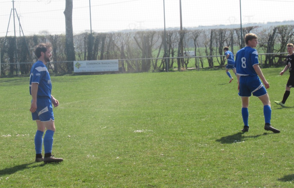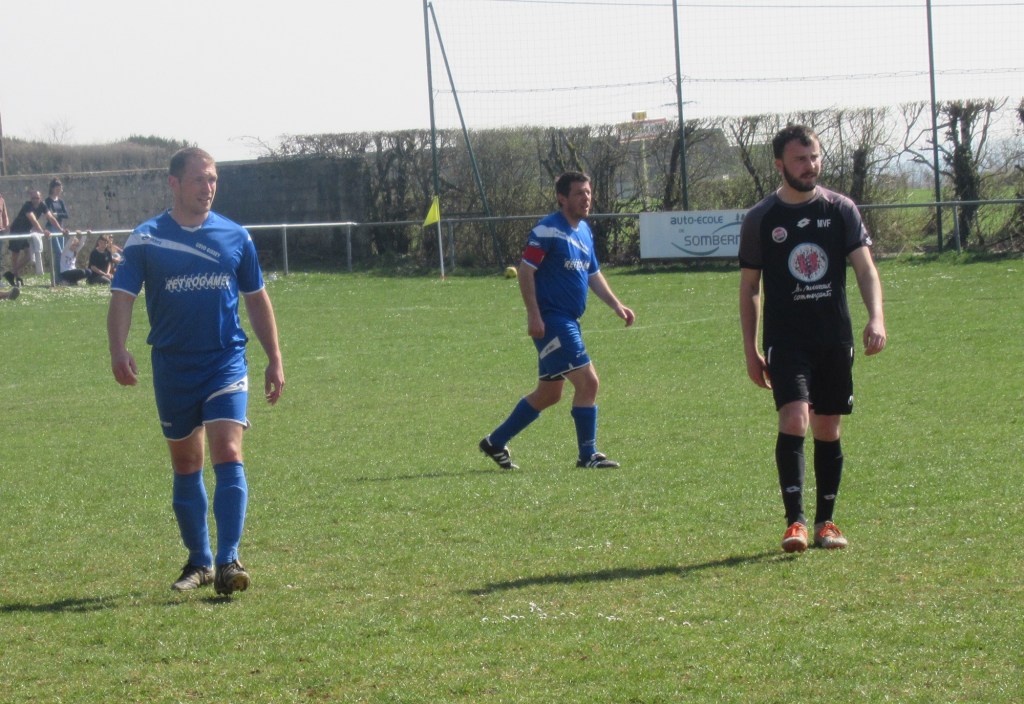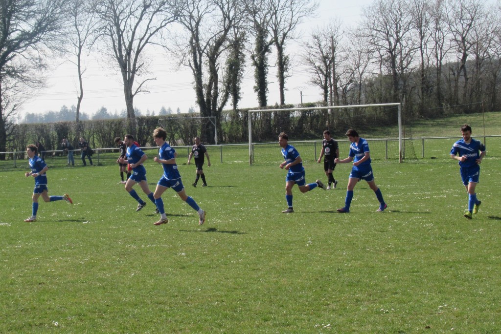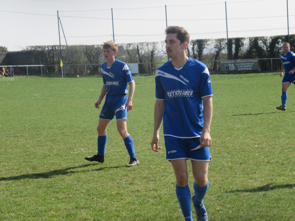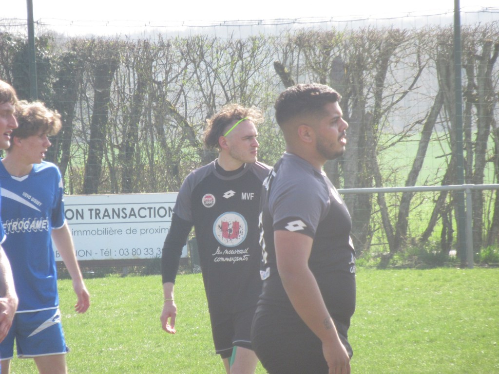 Le match démarre tambour battant et le FCSG mène 2 à 0 après dix minutes de jeu grâce à un doublé de Clément Dalançon. D’abord d’une belle demie volée croisée sur un service de Cyril puis en grattant un ballon dans les pieds des défenseurs adverses. Fort de cette avance, les bleus maîtrisent leur sujet. Antonin et Noac sont les maîtres à la récup. Les coups de boutoir de Maxime, Clément ou Basile font mal. Juste avant le repos Clément Bouley donne trois buts d’avance aux siens d’une tête Van Persienne sur un nouveau service de Cyril. Il reste maintenant à gérer. Dès la reprise, il n’y a plus de jeu. MVF pousse sans trop y croire. Ils réduisent cependant le score à un quart d’heure de la fin, 1-3. Il n’y a pourtant rien d’alarmant mais la fébrilité gagne les rangs. Maxime concède un pénalty stupide et MVF revient à 3-2. La fin de match est hésitante et c’est un gros OUF de soulagement qui arrive quand l’arbitre siffle les trois coups !