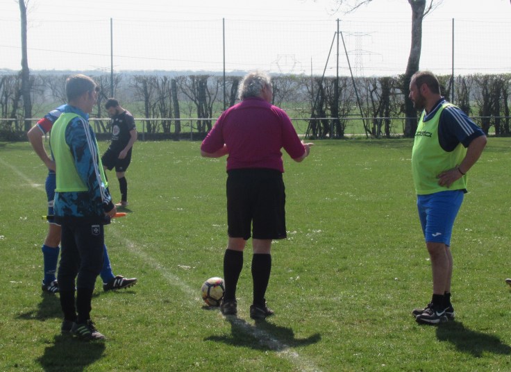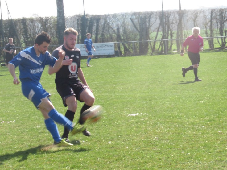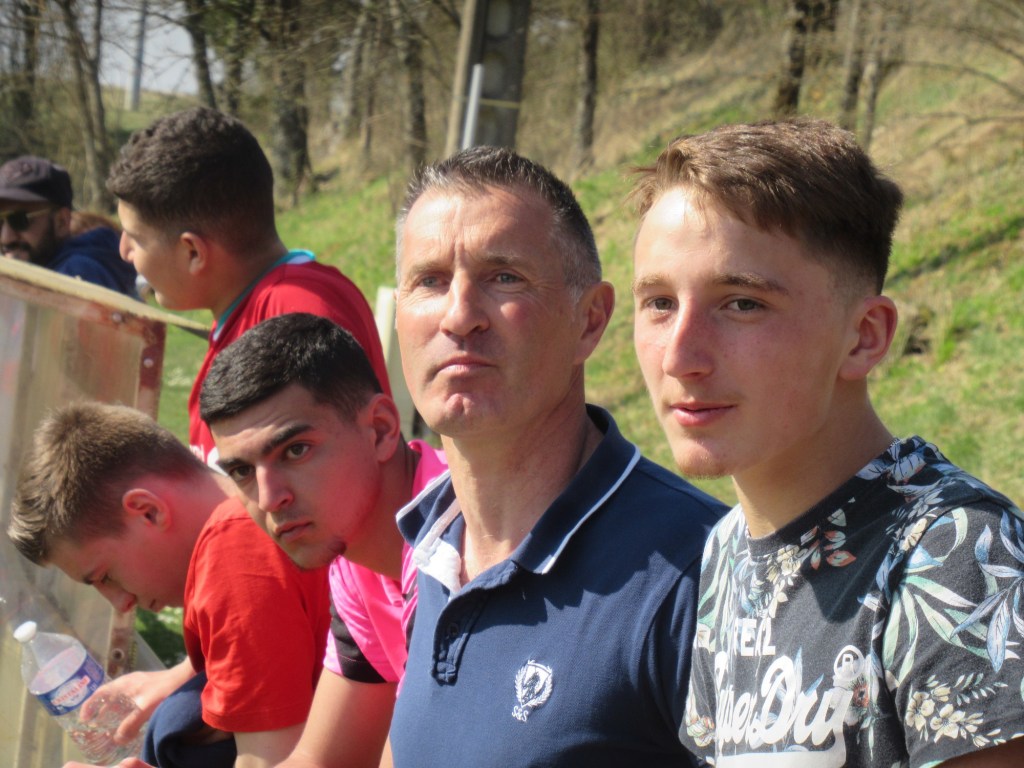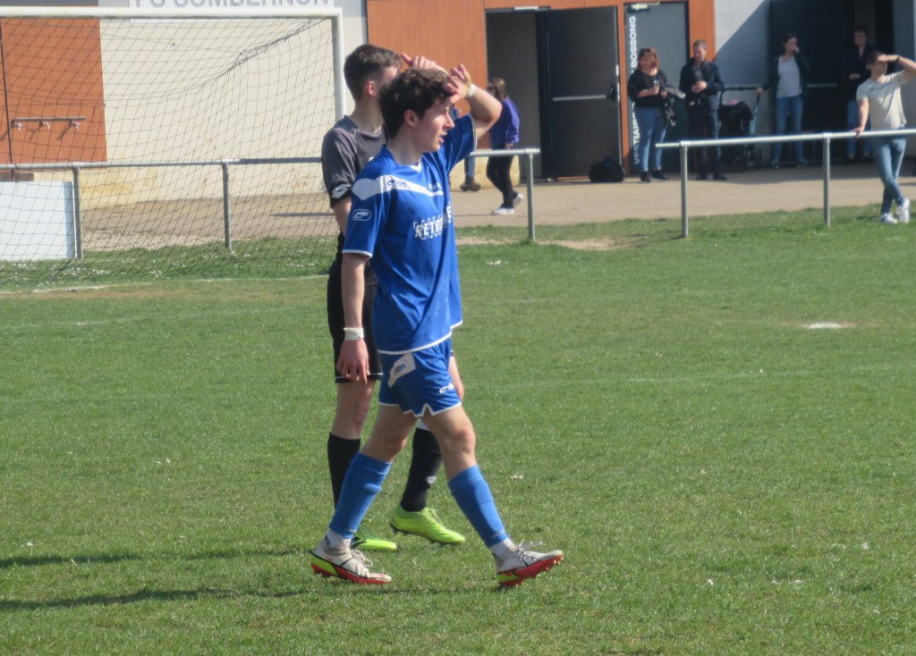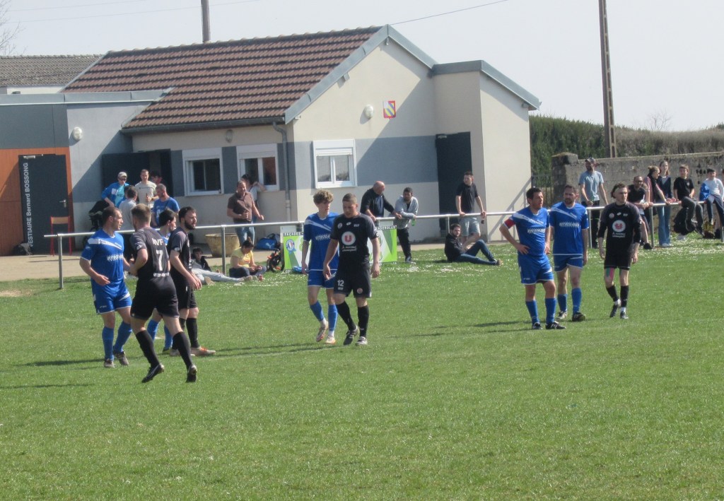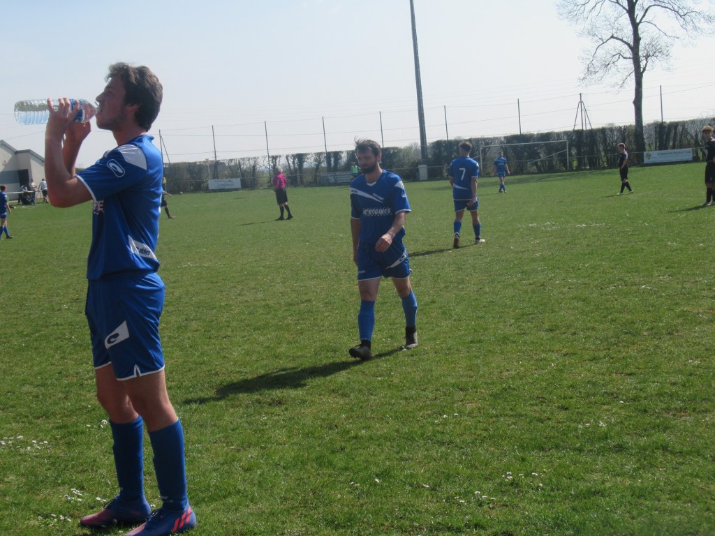 Le match démarre tambour battant et le FCSG mène 2 à 0 après dix minutes de jeu grâce à un doublé de Clément Dalançon. D’abord d’une belle demie volée croisée sur un service de Cyril puis en grattant un ballon dans les pieds des défenseurs adverses. Fort de cette avance, les bleus maîtrisent leur sujet. Antonin et Noac sont les maîtres à la récup. Les coups de boutoir de Maxime, Clément ou Basile font mal. Juste avant le repos Clément Bouley donne trois buts d’avance aux siens d’une tête Van Persienne sur un nouveau service de Cyril. Il reste maintenant à gérer. Dès la reprise, il n’y a plus de jeu. MVF pousse sans trop y croire. Ils réduisent cependant le score à un quart d’heure de la fin, 1-3. Il n’y a pourtant rien d’alarmant mais la fébrilité gagne les rangs. Maxime concède un pénalty stupide et MVF revient à 3-2. La fin de match est hésitante et c’est un gros OUF de soulagement qui arrive quand l’arbitre siffle les trois coups !