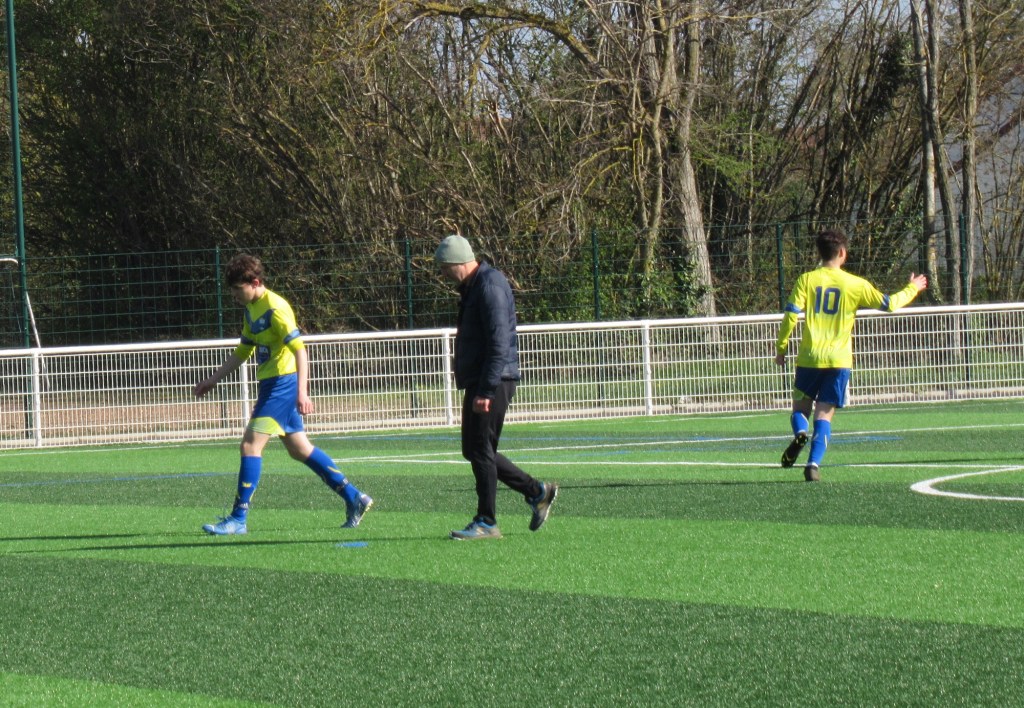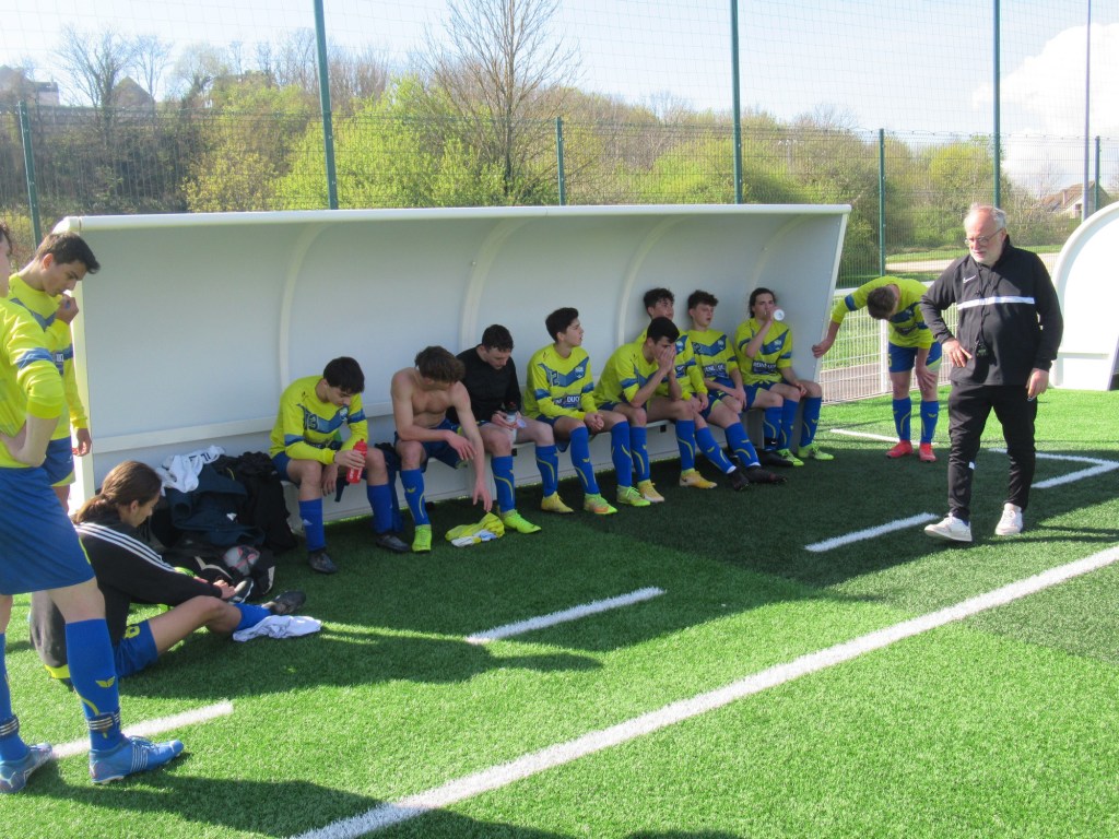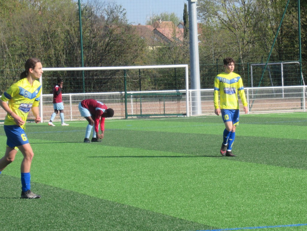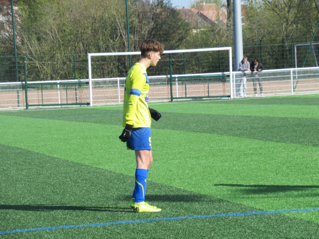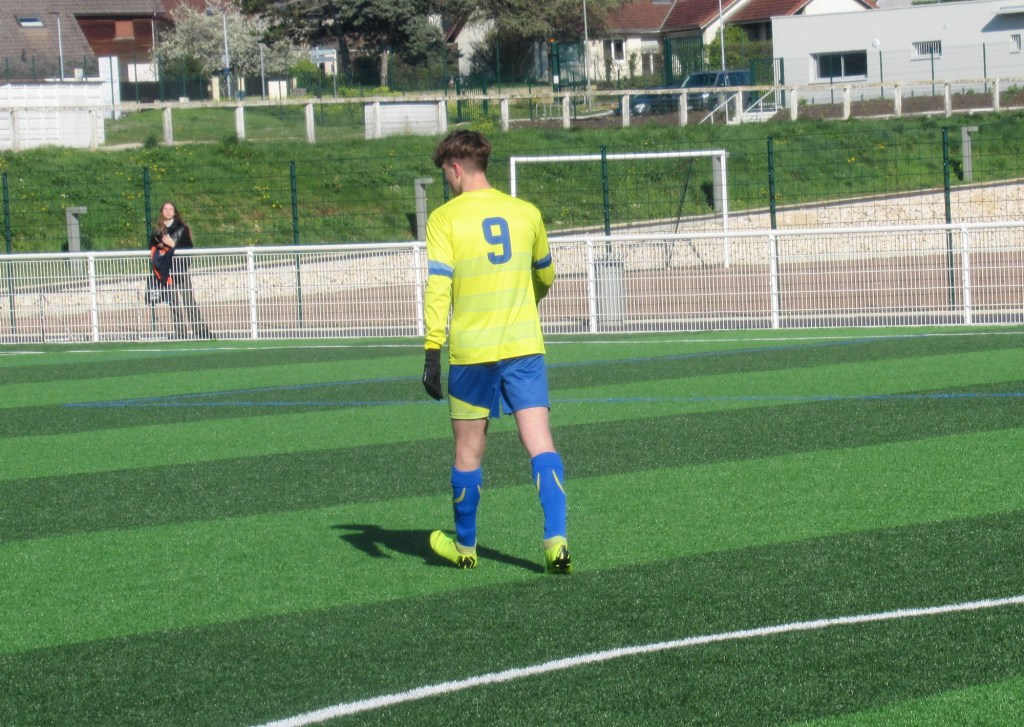 L’entente a montré un visage à deux faces en ce dimanche matin ensoleillé. Un début timide, mais une ouverture du score rapide cependant. Ouverture en diagonale de Thomas Gerbet pour Simon qui bute sur le gardien mais Flavio, à l’affût en vrai 9, marque de près, 1 à 0. Le match est très équilibré. La bataille fait rage au milieu de terrain. Grand Hugo et Pierre sont présents à la récupération. L’Entente a quelques belles balles de contre qu’elle négocie mal. Les locaux se montrent dangereux sur coup franc. Une belle claquette de Pierrot préserve le score. Et puis tout bascule ! 42ème, on perd un ballon d’attaque. Sur le contre, un superbe mouvement à une touche a montrer dans les écoles transperce tout le rideau jaune et l’ailier droit conclut d’une belle frappe croisée, 1 à 1. Mais le pire est à venir. 44ème, Gaby concède un pénalty que les talantais ne se privent pas de transformer et passent devant au plus mauvais moment, 1-2. Etant bien en place en première période, on espère une équipe piqué au vif qui se rebelle. Il n’en est rien ! C’est l’apathie générale. Talant impose son jeu, est dominateur, mais le bloc défensif, à l’image d’un Tristan énorme de concentration, tient le coup. Et ça bascule sur un coup de génie de Thomas Gallay qui égalise d’un improbable extérieur du gauche excentré des 25m ! 2 à 2. Et le hold up n’a tenu qu’à un fil. Thomas Gallay ne pouvant assurer le bon centre qu’il fallait pour Pierre qui attendait absolument seul face au but. Un très bon point qui permet à l’Entente de rester dans la course.