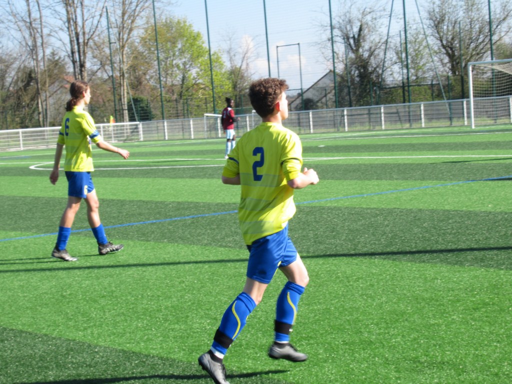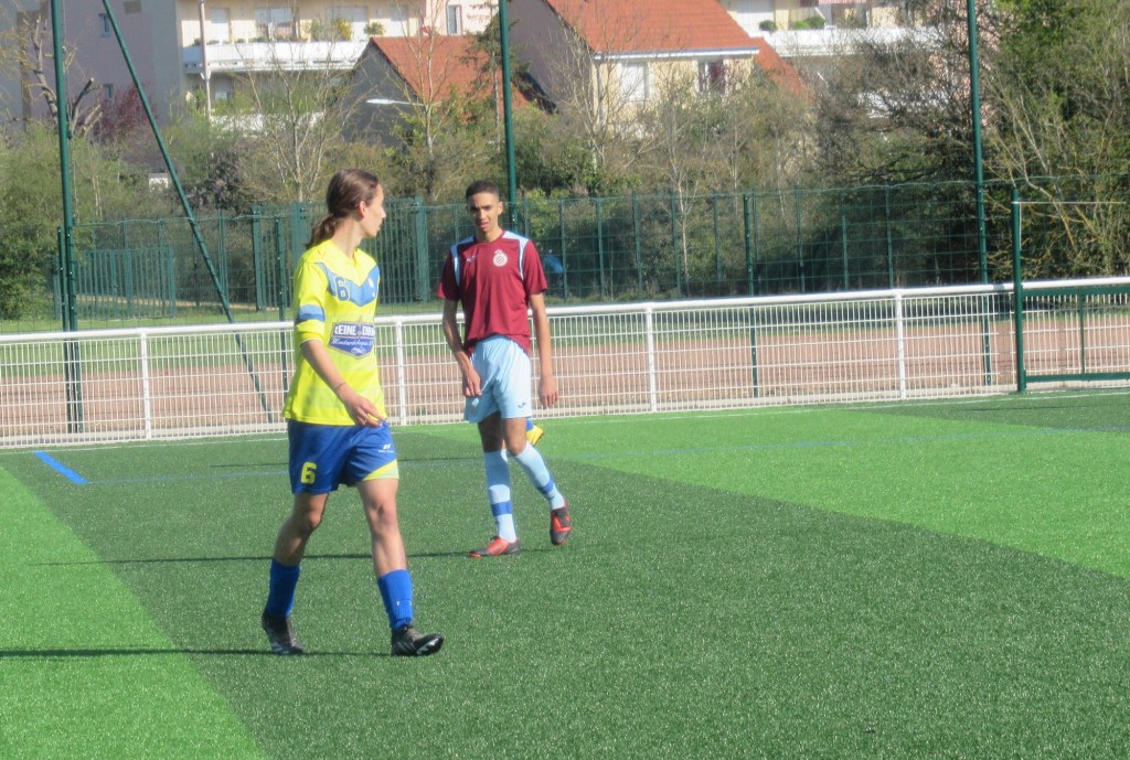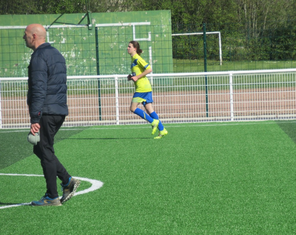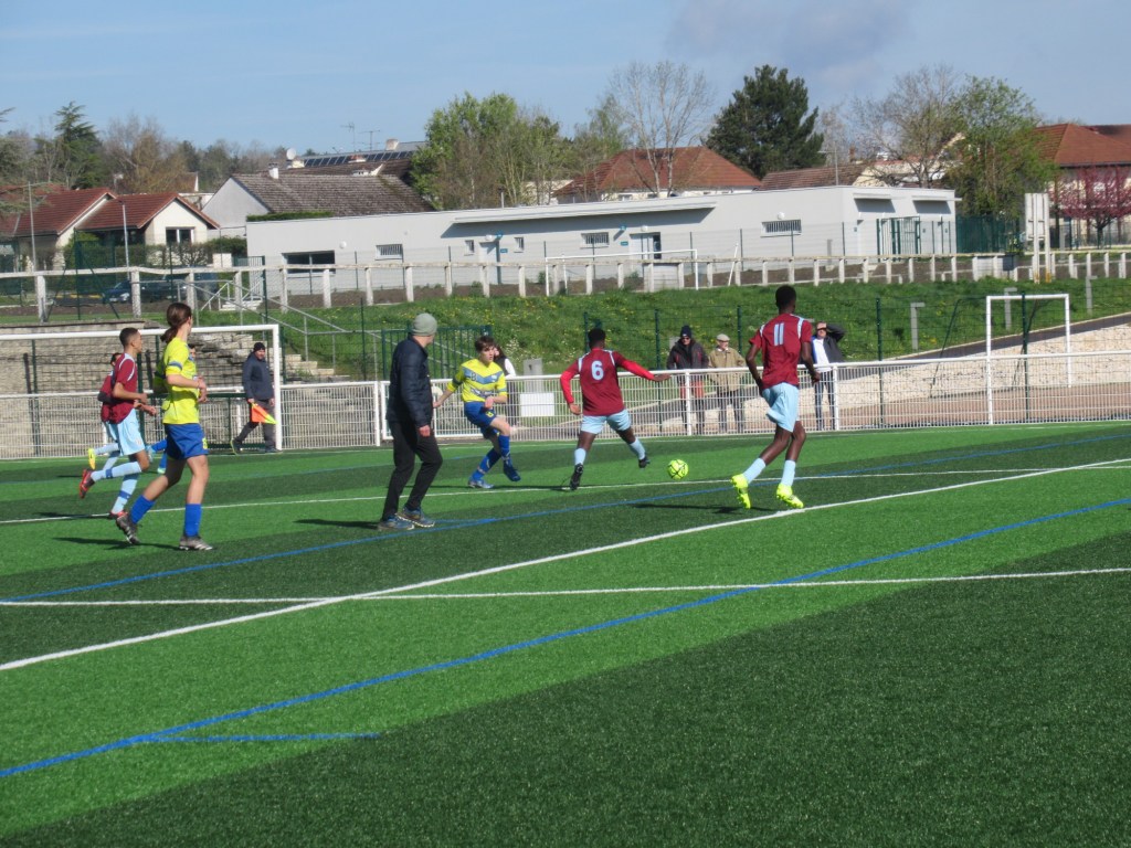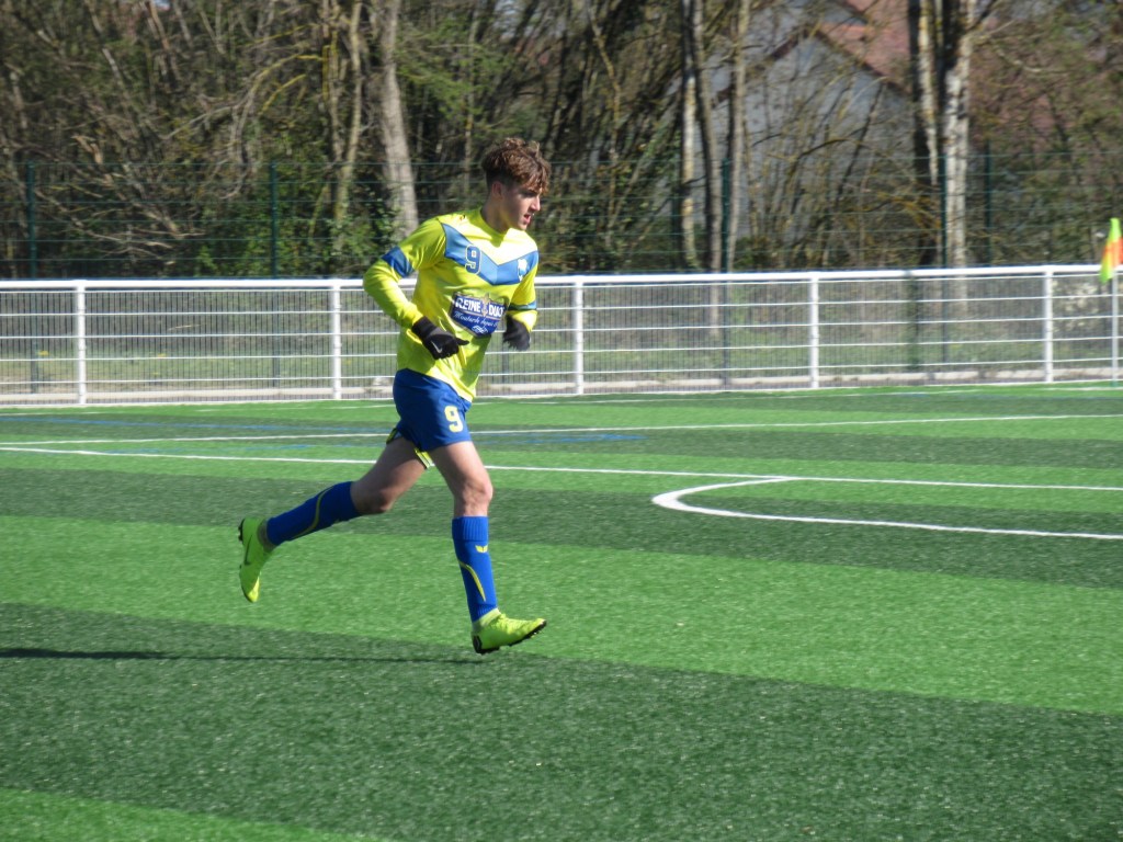 L’entente a montré un visage à deux faces en ce dimanche matin ensoleillé. Un début timide, mais une ouverture du score rapide cependant. Ouverture en diagonale de Thomas Gerbet pour Simon qui bute sur le gardien mais Flavio, à l’affût en vrai 9, marque de près, 1 à 0. Le match est très équilibré. La bataille fait rage au milieu de terrain. Grand Hugo et Pierre sont présents à la récupération. L’Entente a quelques belles balles de contre qu’elle négocie mal. Les locaux se montrent dangereux sur coup franc. Une belle claquette de Pierrot préserve le score. Et puis tout bascule ! 42ème, on perd un ballon d’attaque. Sur le contre, un superbe mouvement à une touche a montrer dans les écoles transperce tout le rideau jaune et l’ailier droit conclut d’une belle frappe croisée, 1 à 1. Mais le pire est à venir. 44ème, Gaby concède un pénalty que les talantais ne se privent pas de transformer et passent devant au plus mauvais moment, 1-2. Etant bien en place en première période, on espère une équipe piqué au vif qui se rebelle. Il n’en est rien ! C’est l’apathie générale. Talant impose son jeu, est dominateur, mais le bloc défensif, à l’image d’un Tristan énorme de concentration, tient le coup. Et ça bascule sur un coup de génie de Thomas Gallay qui égalise d’un improbable extérieur du gauche excentré des 25m ! 2 à 2. Et le hold up n’a tenu qu’à un fil. Thomas Gallay ne pouvant assurer le bon centre qu’il fallait pour Pierre qui attendait absolument seul face au but. Un très bon point qui permet à l’Entente de rester dans la course.