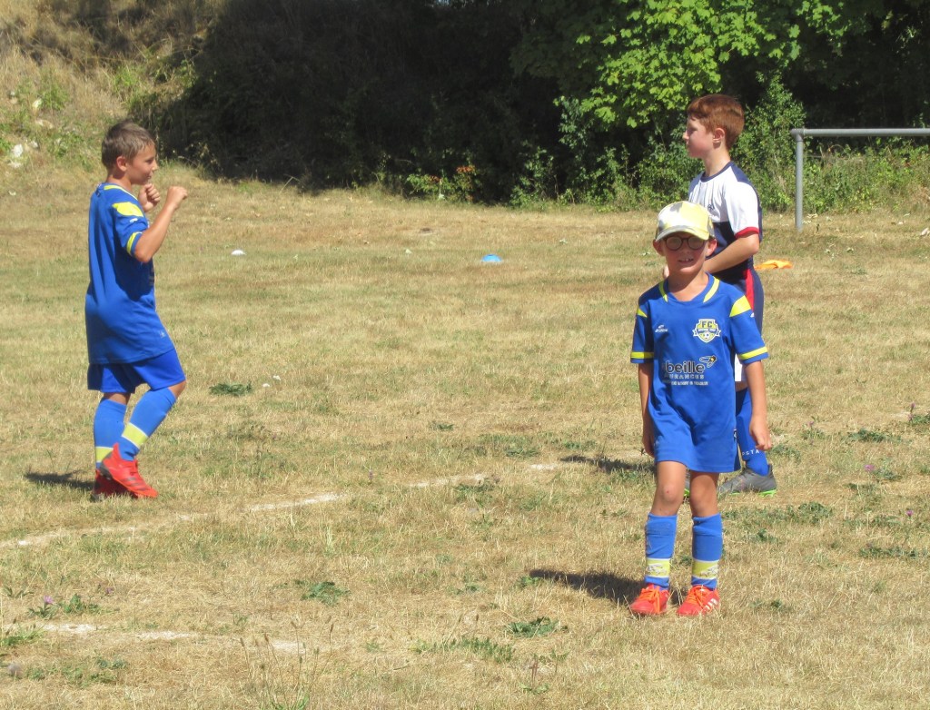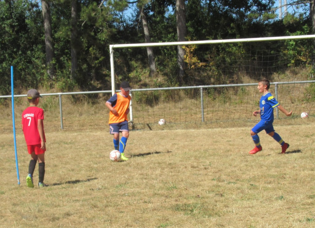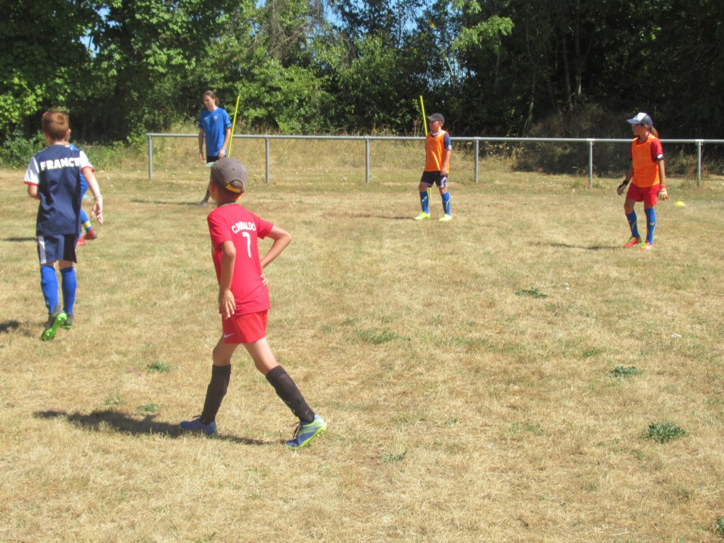 Les fortes chaleurs de ce samedi ont éclairci les rangs notamment chez les petits, ce qui est bien compréhensible. Néanmoins, une petite bande d’inconditionnels a bravé les interdits pour se faire plaisir autour de notre chère petite balle ronde. Après les exercices de mise en route, place au « big match » où l’on a mélangé petits et grands avec des règles bien précises pour que tout le monde y trouve son compte.