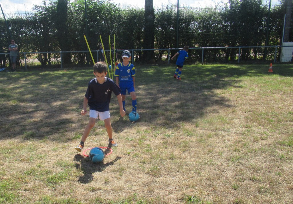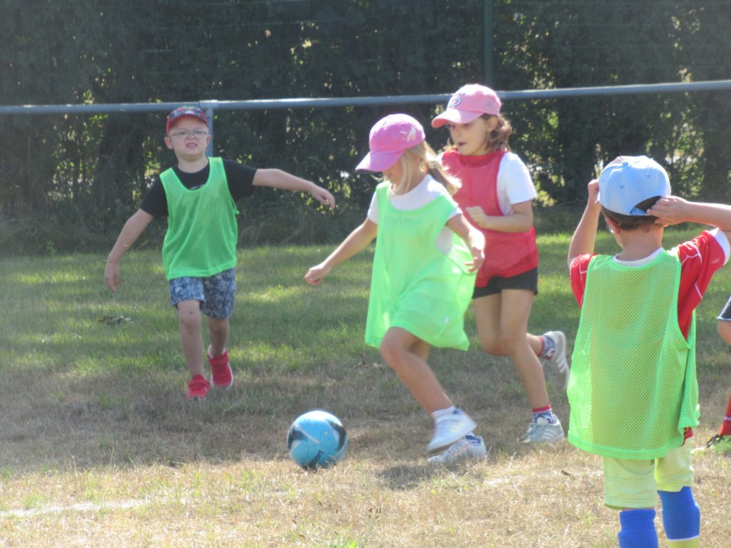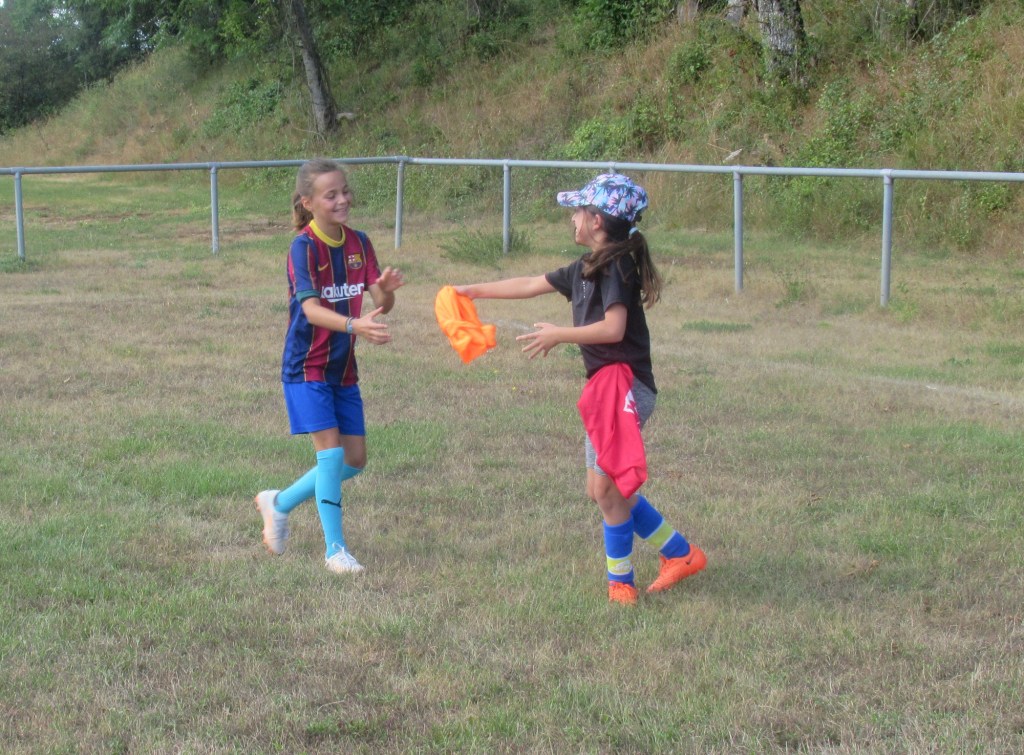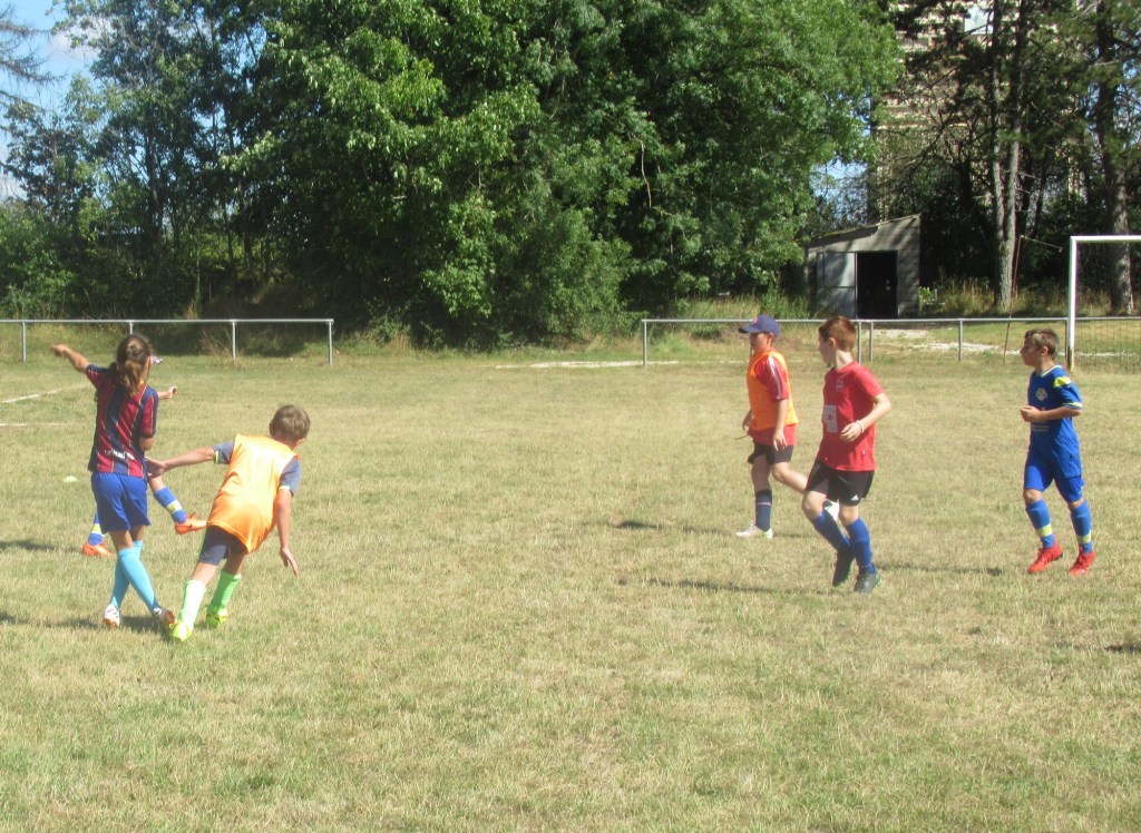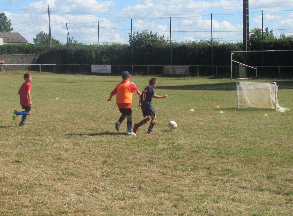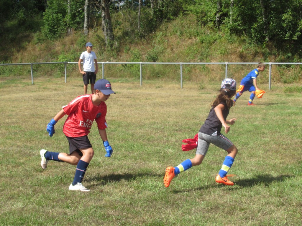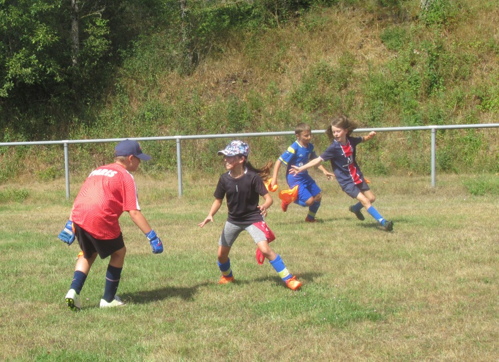 Qui de plus sympa que de jouer au foot entre potes avant cette satanée rentrée qui arrive à grands pas… Des jeunes en vacances dans leur famille, des nouveaux arrivants dans la région, des filles qui pensent que le foot ce n’est pas qu’un sport de garçon… peu importe, tous les prétextes sont bons pour taquiner notre chère petite balle ronde ! Quelques exercices techniques pour se mettre en condition et arrive l’heure du « big match ». Et là,chacun veut emporter la mise. Ce qui donne lieu à des matchs très vivants pour le plus grand plaisir des parents qui les regardent.