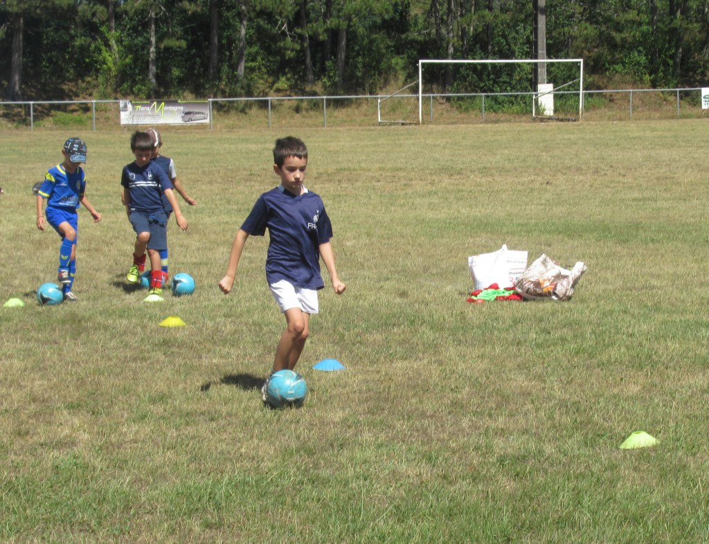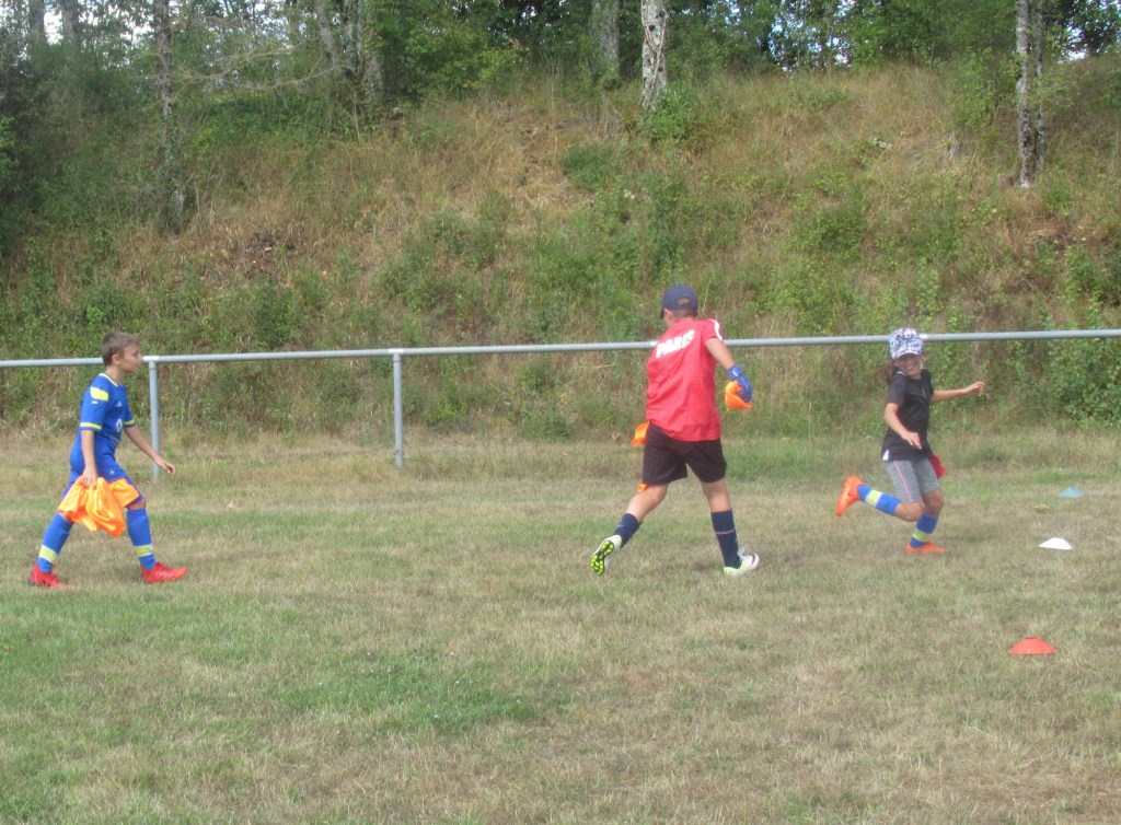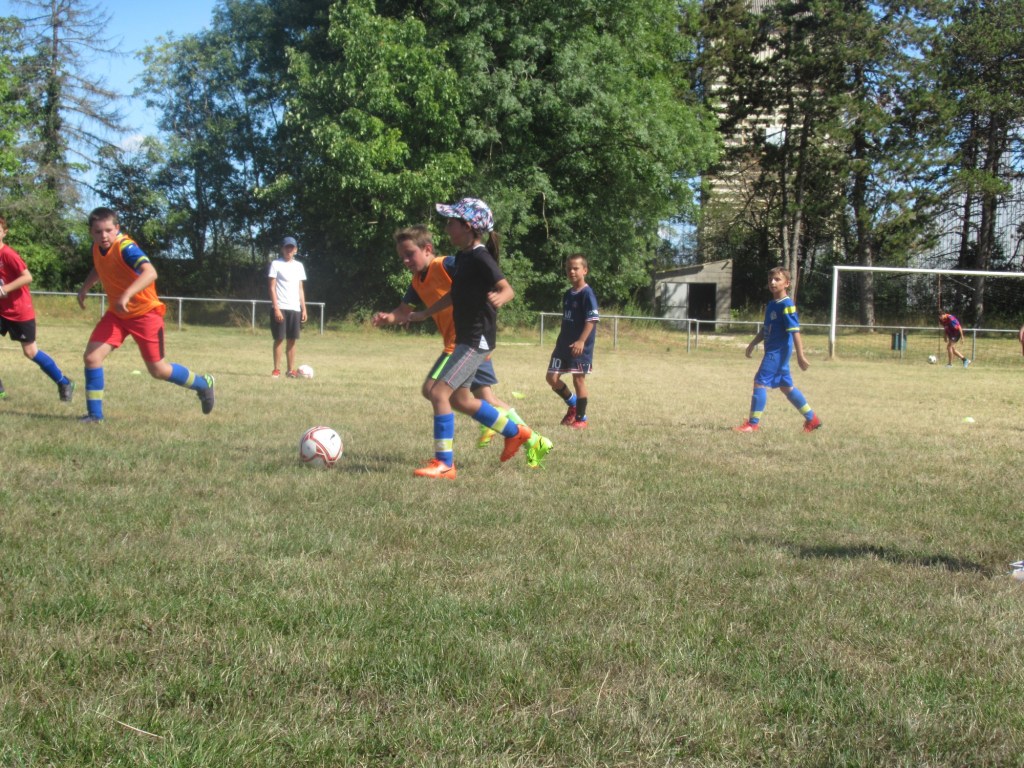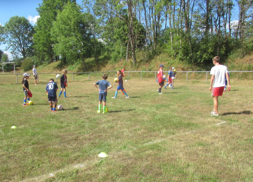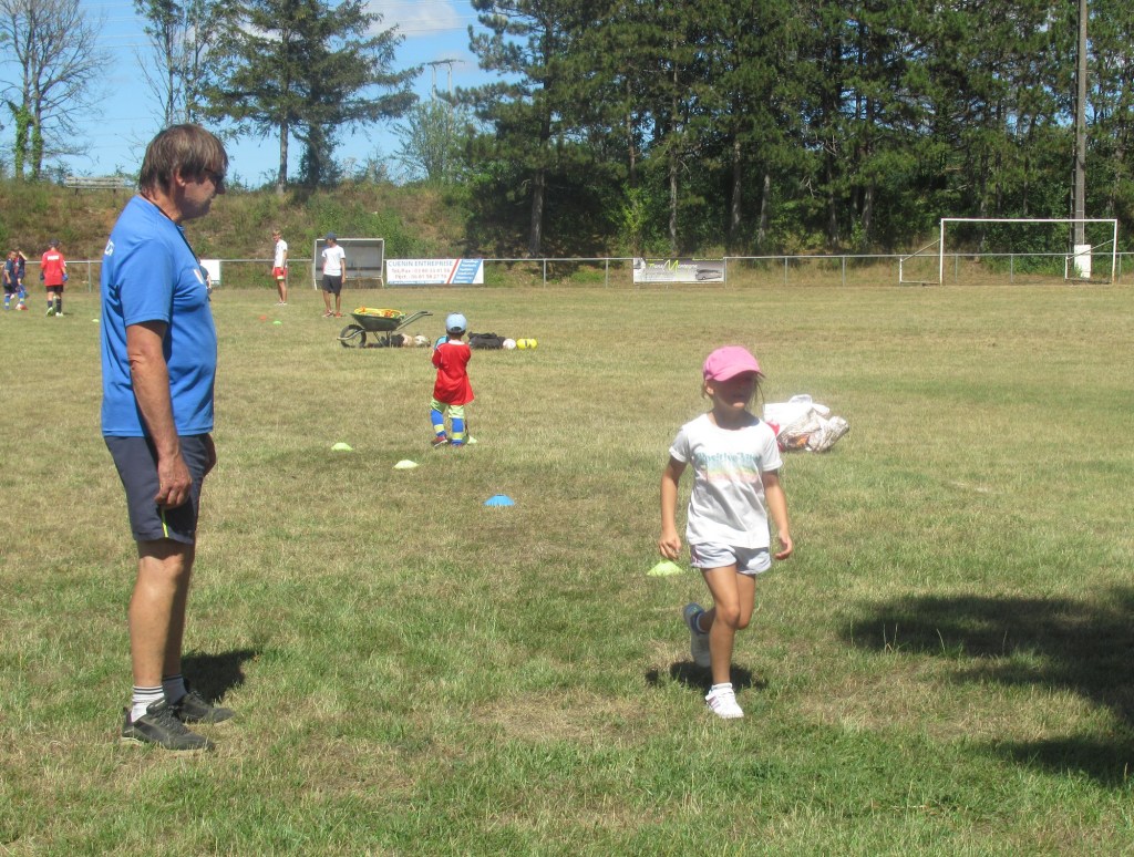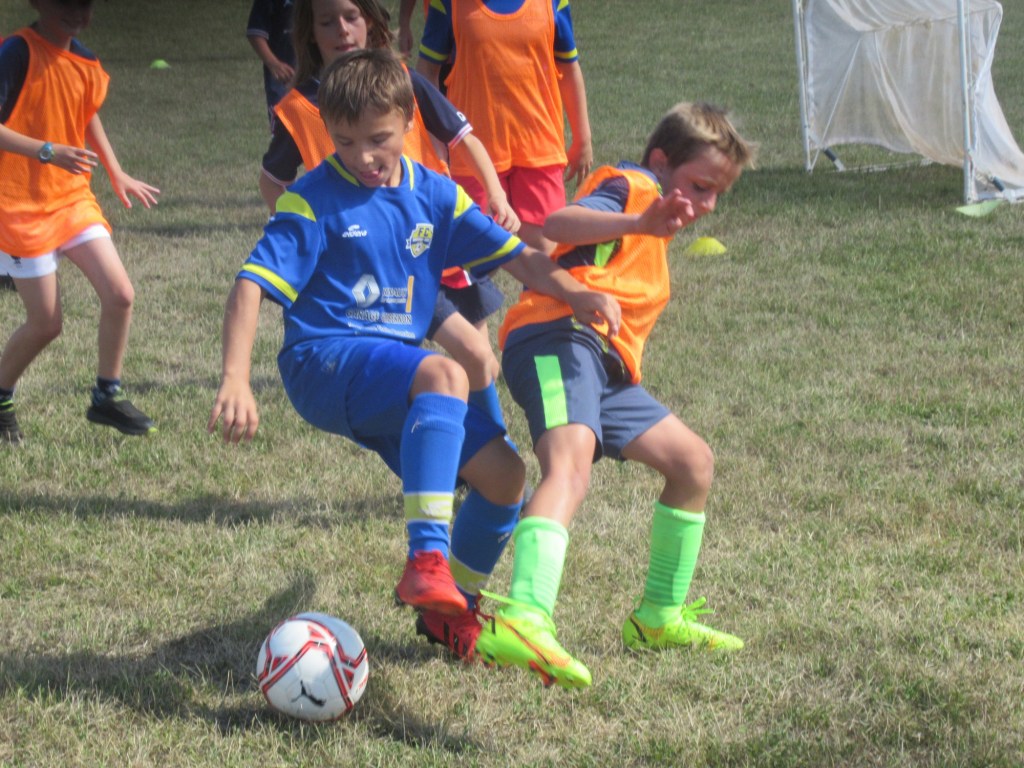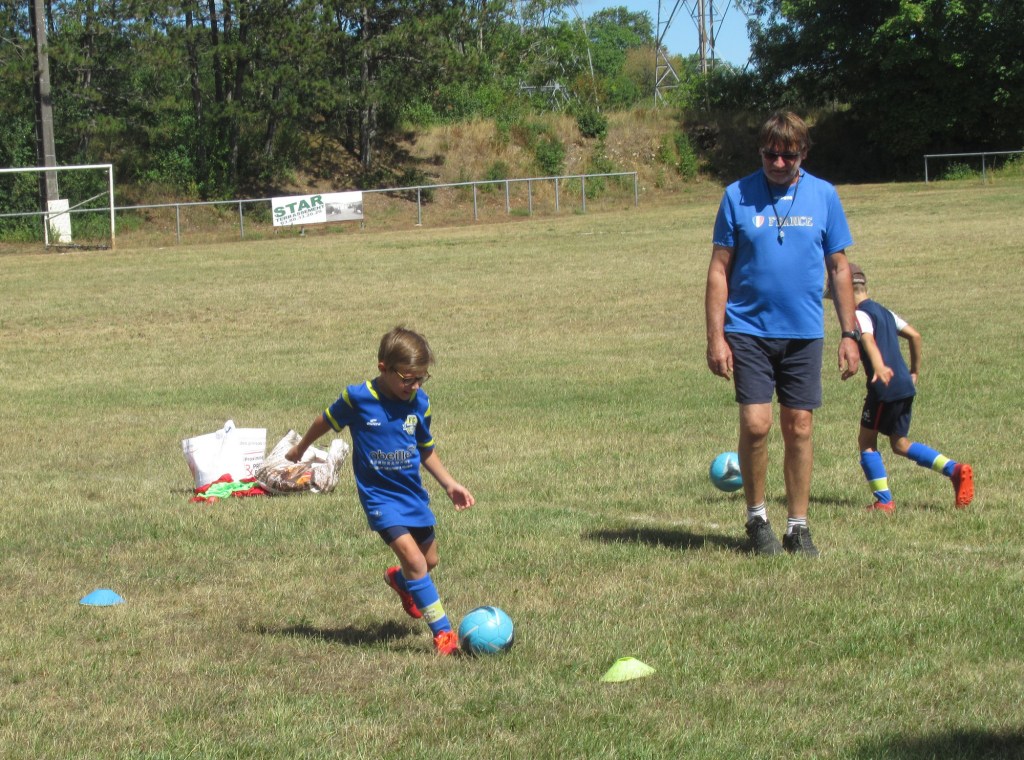 Qui de plus sympa que de jouer au foot entre potes avant cette satanée rentrée qui arrive à grands pas… Des jeunes en vacances dans leur famille, des nouveaux arrivants dans la région, des filles qui pensent que le foot ce n’est pas qu’un sport de garçon… peu importe, tous les prétextes sont bons pour taquiner notre chère petite balle ronde ! Quelques exercices techniques pour se mettre en condition et arrive l’heure du « big match ». Et là,chacun veut emporter la mise. Ce qui donne lieu à des matchs très vivants pour le plus grand plaisir des parents qui les regardent.