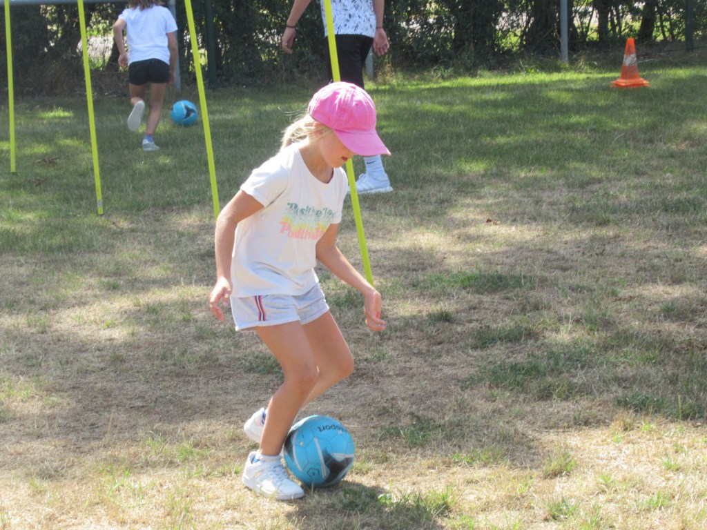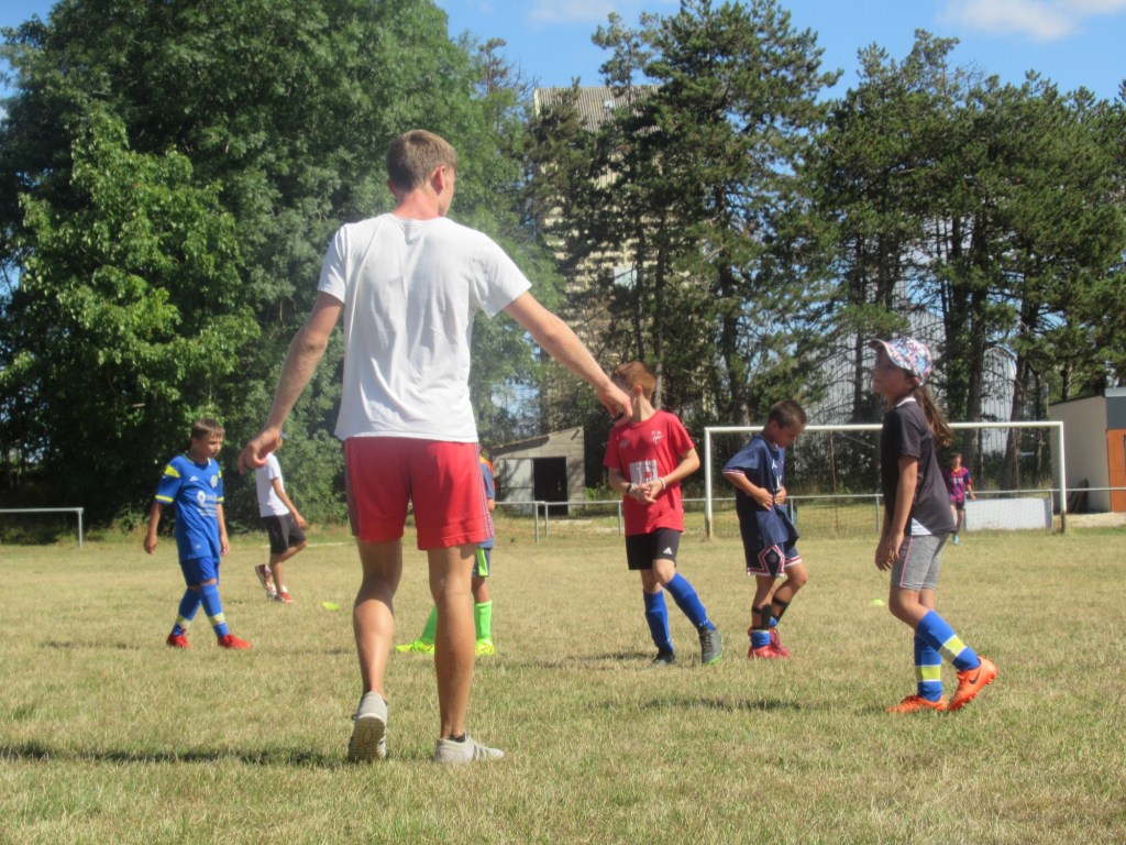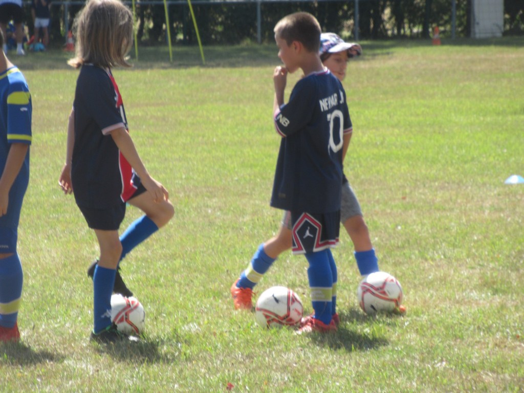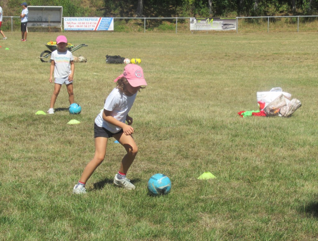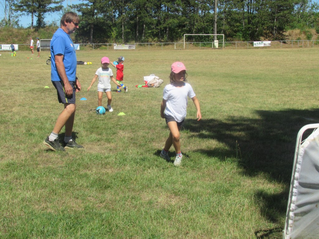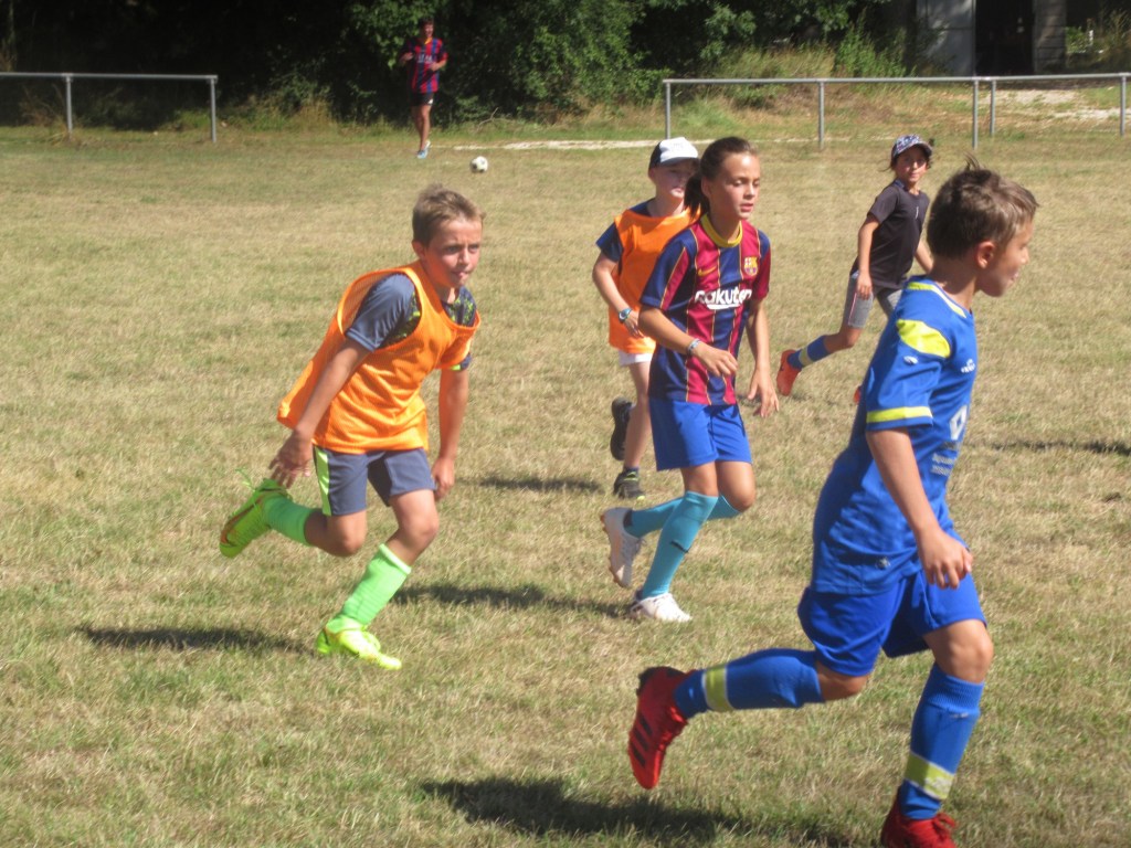 Qui de plus sympa que de jouer au foot entre potes avant cette satanée rentrée qui arrive à grands pas… Des jeunes en vacances dans leur famille, des nouveaux arrivants dans la région, des filles qui pensent que le foot ce n’est pas qu’un sport de garçon… peu importe, tous les prétextes sont bons pour taquiner notre chère petite balle ronde ! Quelques exercices techniques pour se mettre en condition et arrive l’heure du « big match ». Et là,chacun veut emporter la mise. Ce qui donne lieu à des matchs très vivants pour le plus grand plaisir des parents qui les regardent.