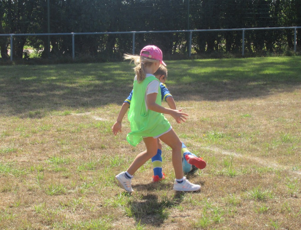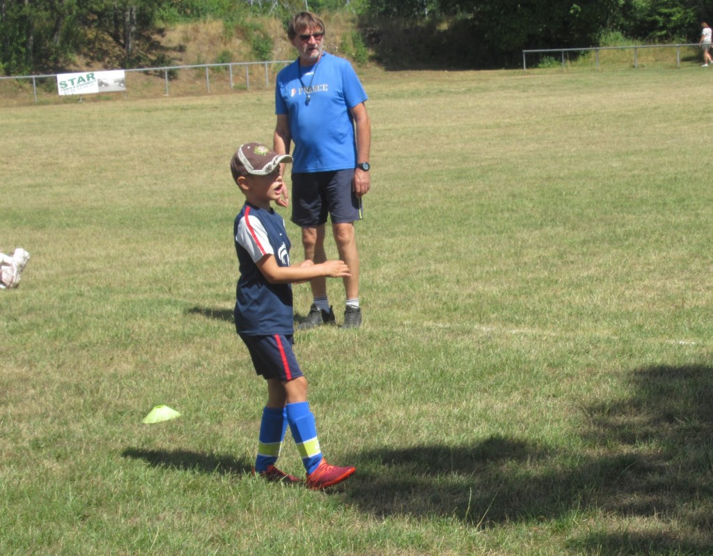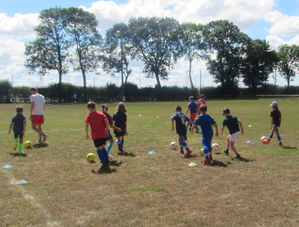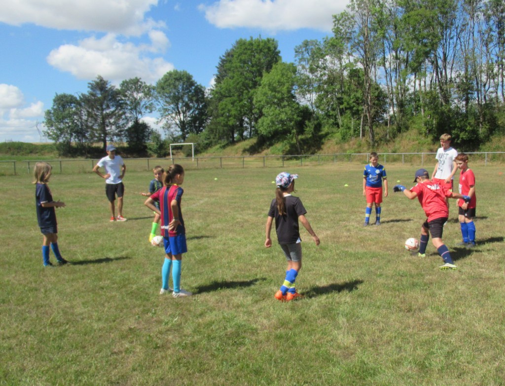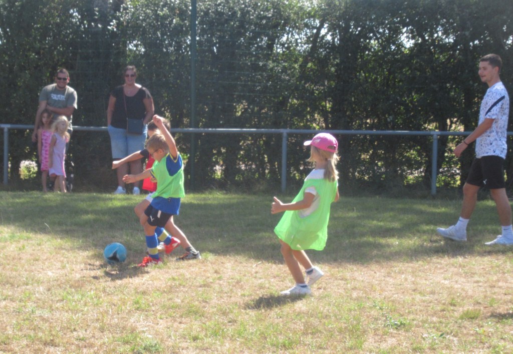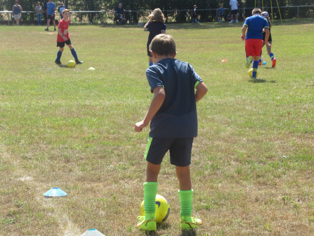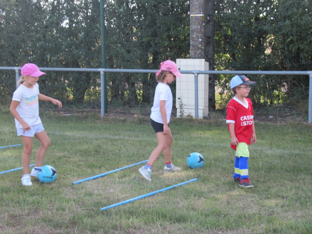 Qui de plus sympa que de jouer au foot entre potes avant cette satanée rentrée qui arrive à grands pas… Des jeunes en vacances dans leur famille, des nouveaux arrivants dans la région, des filles qui pensent que le foot ce n’est pas qu’un sport de garçon… peu importe, tous les prétextes sont bons pour taquiner notre chère petite balle ronde ! Quelques exercices techniques pour se mettre en condition et arrive l’heure du « big match ». Et là,chacun veut emporter la mise. Ce qui donne lieu à des matchs très vivants pour le plus grand plaisir des parents qui les regardent.