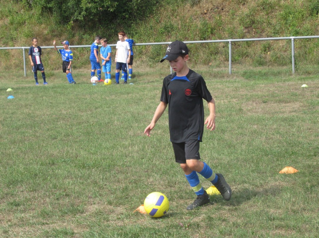 Fini les vacances, le sifflet du coach a retenti pour rassembler ses troupes pour ce premier entraînement de la saison. Une quinzaine de jeunes ont répondu à l’appel. De quoi satisfaire Rémi, le coach de la catégorie. Pour ces jeunes (nés en 2012 et 2013), les entraînements se déroulent le mercredi de 16h à 17h30 au stade de l’Epine – Marcel David. L’effectif devrait s’étoffer encore un peu pour permettre l’inscription de deux équipes.