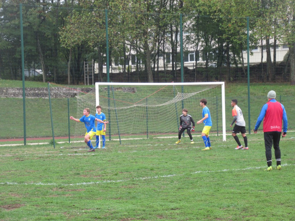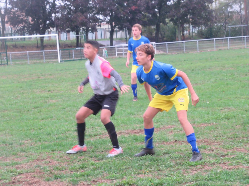 Un match qui laisse des regrets pour nos U18. Après une entame catastrophique et avoir concédé l’ouverture du score dès la 2ème, on s’attendait au pire. Et il aurait pu arriver tant nos jeunes manquaient d’agressivité dans les duels…et de présence tout simplement. Les locaux ratent une « inmanquable », et dans la minute qui suit « grand Hugo » égalise à la suite d’une cafouillage sur un corner de Simon. Mais la concentration n’est pas au goût du jour, et sur l’engagement Dijon Grésilles reprend l’avantage. La seconde période est tout autre et on voit alors les partenaires de Gaby mettre la main sur le jeu. Les occasions se font plus précises et à nouveau sur corner Mehdi égalise à dix minutes de la fin. L’Entente a même plusieurs balles de match mais le score en restera là. Un moindre mal !