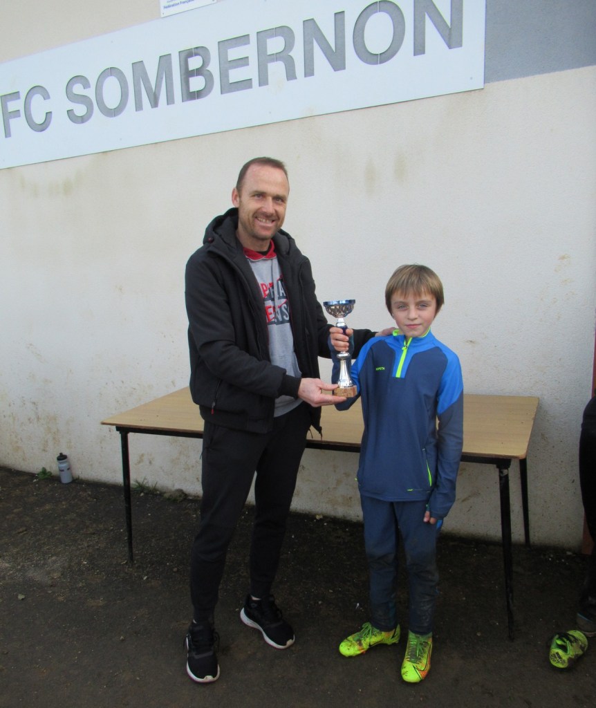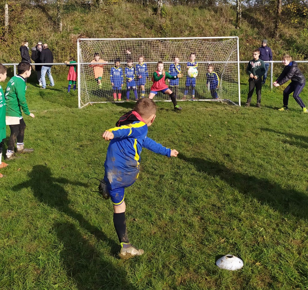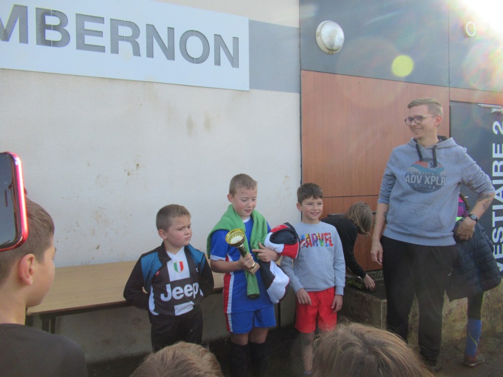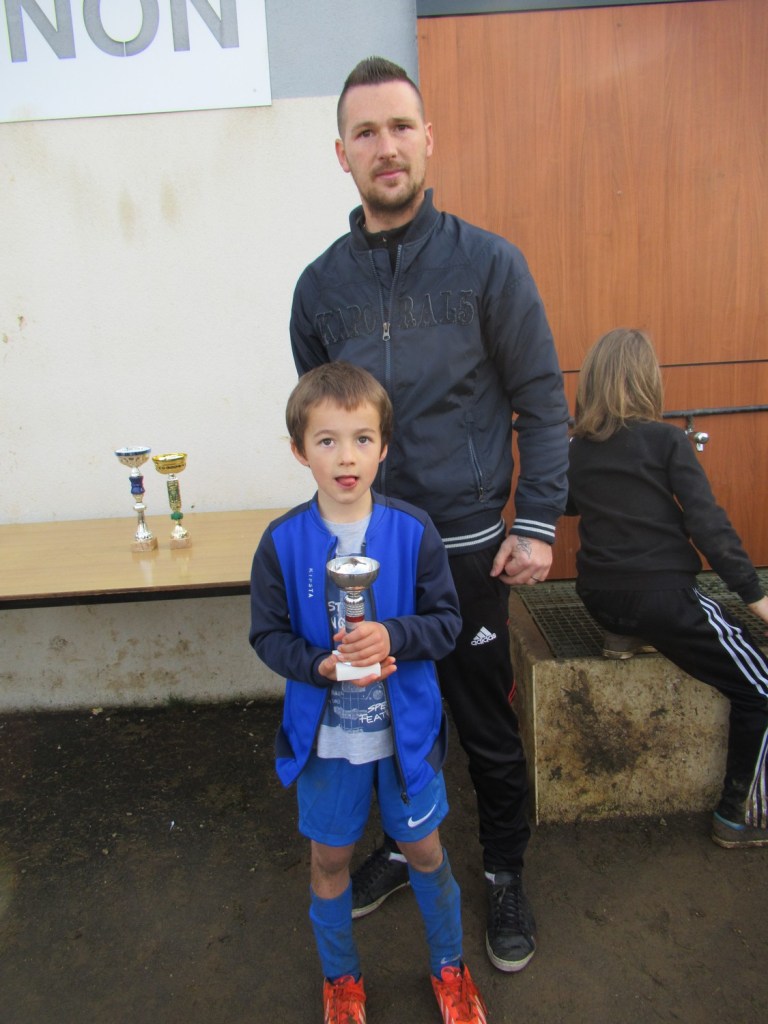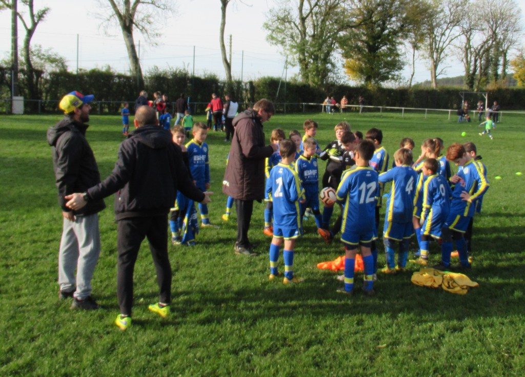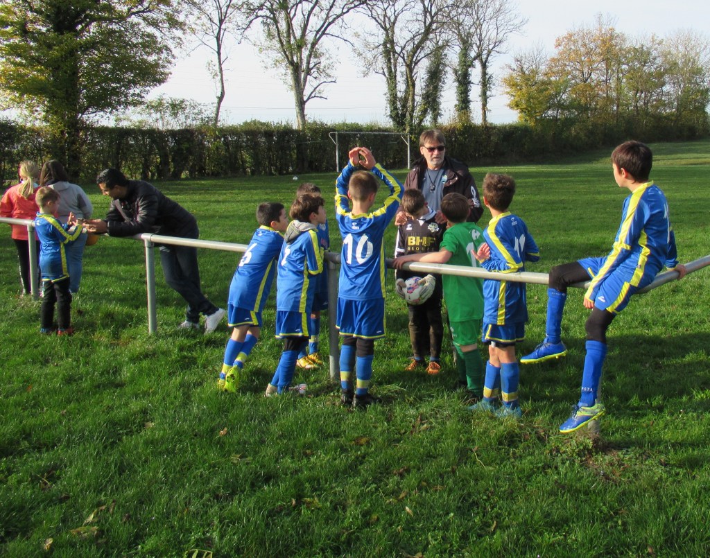 C’est le club de l’ESVO (Recey, Val d’Ource en entente avec le FC Aignay-Baigneux sur certaines catégories) qui est venu au stade de l’Epine Marcel David. Une première rotation s’est déroulée en mélangeant les effectifs des deux clubs avant de reprendre des oppositions classiques. La matinée s’est terminée par un concours de pénaltys pour les U7 et U9 remportés par des joueurs de l’ESVO, et le shoot out pour les U11. Le principe : en partant du rond central, les joueurs ont dix secondes pour marquer… mais ils devaient le faire avec….un ballon de rugby et ses rebonds capricieux ! C’est Paul Andrzjewski qui s’est montré le plus adroit. Le vainqueur de chaque catégorie es reparti avec une coupe.