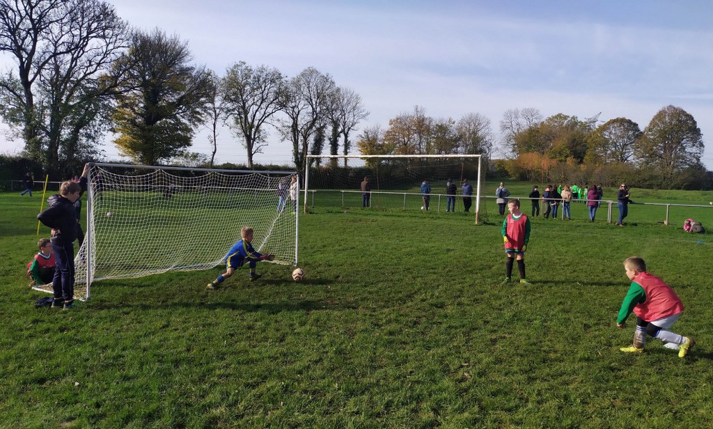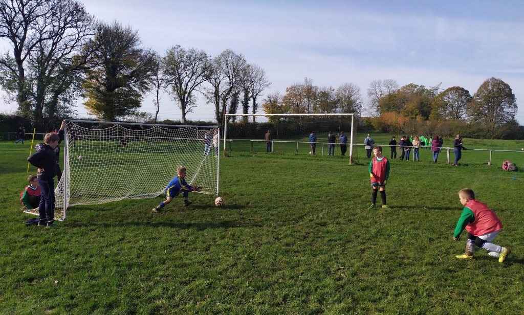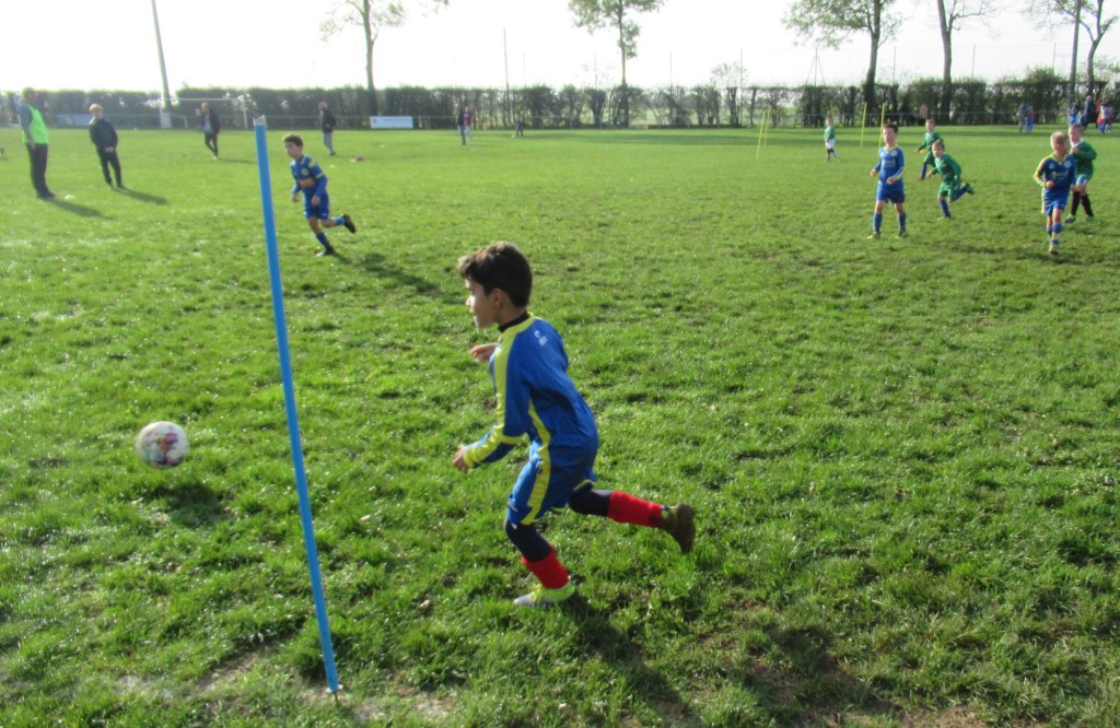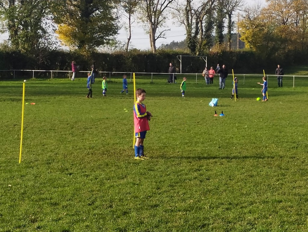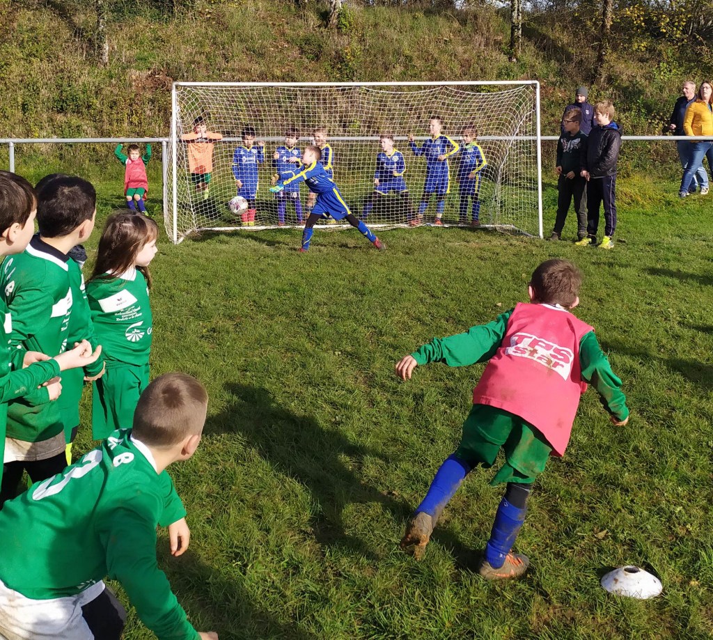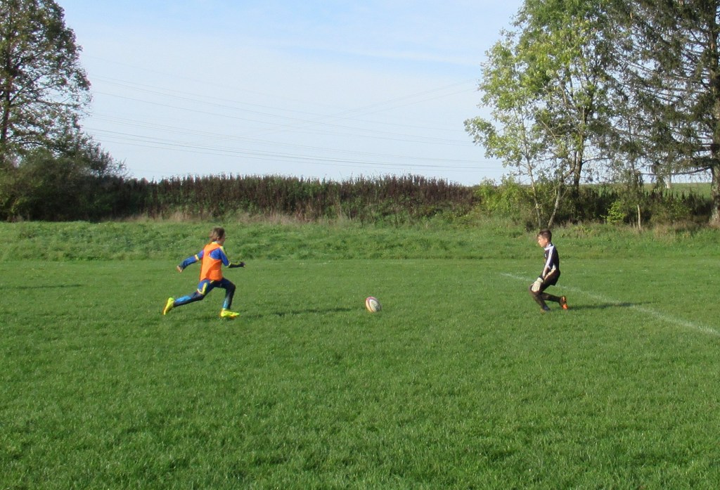 C’est le club de l’ESVO (Recey, Val d’Ource en entente avec le FC Aignay-Baigneux sur certaines catégories) qui est venu au stade de l’Epine Marcel David. Une première rotation s’est déroulée en mélangeant les effectifs des deux clubs avant de reprendre des oppositions classiques. La matinée s’est terminée par un concours de pénaltys pour les U7 et U9 remportés par des joueurs de l’ESVO, et le shoot out pour les U11. Le principe : en partant du rond central, les joueurs ont dix secondes pour marquer… mais ils devaient le faire avec….un ballon de rugby et ses rebonds capricieux ! C’est Paul Andrzjewski qui s’est montré le plus adroit. Le vainqueur de chaque catégorie es reparti avec une coupe.