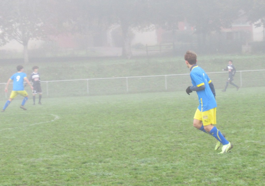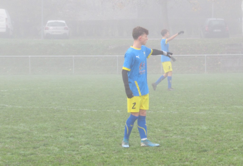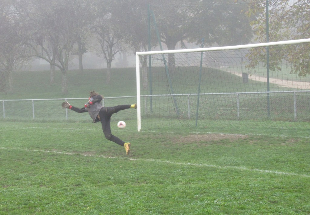Les bleus imposent leur jeu et ouvrent rapidement le score par ce diable d’Elno qui convertit de l’intérieur du droit une belle ouverture de Thomas, 1 à 0. Très rapidement, en capitaine qui montre l’exemple, Thomas double la marque en convertissant un coup franc de 20m sur lequel le gardien n’est pas exempt de tous reproches, 2 à 0. On se dirige vers un succès tranquille. Louison fait le job en détournant magistralement un pénalty. Forts de leur avance, les bleus s’endorment quelque peu. Après le repos, es bleus sont sur courant alternatif. Avec de belles séquences avec des attaques bien préparées en passes courtes. Puis d’autres plus laborieuses avec beaucoup de déchet technique sur des gestes simples. Au milieu Hugo est lent (…) et se complique la tâche. Heureusement en défense Elie mine (…) de rien fait le taf, bien aidé par Tristan bien que mal (…), et ne laisse aucun espace à son adversaire. Thomas traque (…) les bons ballons de contre. Elouan pleine course (…) tente de mettre le feu sur son côté. Benoit son chagrin (…) sur une belle occasion manquée. Clément dit (…) tout haut qu’il aimerait recevoir le ballon dans les pieds. Heureusement qu’Elno probem (…) pour trouver le chemin des filets.Simon oxyde (…) son défenseur et expédie une merveille d’enroulé qui échoue hélas sur la transversale. On en restera là !