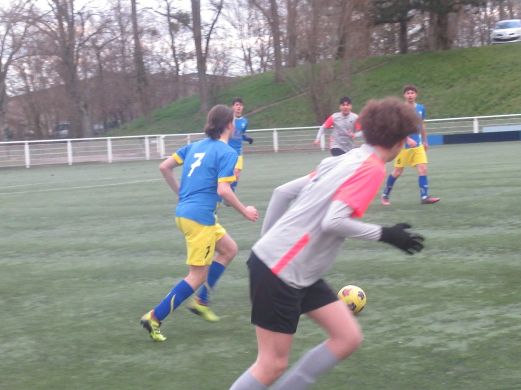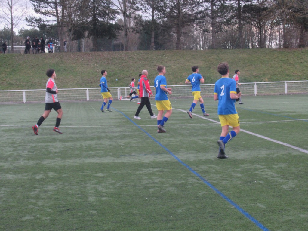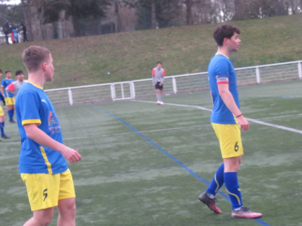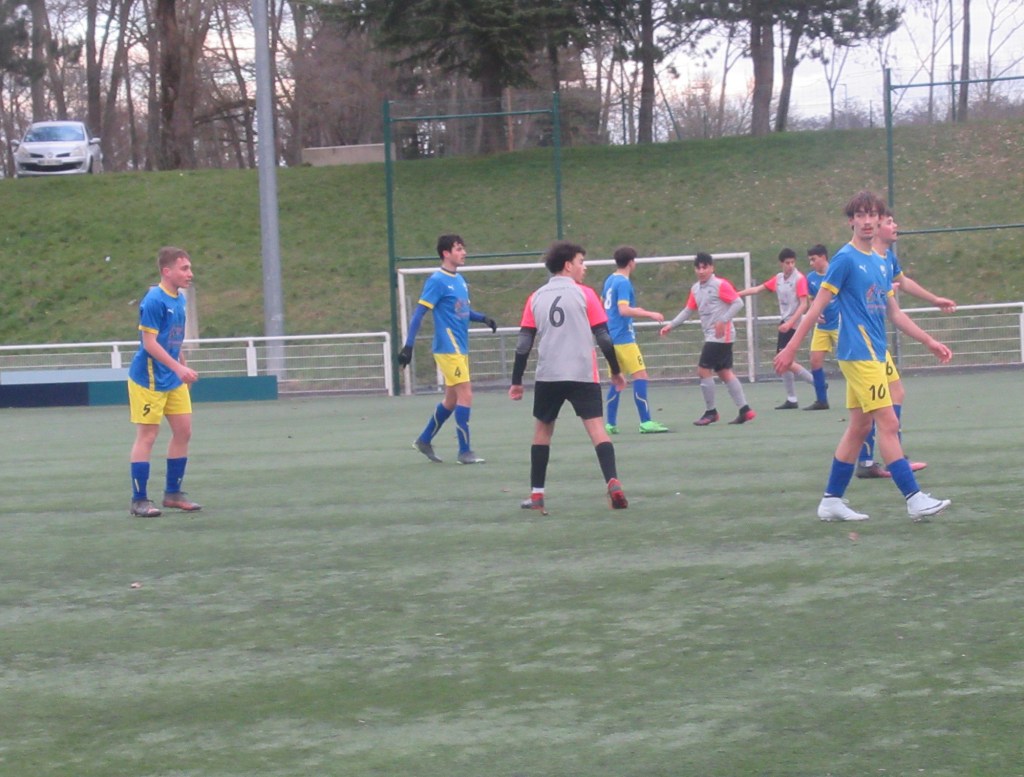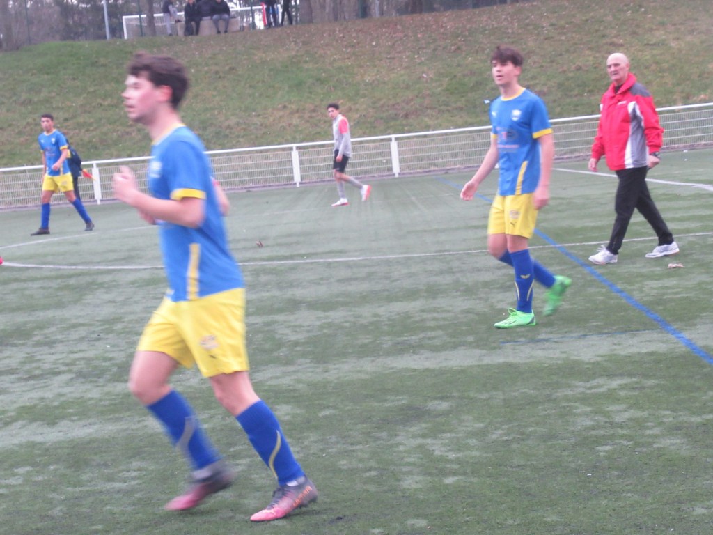 Pour ce premier match de championnat de la 2ème phase, l’Entente s’est inclinée 1-3 à Dijon Grésilles. Elle a dans un premier temps fourni le bâton pour ce faire taper dessus. Menée 0-2 au bout d’un quart d’heure, avantage servi sur un plateau à son adversaire. D’abord une perte de balle stupide à 30m de son but, puis sur un coup franc relâché par Louison que personne n’a suivi… à part l’avant centre local ! Dommage car Elno s’était présenté seul face au gardien dès la première minute. L’équipe a ensuite repris les choses en main et réussit à revenir au score par l’intermédiaire du genou de Tristan sur un corner de Thomas. Après le repos, nos jeunes se sont laissés endormir par le faux rythme imposé par les dribbleurs de Dijon Grésilles. L’intensité est ensuite montée d’un cran. Les occasions se sont succédées, « Little Hugo » trouve le poteau sur une frappe à l’entrée de la surface, Ilan tente aussi sa chance, quelques belles parades du gardien…et à la dernière seconde Dijon Grésilles plante un contre, 1-3. Louison n’a pas eu un arrêt à faire de l’après midi…