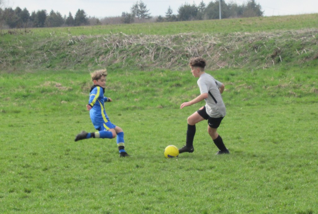 La bande à Antonin poursuit son invincibilité avec un joli succès face à Is-Selongey 3. En bon capitaine, Maxime met les siens sur les bons rails en ouvrant la score rapidement. Mais les visiteurs ne s’en laissent pas compter et égalisent sur une frappe dont le rebond trompe Samuel, 1 à 1. Maxime reprend les choses en main et redonne l’avantage à ses potes après avoir passé toute la défense adverse en revue, 2 à 1 à la mi-temps. Après le repos le collectif bleu fait la différence. Lucas et Clément utilisent bien leur côté et libèrent des espaces. Maxime en profite pour inscrire un troisième but d’une frappe de mule aux quinze mètres, 3 à 1. Lucas d’un superbe piqué enfonce un peu plus le clou, 4 à 1. Maxime en remet une couche, 5 à 1. Clément malheureux jusque là (un but refusé, deux frappes sur les poteaux) ajoute un doublé et donne au score un reflet plus juste de la partie. Alixan et Criss auront aussi de belles occasions. Natael et Matthys ont bien tenu la baraque dans une défense au sein de laquelle Léo a fait son retour après une longue blessure.