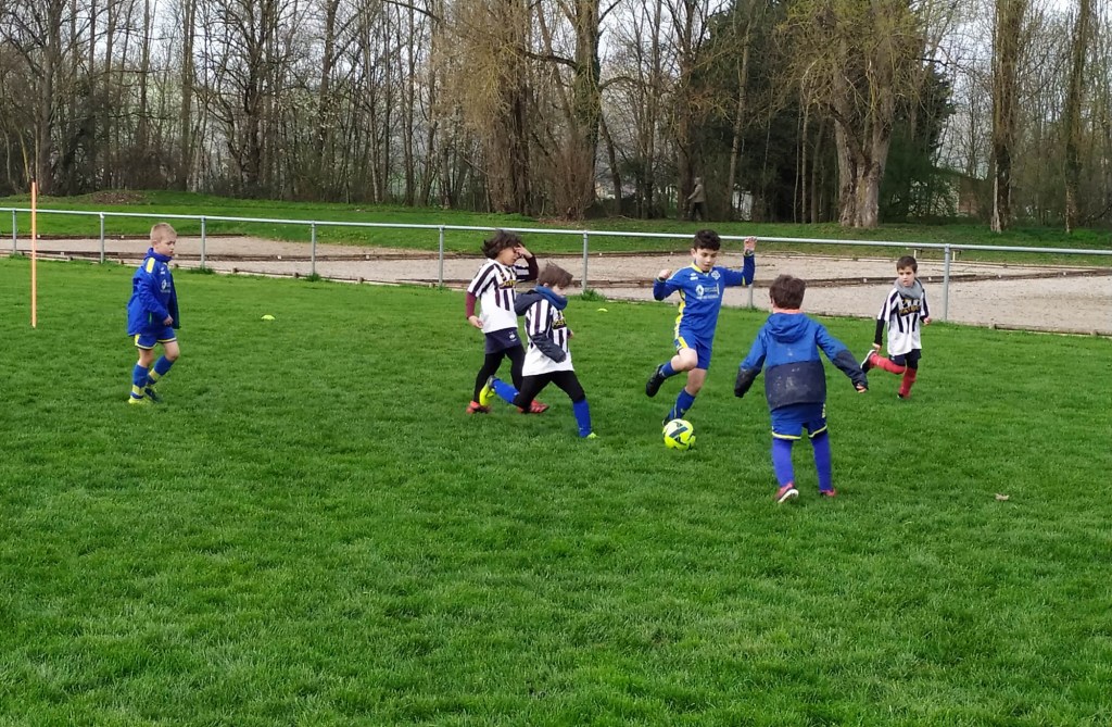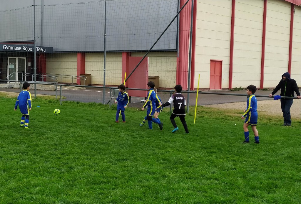 Après l’échauffement, le coach a sorti le tableau noir et expliqué la tactique du jour. Et nos petits bleus ont mis en pratique ! Du jeu collectif, des passes précises, le duo Tao/Sloen en attaque associé à Emilien a régalé avec des buts construits, et les petits Nino et Kylian qui ont fait barrage pour protéger le goal. Ils ont fait plaisir.