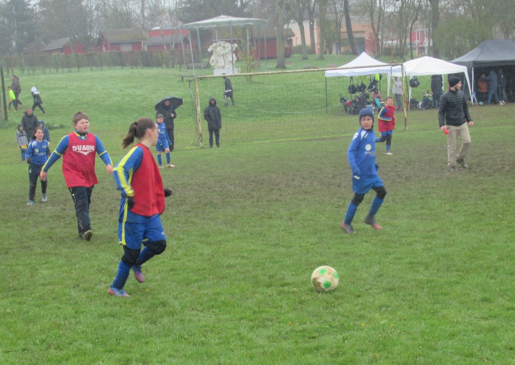 Après s’être brillamment sortis du groupe de la mort dans la matinée (Pouilly, Meursault, MVF), nos petits bleus attaquent la deuxième partie du tournoi pied au plancher avec des victoires contre Pouilly et Meursault à l’issue d’un match superbe. Tenu en échec par une belle équipe de USSE (qui pensait bien nous battre…), nos petits champions s’inclinent face à UCCF pour la victoire finale, 0-1. Mais ils peuvent être très fiers de leur journée sous une pluie froide et quasi continue.