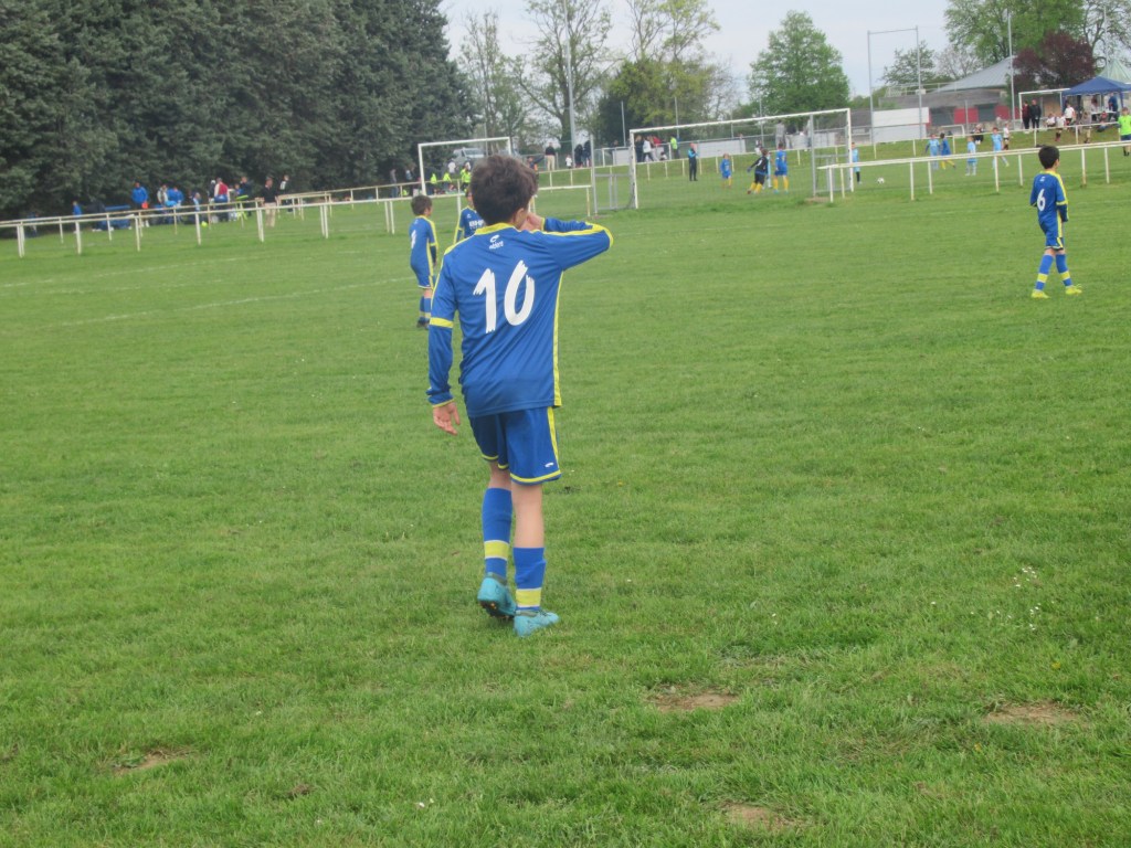 Le premier match laisse un goût très amer avec une défaite rageante sur un but concédé dans les dernières secondes. Ils enchaînent par un match nul. Le troisième est à quitte ou double face au club organisateur du tournoi… Et une solide prestation assortie d’une victoire 3 à 0 et voilà nos petits bleus 2èmes de leur groupe de brassage, se qualifiant ainsi pour la phase haute ! Leur poule de qualification est très dure. Une victoire face à Appoigny leur donne de l’espoir. Mais ils manquent leur deuxième match contre Joigny (seule contre performance de la journée) et s’inclinent aussi contre UCCF qui les avait battu en finale du tournoi de Précy. Seule ombre au tableau, la blessure d’Enzo victime d’une entorse. Ses partenaires vont puiser dans leur orgueil et leurs ressources pour lui offrir la 9ème place. Une superbe performance vu la qualité de l’opposition.
