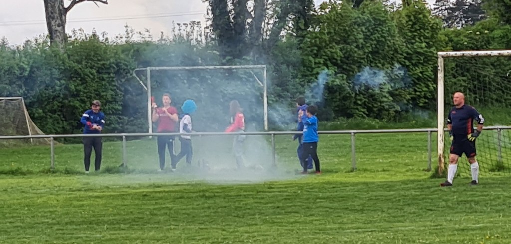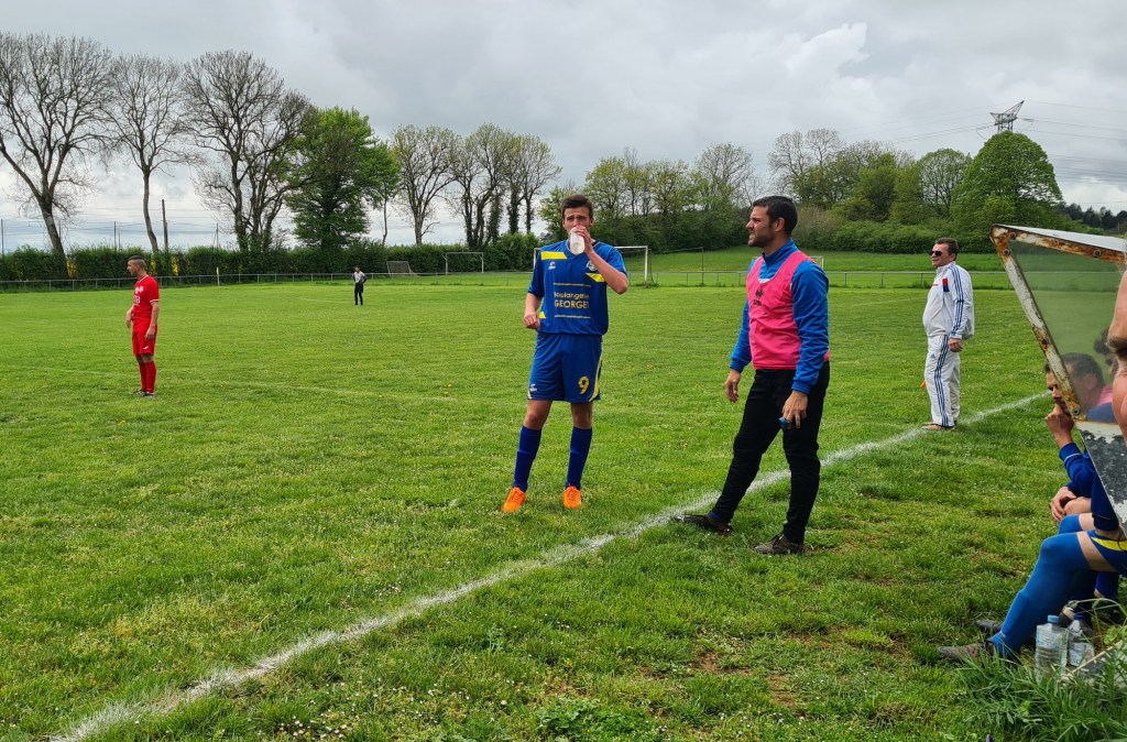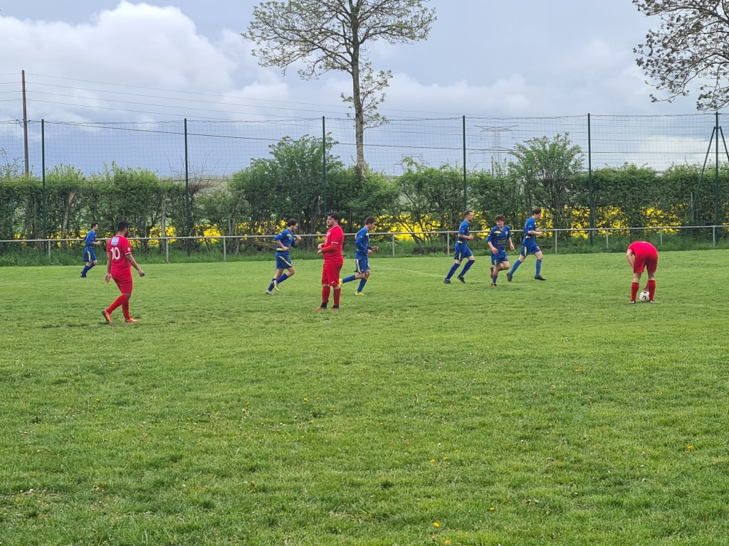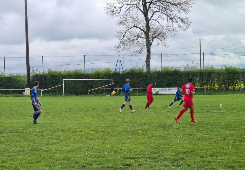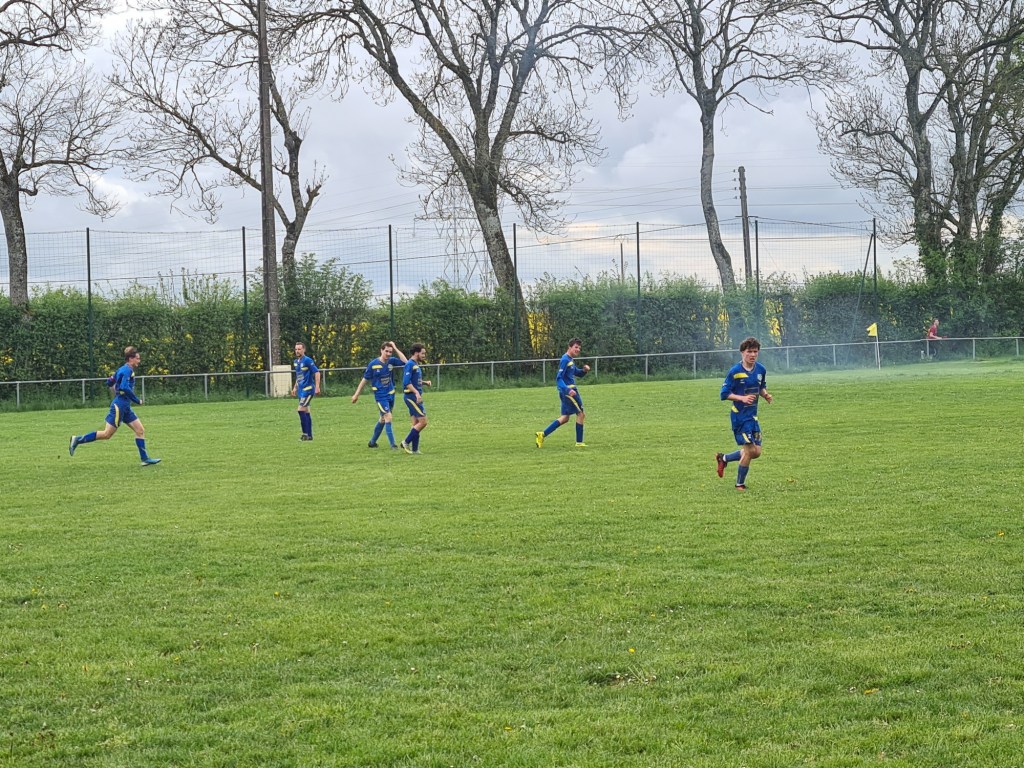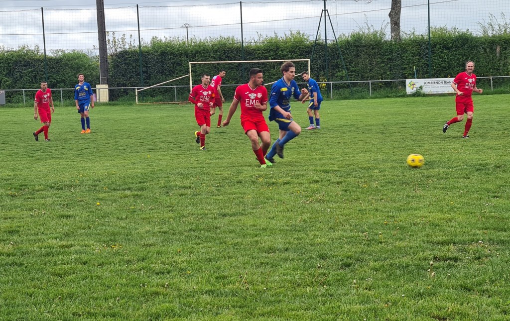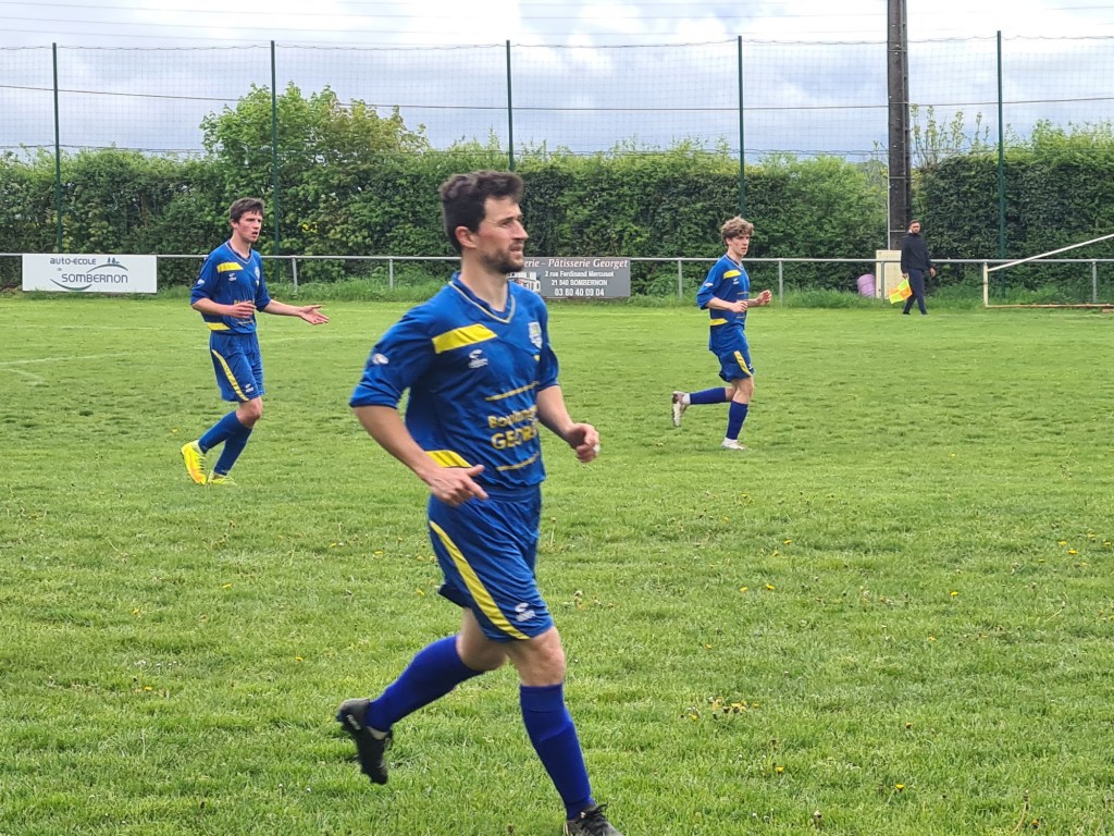 On a assisté à un match très plaisant avec deux équipes ayant l’envie de bien faire vivre le ballon. Sur un coup de sort, les visiteurs ouvrent le score sans rien demander… Une balle anodine est déviée par Baptiste qui lobe malencontreusement son gardien, 0-1. La réaction bleue est immédiate. Clément exploite une belle déviation de Sylvain pour égaliser rapidement, 1 à 1 score à la pause. La bataille dans l’entre jeu est farouche. Antonin y excelle. En défense, Geoffroy n’hésite pas à couvrir l’axe. sur un contre de Maxime, tout le monde attend le centre en retrait, mais en vieux roublard il frappe sans angle et surprend tout le monde, 2 à 1. Mais dans le dernier quart Saint Rémy met la pression et la défense bleue souffre…. et souffle quand les visiteurs galvaude un trois contre un. Mais Saint Rémy finit par égaliser à la 85ème. Mais les bleus ne veulent se contenter de ce résultat ! Dans les arrêts de jeu, Antonin profite d’un caviar pour battre le près le gardien adverse. Sébastien peut alors quitter son but sous les ovations de ses partenaires et du public et laisser sa place à coach Jérôme.