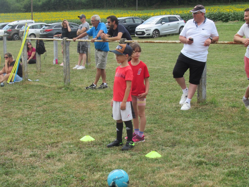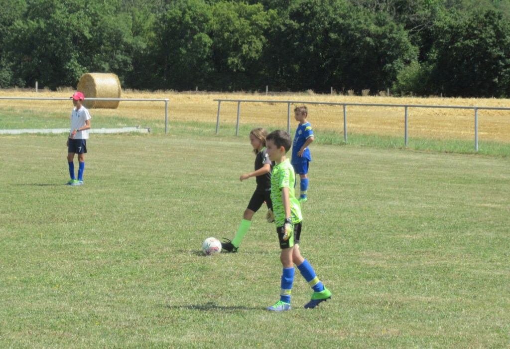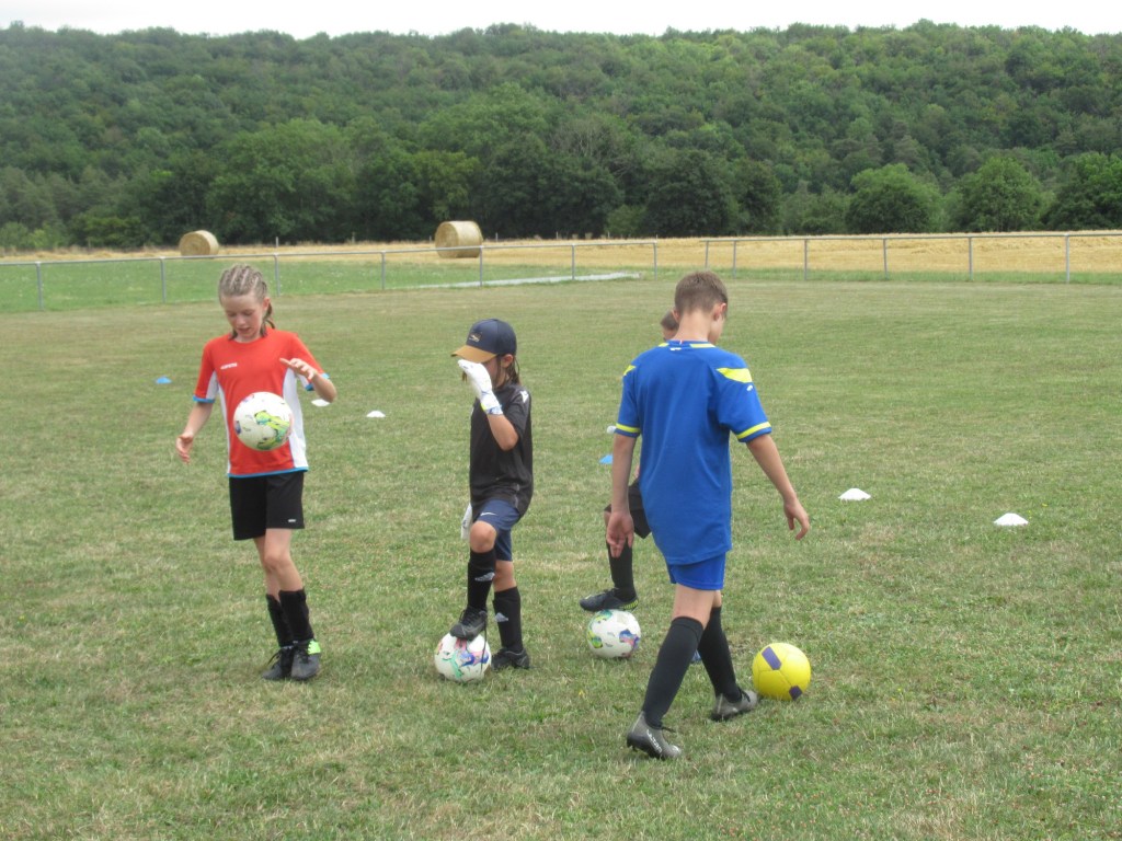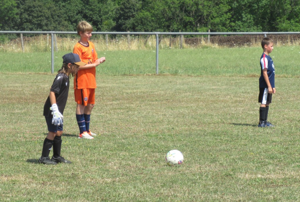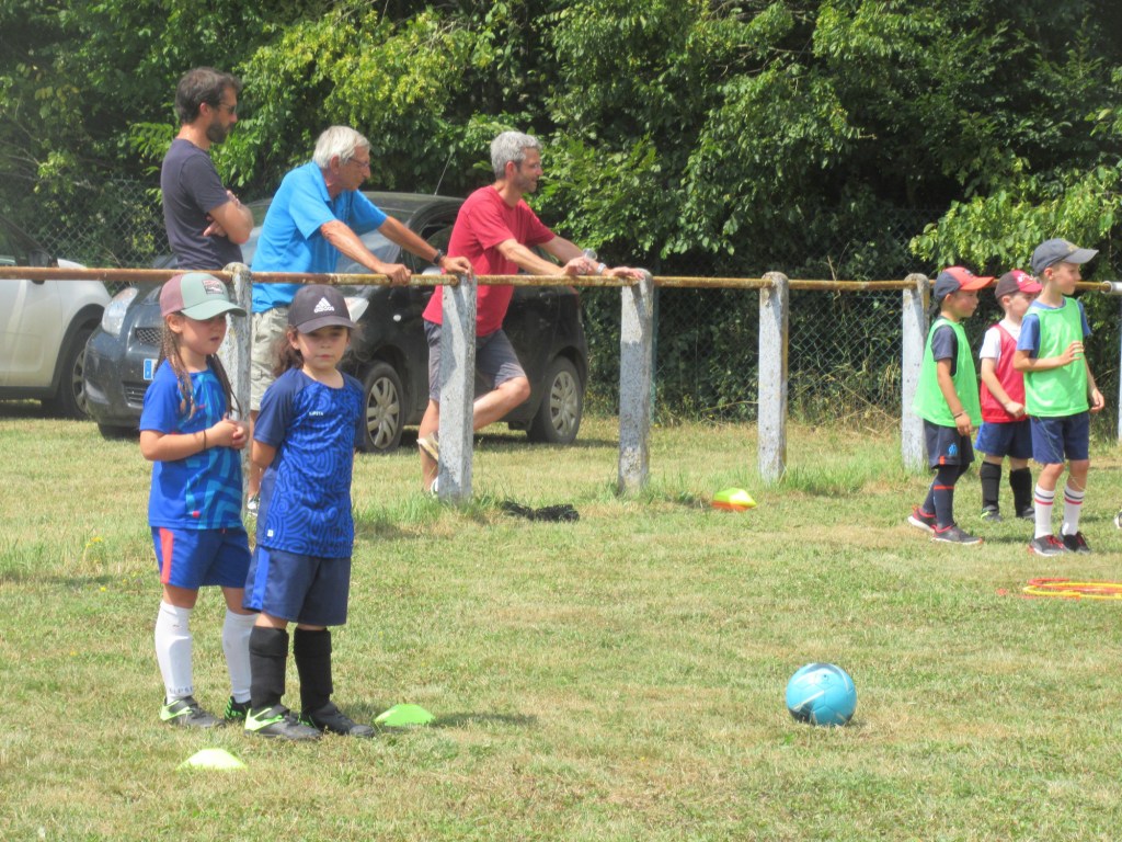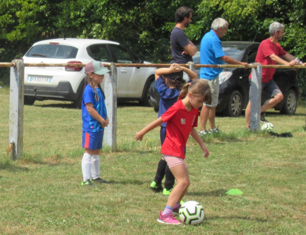 On a frôlé le record au stade de la Vallée à Gissey ce samedi pourtant orageux. Une trentaine de jeunes est venue taquiner le cuir sous le regard de leurs parents. Un pur bonheur pour le club. Pierre et Rémi avec les « petits » ont alterné conduite de balle et défis endiablés avant le moment tant attendu « c’est quand qu’on fait un match ? ». Clément et Thomas ont fait travailler la technique individuelle aux « grands » avant le big match. Le plaisir d’accueillir des enfants en vacances dans la région et aussi beaucoup de filles. A l’issue de la séance, le goûter offert est le bienvenu !