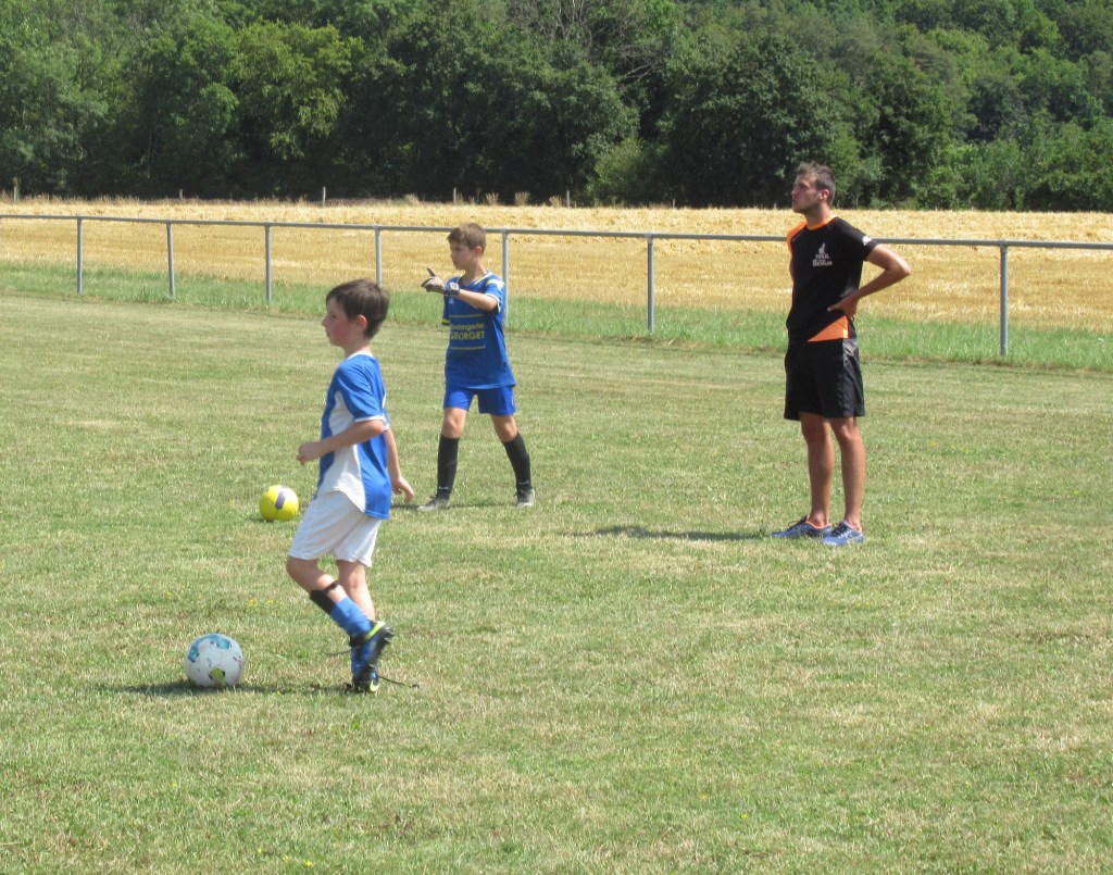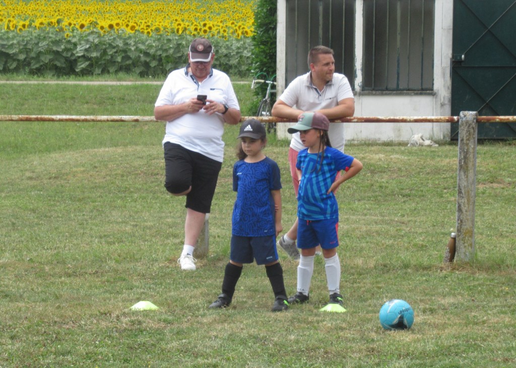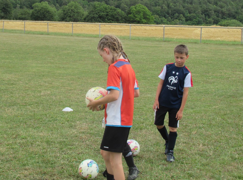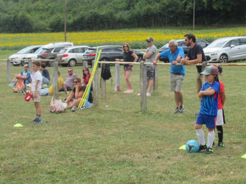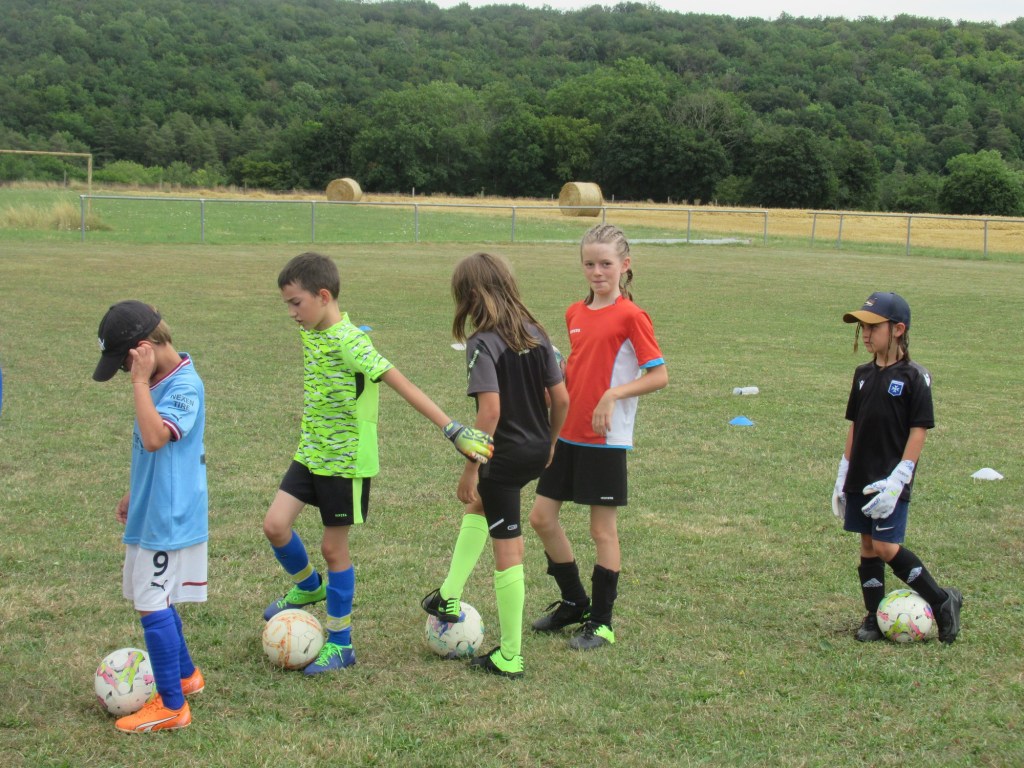 On a frôlé le record au stade de la Vallée à Gissey ce samedi pourtant orageux. Une trentaine de jeunes est venue taquiner le cuir sous le regard de leurs parents. Un pur bonheur pour le club. Pierre et Rémi avec les « petits » ont alterné conduite de balle et défis endiablés avant le moment tant attendu « c’est quand qu’on fait un match ? ». Clément et Thomas ont fait travailler la technique individuelle aux « grands » avant le big match. Le plaisir d’accueillir des enfants en vacances dans la région et aussi beaucoup de filles. A l’issue de la séance, le goûter offert est le bienvenu !