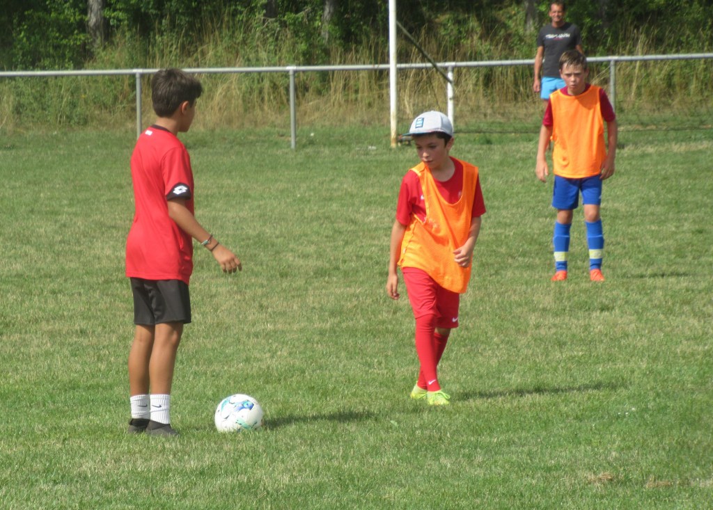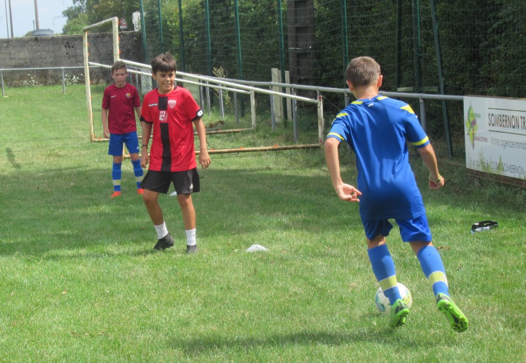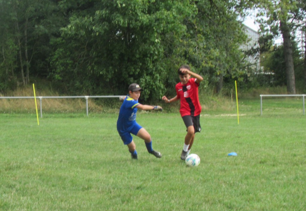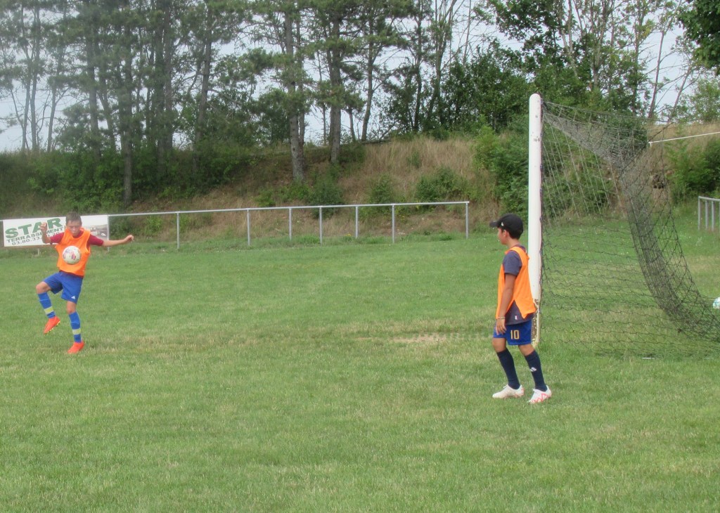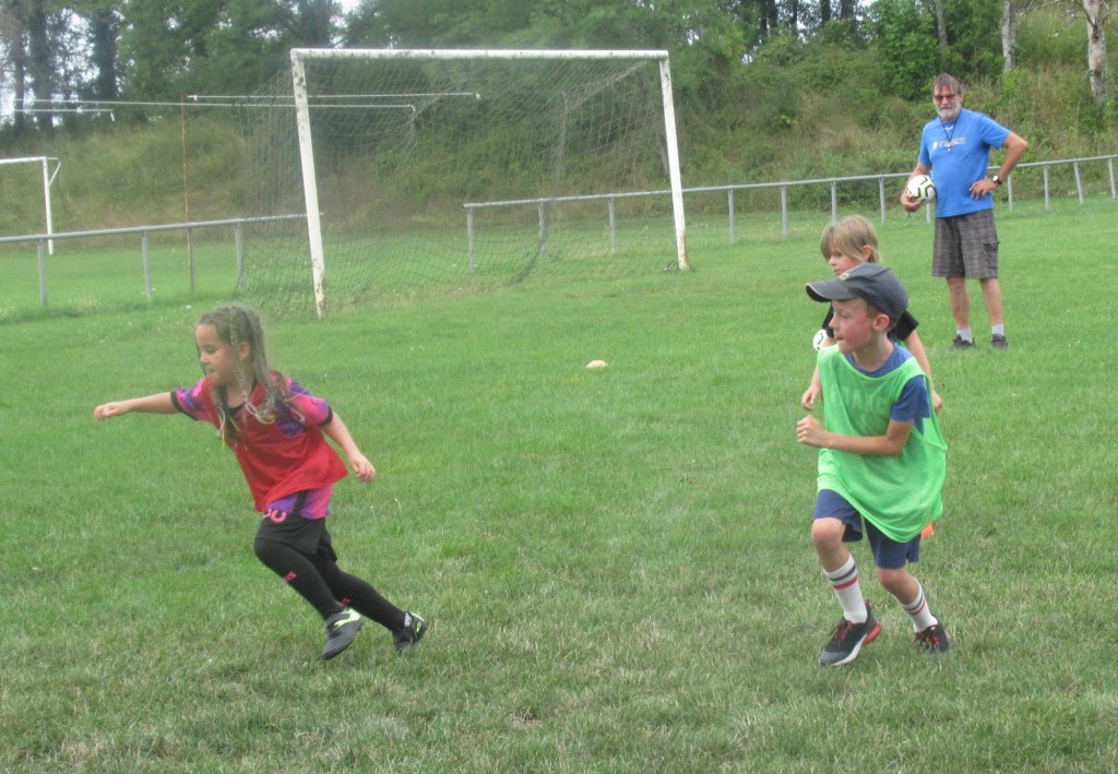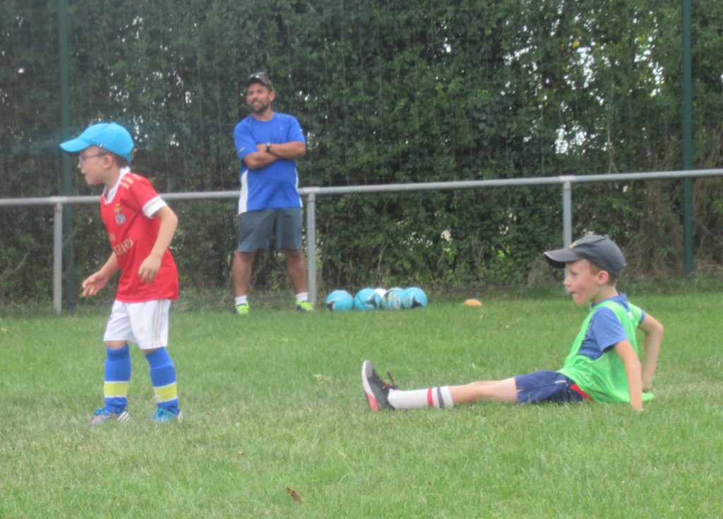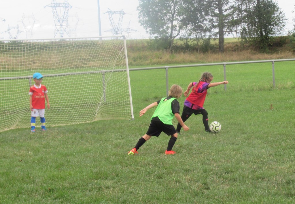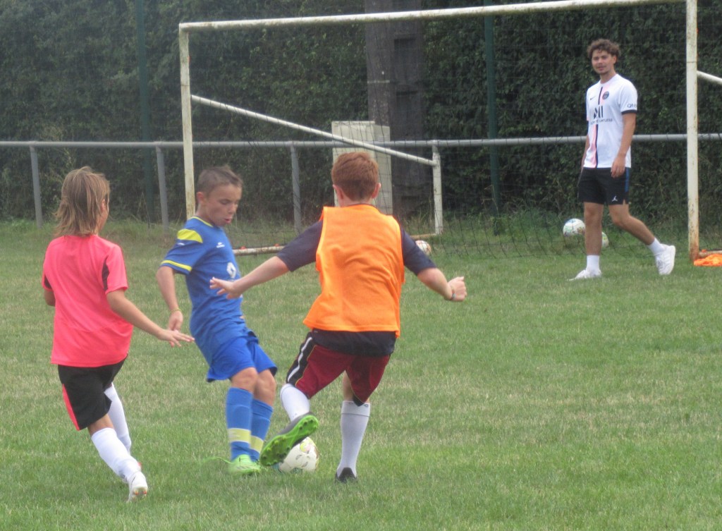 Les pauses ont été plus nombreuses qu’à l’accoutumée, mais les présents en ont bien profité quand même, comme peuvent en témoigner Mario et Rémi avec les « petits » et Ludovic et Thomas avec les « grands« . Après les exercices techniques de mise en route, place au « big match« . Et là, ça ne rigole plus. Chaque mètre carré de terrain est défendu avec énergie et on cherche les meilleurs solutions pour aller faire trembler les filets adverses. Un vrai plaisir à les regarder.