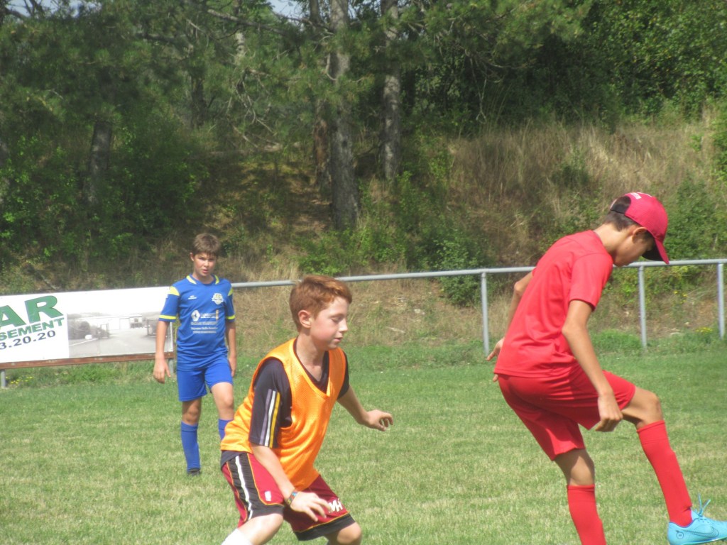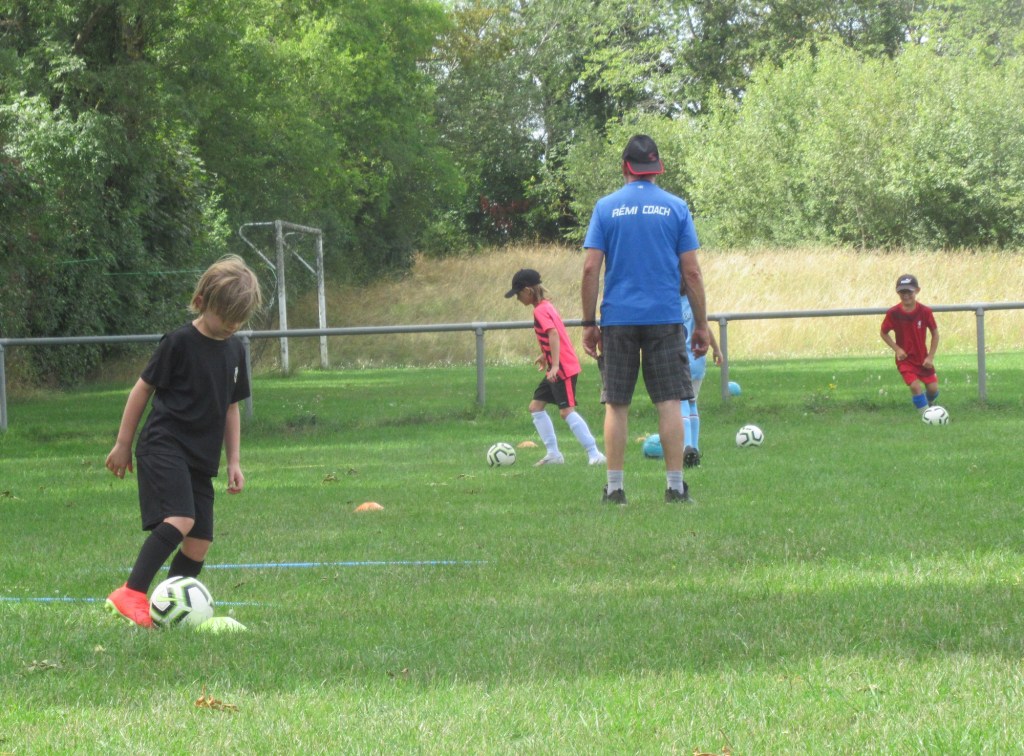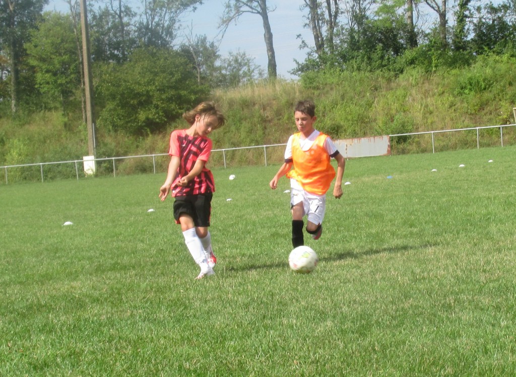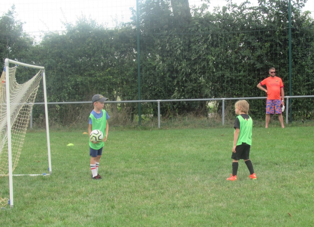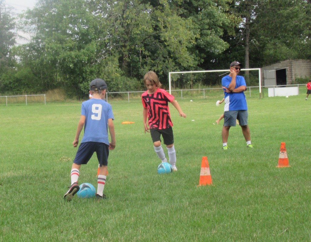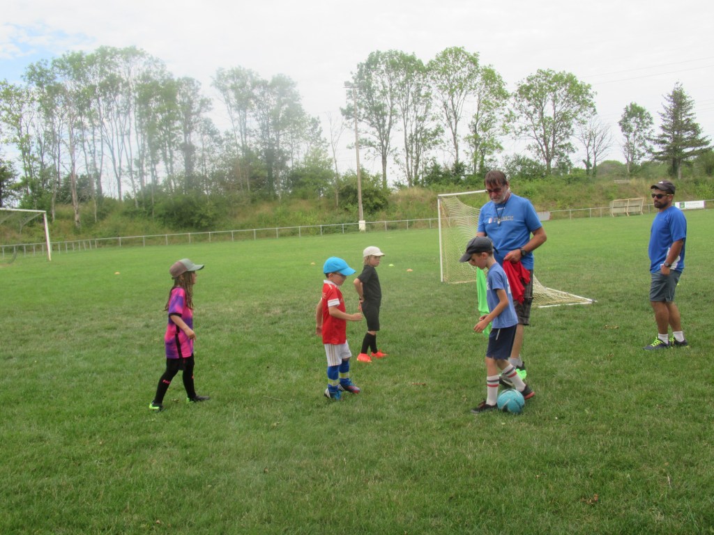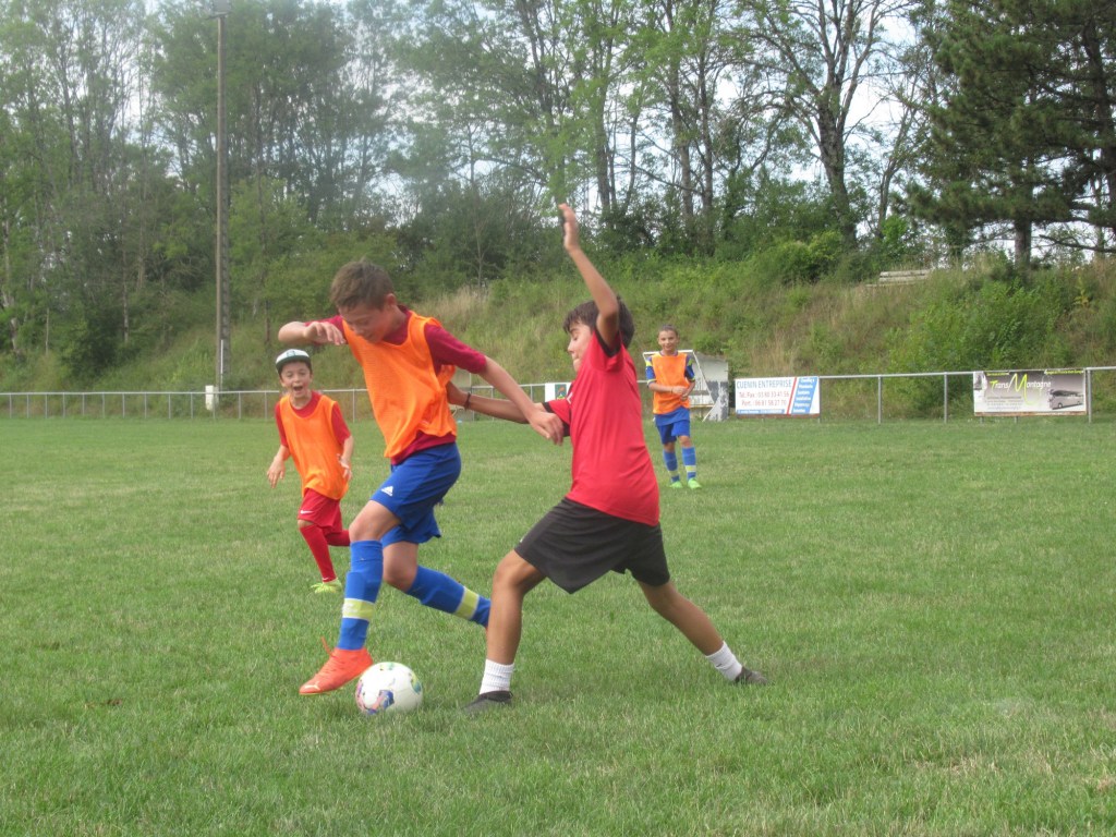 Les pauses ont été plus nombreuses qu’à l’accoutumée, mais les présents en ont bien profité quand même, comme peuvent en témoigner Mario et Rémi avec les « petits » et Ludovic et Thomas avec les « grands« . Après les exercices techniques de mise en route, place au « big match« . Et là, ça ne rigole plus. Chaque mètre carré de terrain est défendu avec énergie et on cherche les meilleurs solutions pour aller faire trembler les filets adverses. Un vrai plaisir à les regarder.