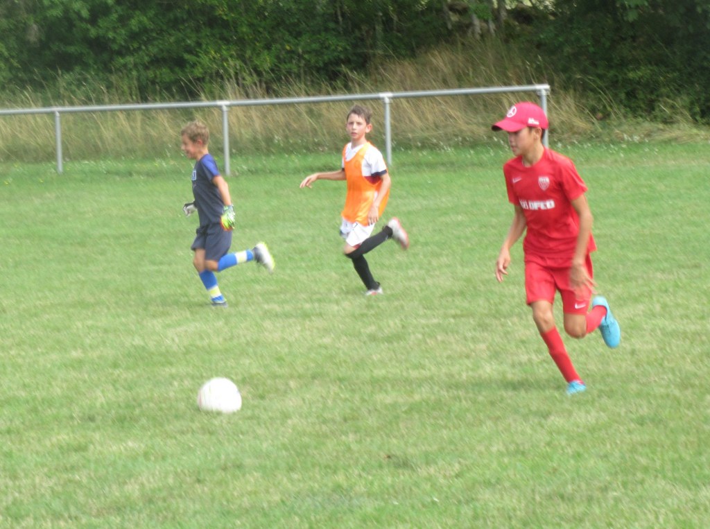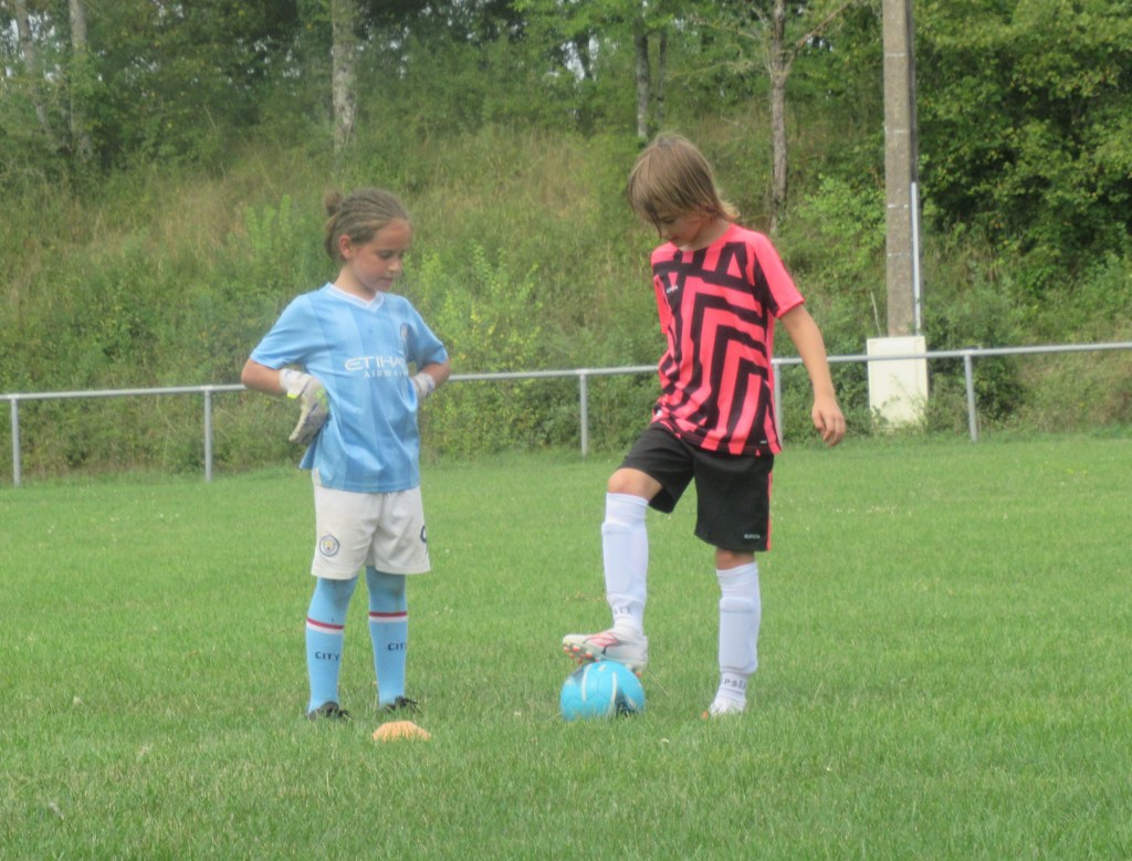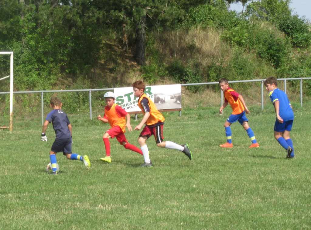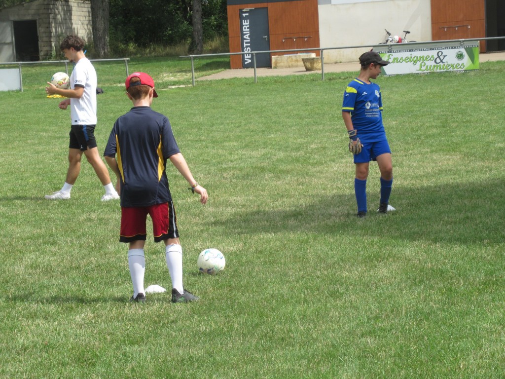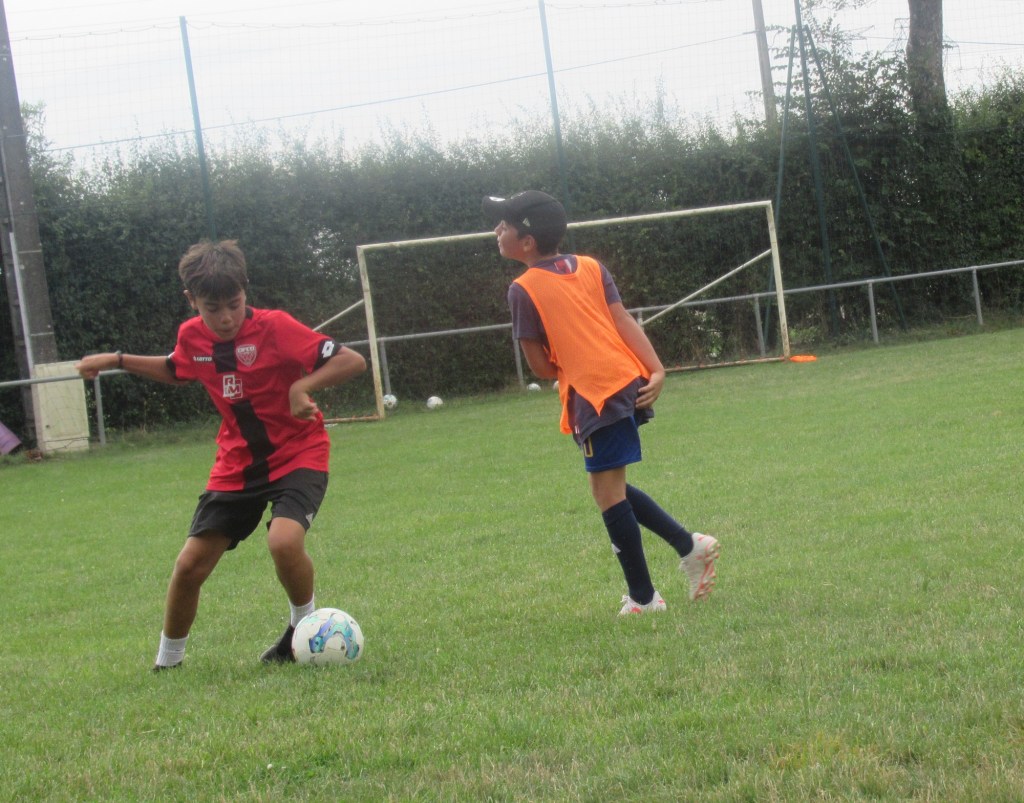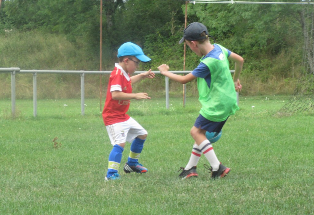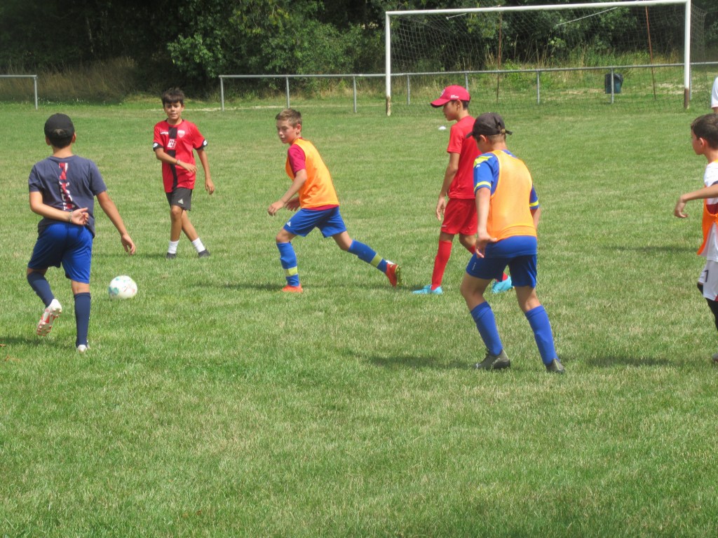 Les pauses ont été plus nombreuses qu’à l’accoutumée, mais les présents en ont bien profité quand même, comme peuvent en témoigner Mario et Rémi avec les « petits » et Ludovic et Thomas avec les « grands« . Après les exercices techniques de mise en route, place au « big match« . Et là, ça ne rigole plus. Chaque mètre carré de terrain est défendu avec énergie et on cherche les meilleurs solutions pour aller faire trembler les filets adverses. Un vrai plaisir à les regarder.