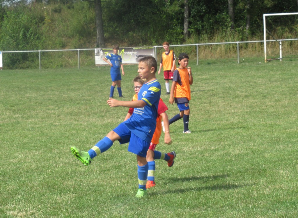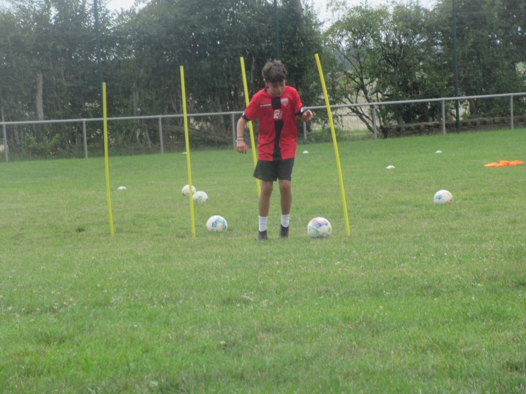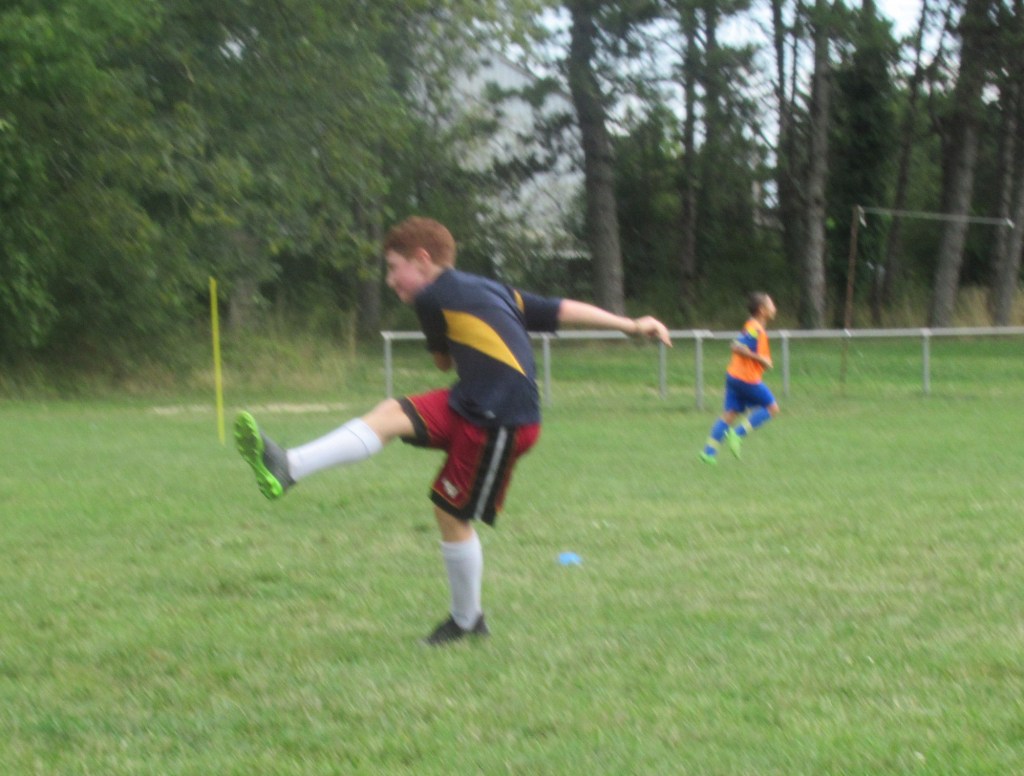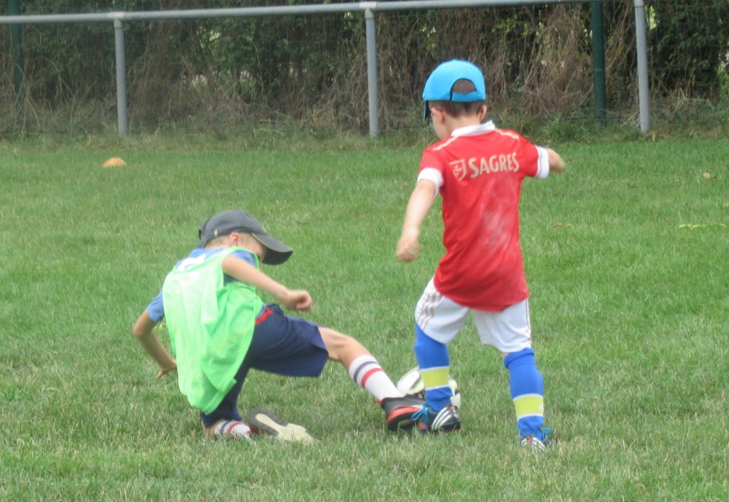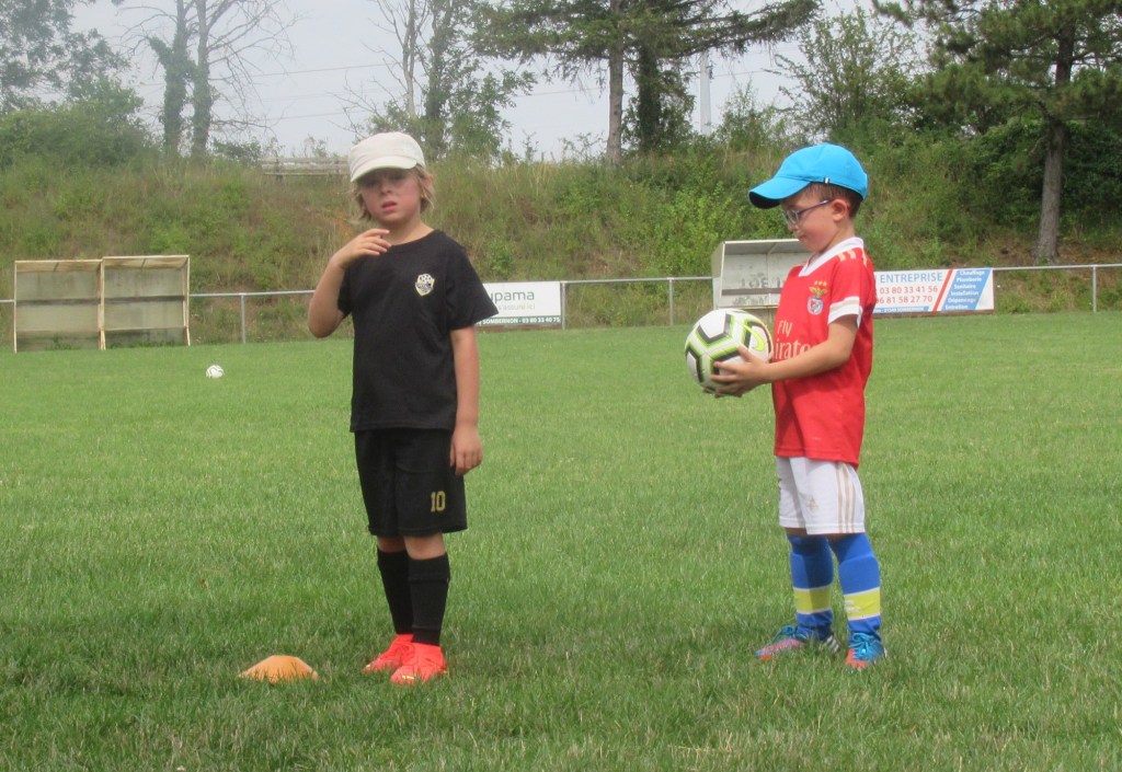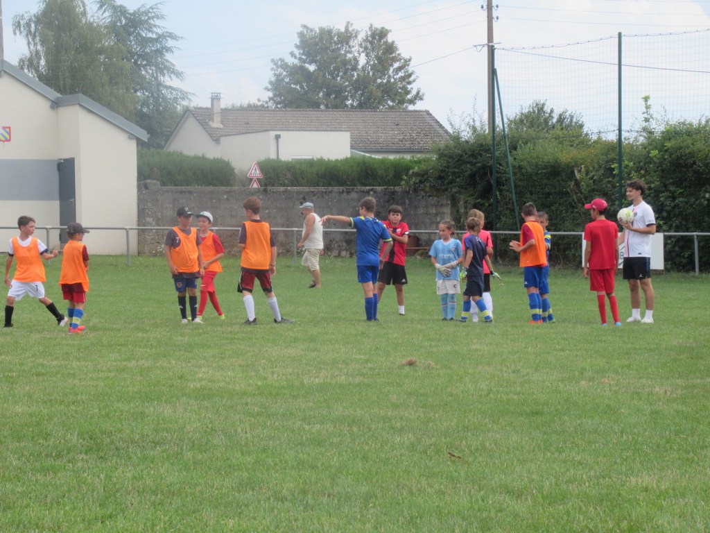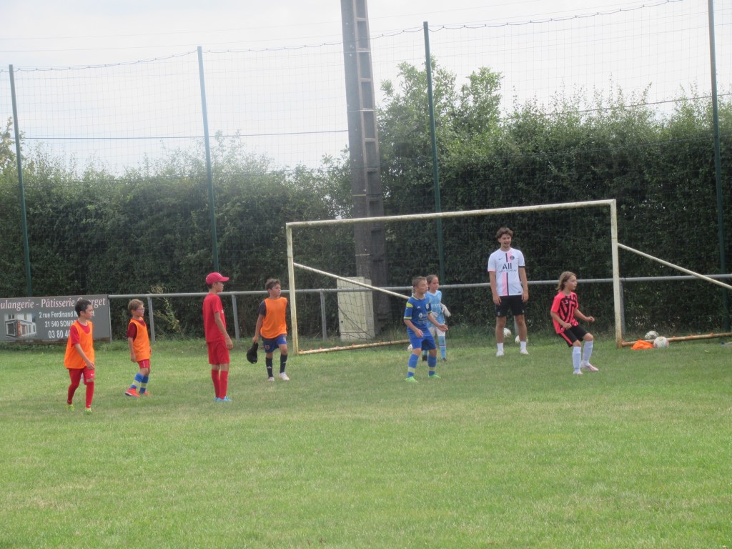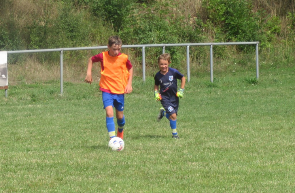 Les pauses ont été plus nombreuses qu’à l’accoutumée, mais les présents en ont bien profité quand même, comme peuvent en témoigner Mario et Rémi avec les « petits » et Ludovic et Thomas avec les « grands« . Après les exercices techniques de mise en route, place au « big match« . Et là, ça ne rigole plus. Chaque mètre carré de terrain est défendu avec énergie et on cherche les meilleurs solutions pour aller faire trembler les filets adverses. Un vrai plaisir à les regarder.