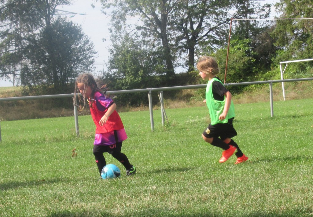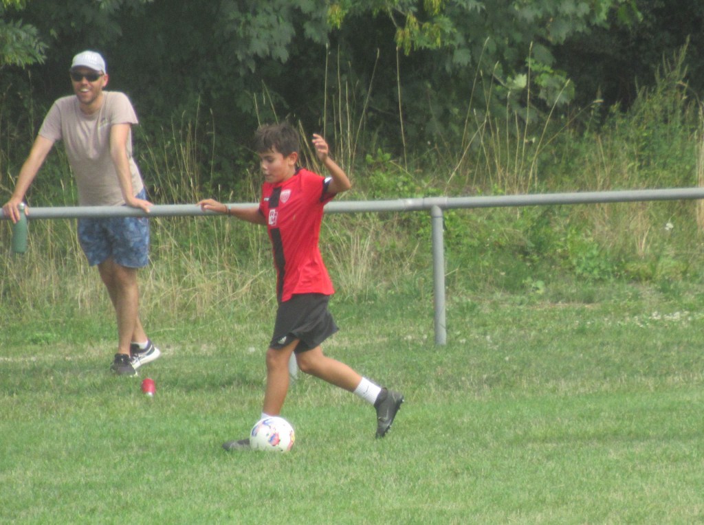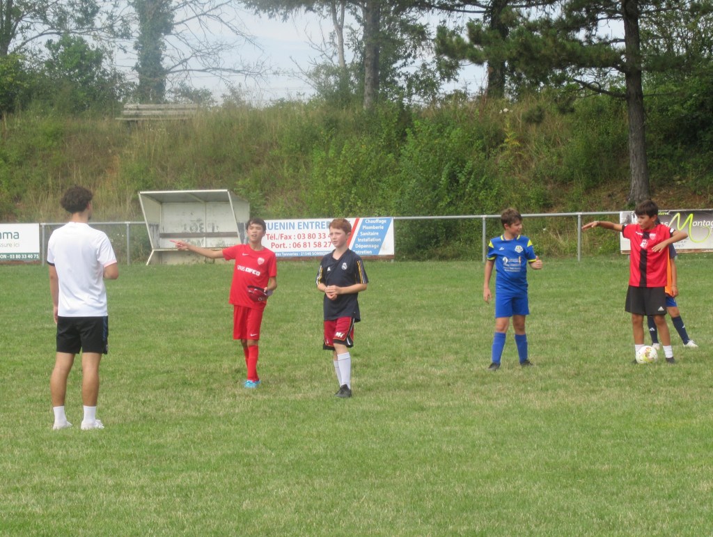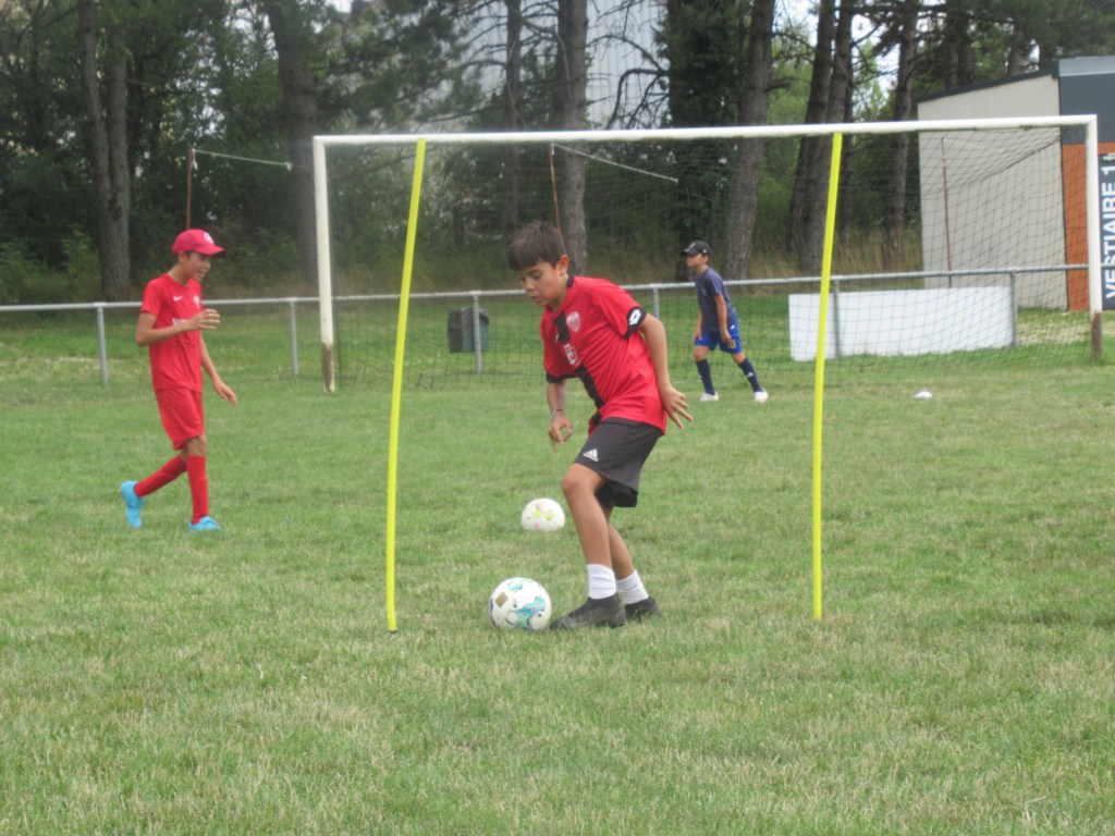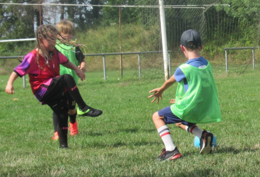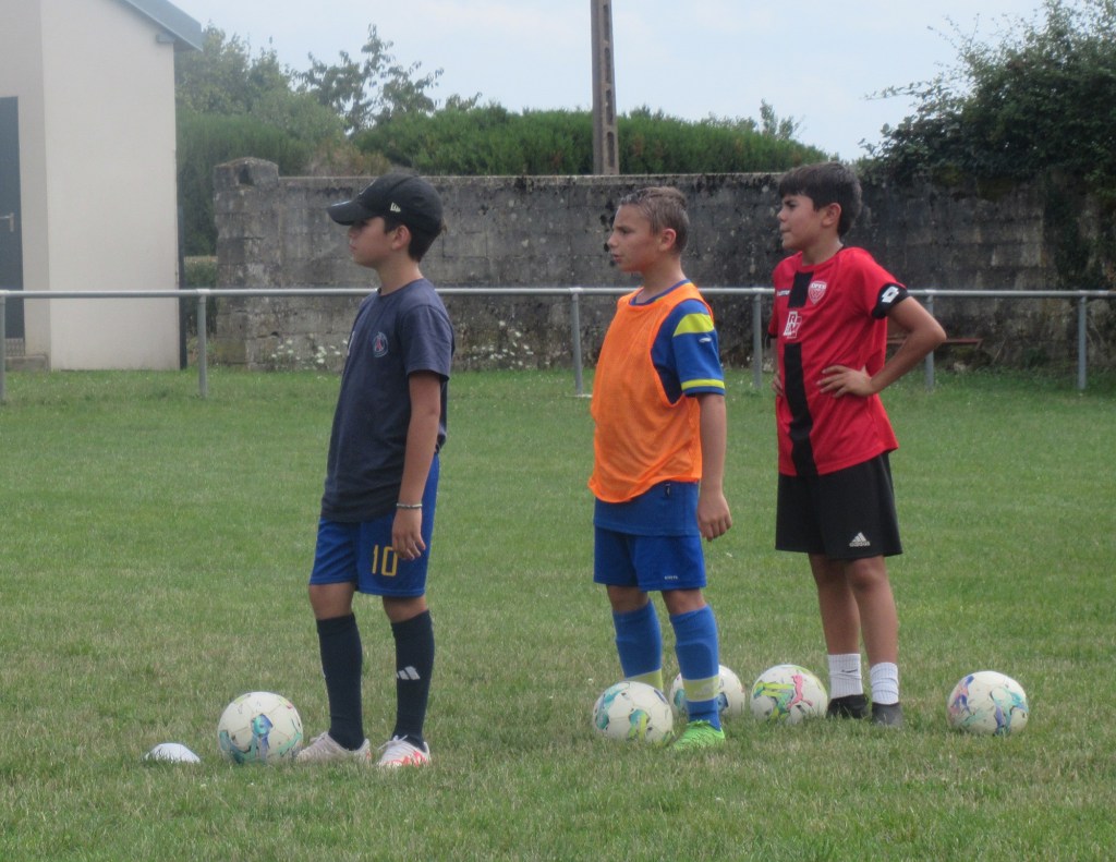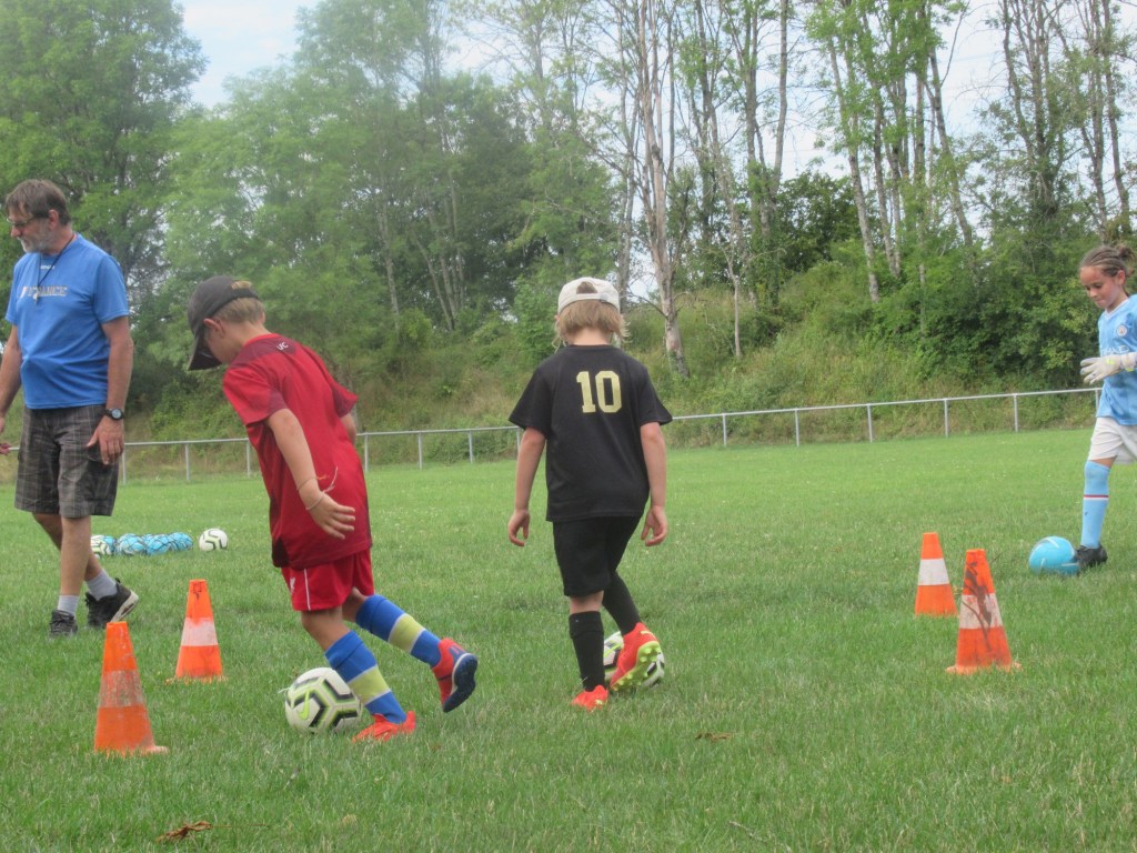 Les pauses ont été plus nombreuses qu’à l’accoutumée, mais les présents en ont bien profité quand même, comme peuvent en témoigner Mario et Rémi avec les « petits » et Ludovic et Thomas avec les « grands« . Après les exercices techniques de mise en route, place au « big match« . Et là, ça ne rigole plus. Chaque mètre carré de terrain est défendu avec énergie et on cherche les meilleurs solutions pour aller faire trembler les filets adverses. Un vrai plaisir à les regarder.