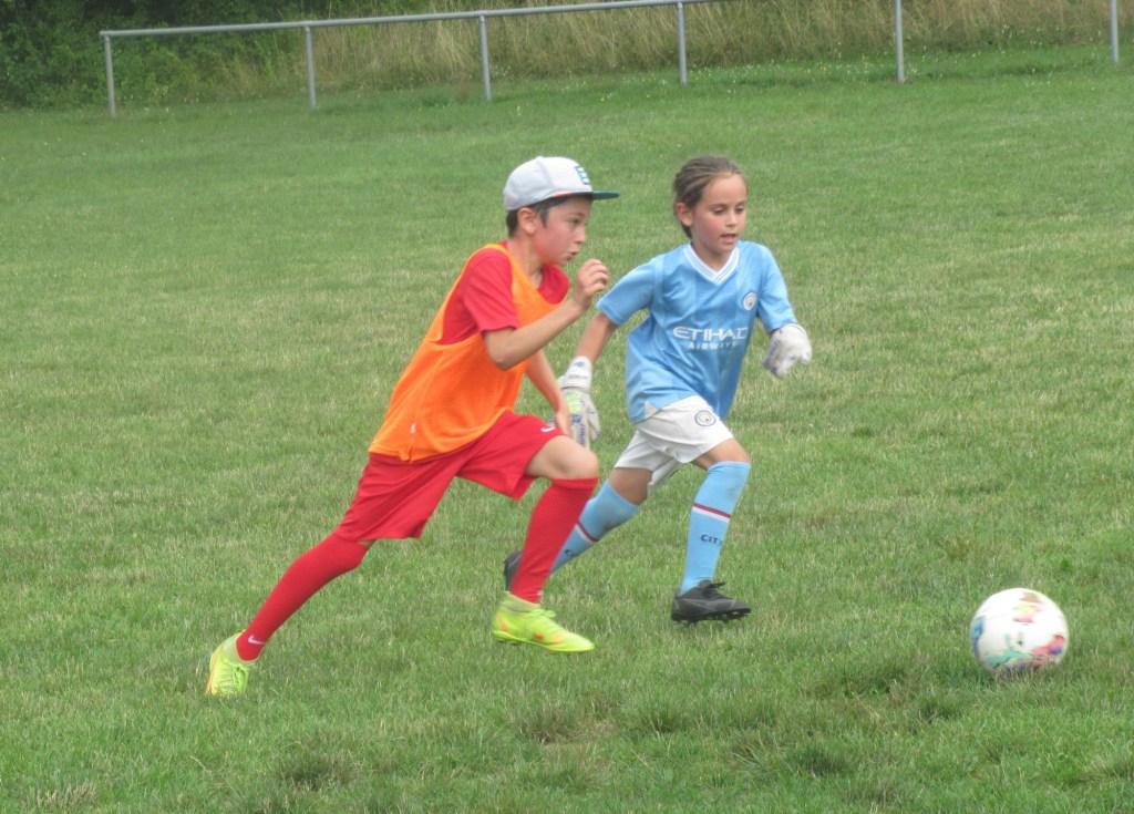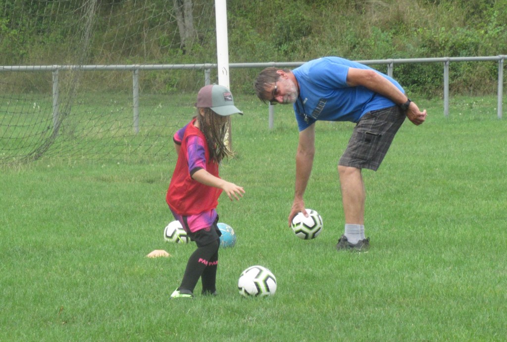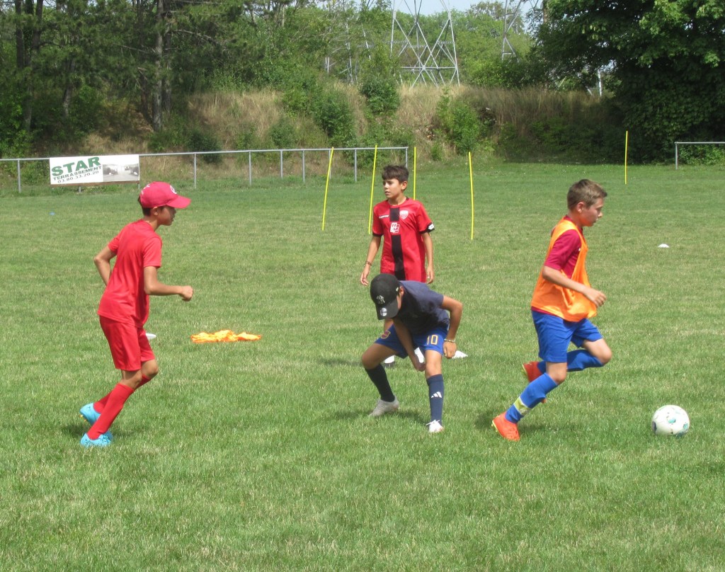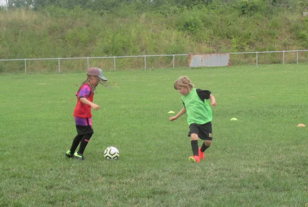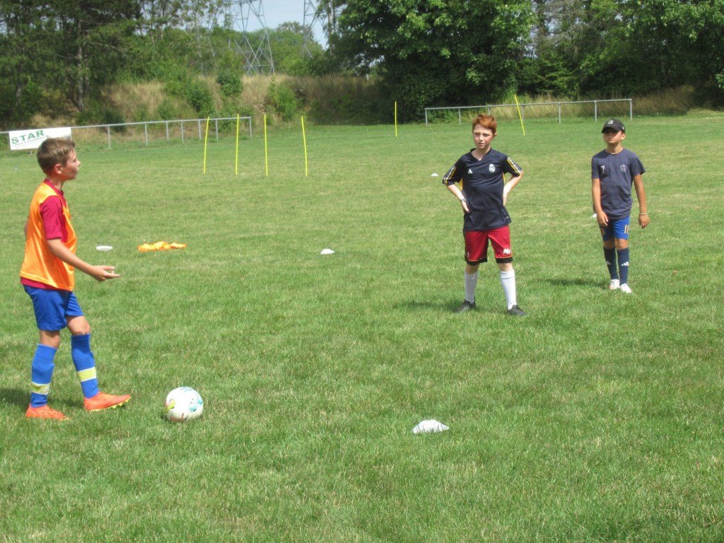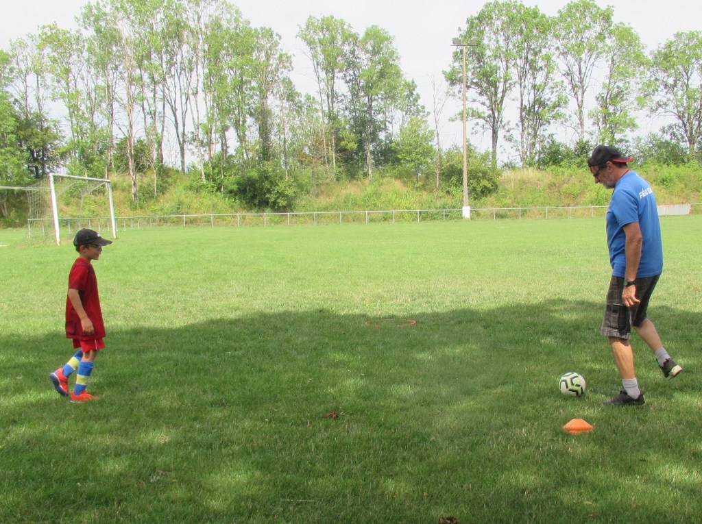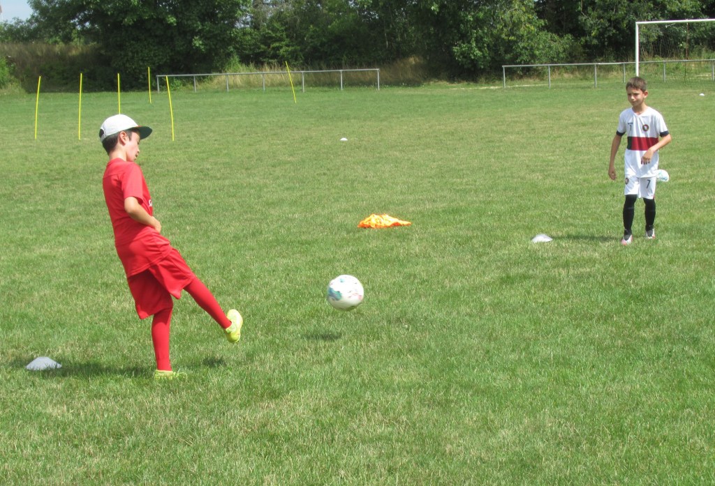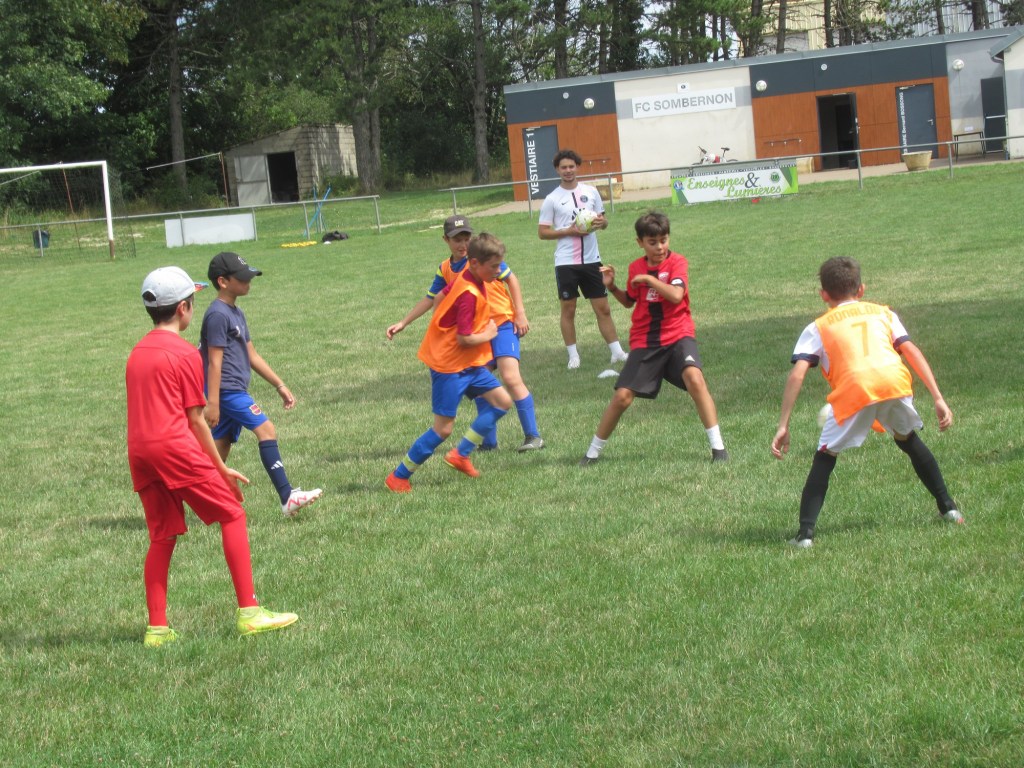 Les pauses ont été plus nombreuses qu’à l’accoutumée, mais les présents en ont bien profité quand même, comme peuvent en témoigner Mario et Rémi avec les « petits » et Ludovic et Thomas avec les « grands« . Après les exercices techniques de mise en route, place au « big match« . Et là, ça ne rigole plus. Chaque mètre carré de terrain est défendu avec énergie et on cherche les meilleurs solutions pour aller faire trembler les filets adverses. Un vrai plaisir à les regarder.
