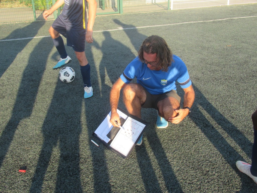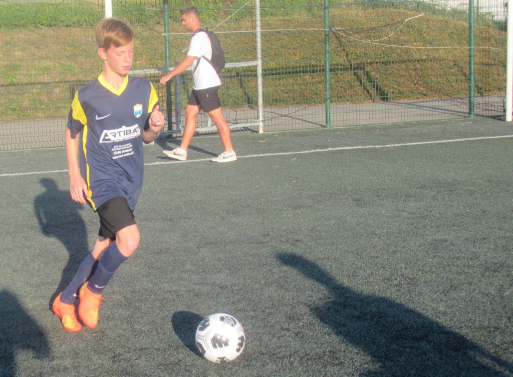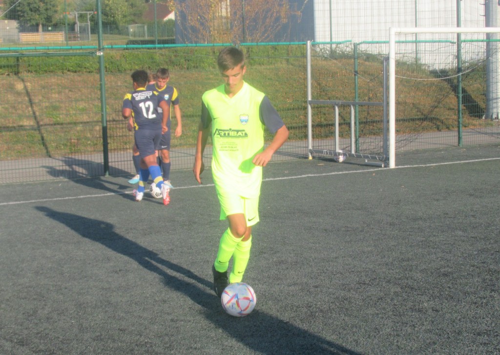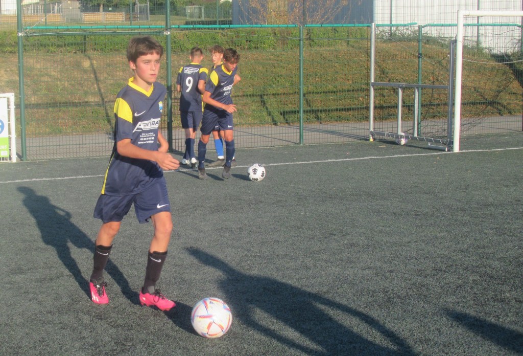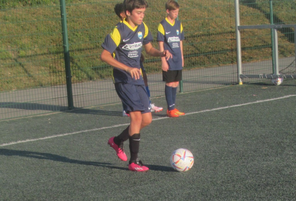 La première période est plutôt équilibrée mais les meilleures occasions sont pour les bleus comme ces deux enchaînements contrôle/frappe de Mattéo ou cette frappe lointaine de Andréa. La défense inédite autour d’Arthur maîtrise son sujet. 0 à 0 à la pause. Après le repos, il n’y aura pratiquement plus match. Trois buts inscrits dans le premier quart d’heure. D’abord sur un débordement côté droit de Jephté dont le contre trouve Lucas au deuxième poteau, 1 à 0. Puis c’est au tour de Gabin de s’infiltrer côté droit et marquer d’une frappe puissante à l’entrée de la surface, 2 à 0. Puis un pénalty de Mattéo sanctionnant une main, 3 à 0. La différence faite, les bleus vont rester sérieux jusqu’au bout pour associer à cette belle victoire un clean sheet qui donne de la confiance. BRAVO !
