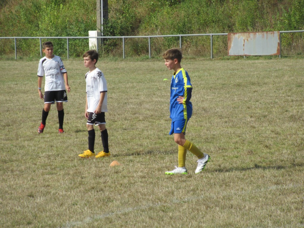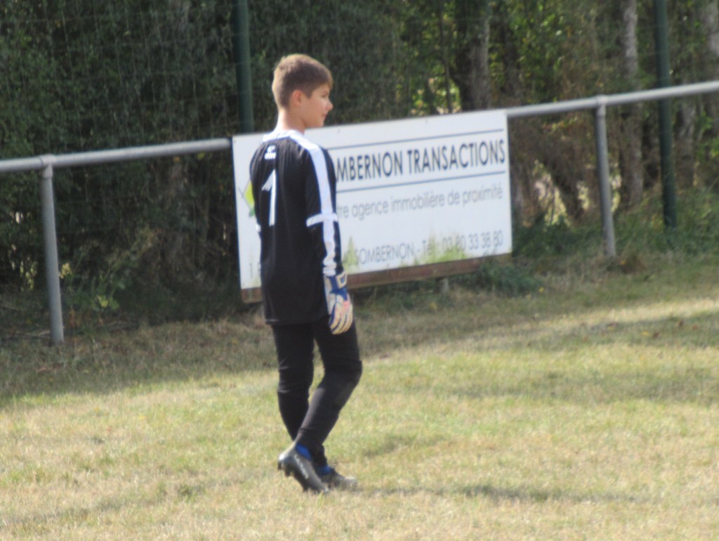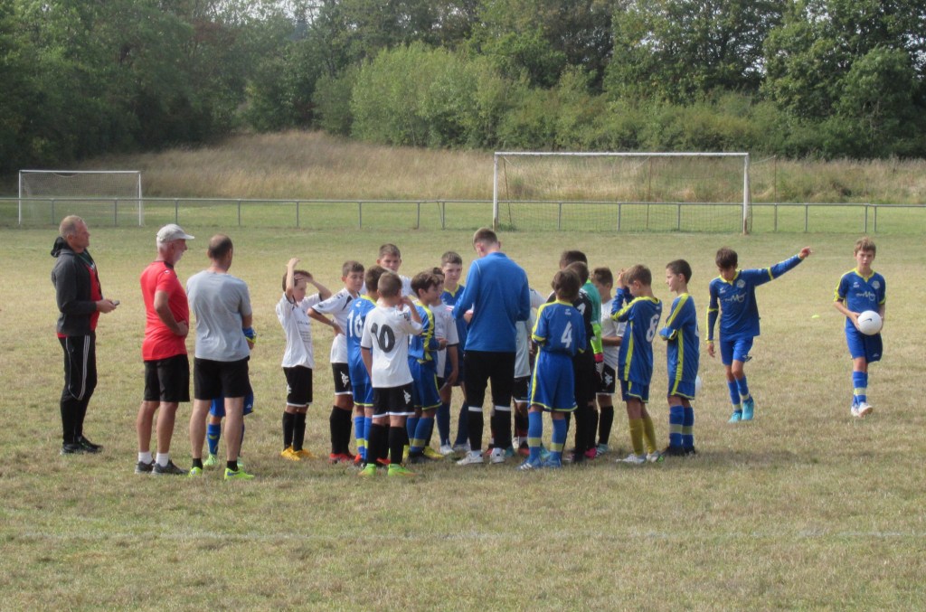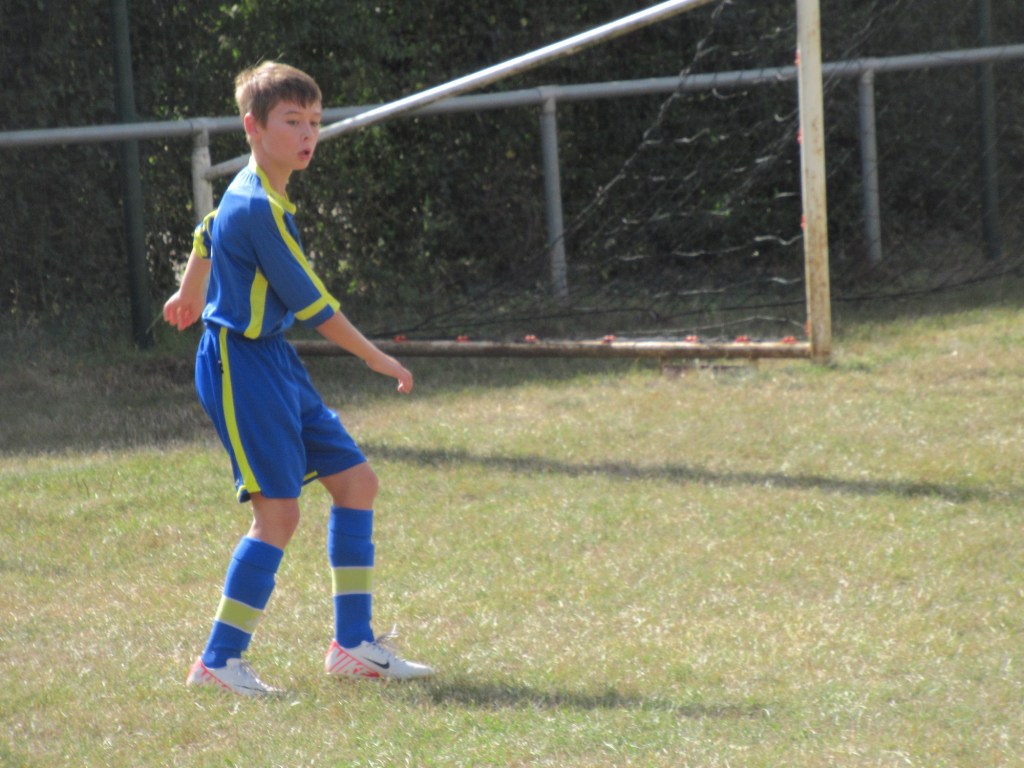 C’était un grand saut dans l’inconnu que ce premier match de championnat D2 pour notre jeune équipe. Avec sept U12 sur les dix joueurs présents, on ne savait pas trop à quelle sauce on allait être mangés ! Le premier quart temps est très bon avec beaucoup d’envie et d’application. Et Martin va ouvrir le score d’un superbe coup franc sous la transversale, 1 à 0. L’avantage sera malheureusement de courte durée puisque USSE égalise sur pénalty suite à une main dans la surface, 1 à 1. Les bleus connaissent un petit passage à vide mais Samuel réussit une très belle parade pour éviter le pire. Dans le dernier quart temps, ça sent le KO. Les visiteurs ont un temps fort mais ne convertissent pas. Après avoir laissé passer l’orage, les bleus finissent mieux et auraient pu, à leur tour, faire basculer le match en leur faveur… En vain ! Pour une première, se sont des débuts très prometteurs qu’il faudra confirmer. Fini le temps des matchs faciles.