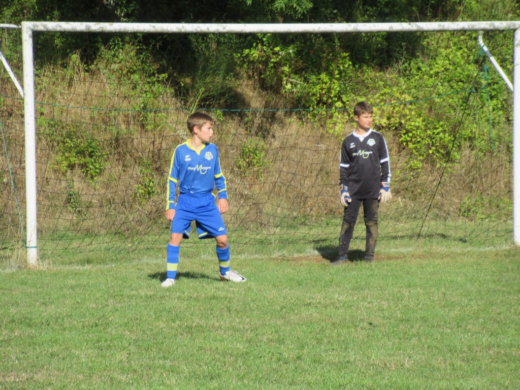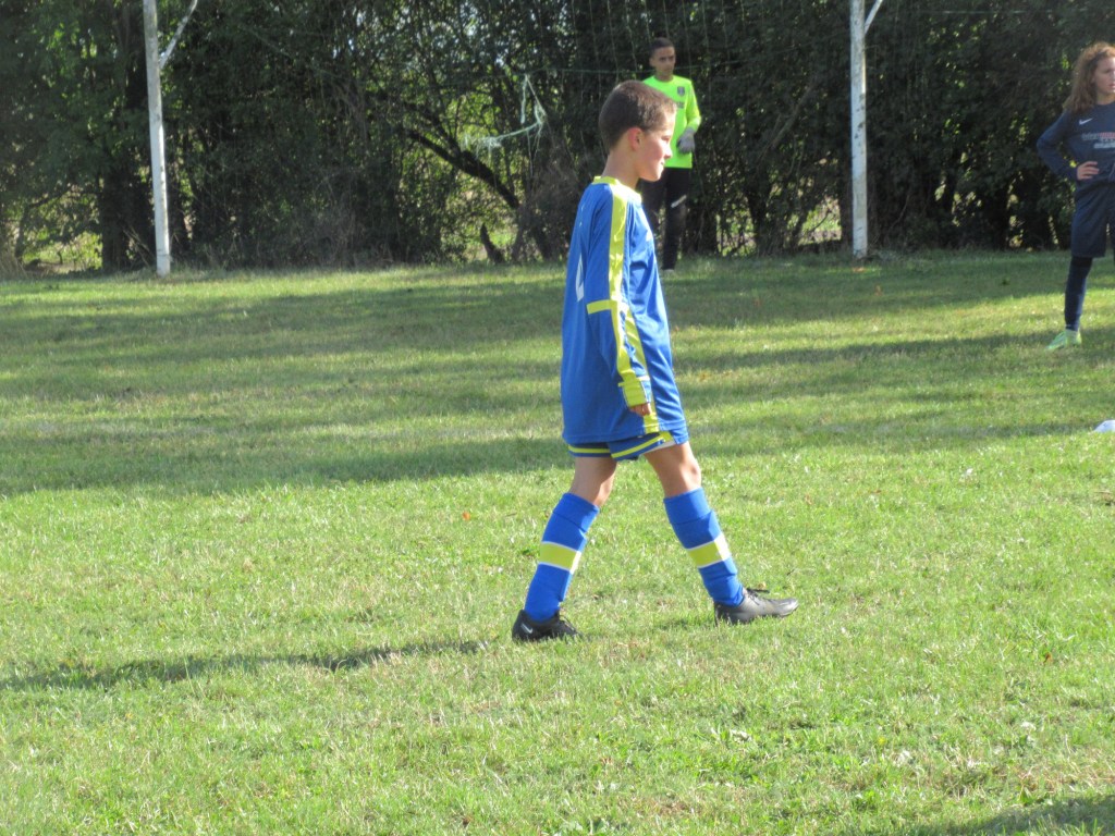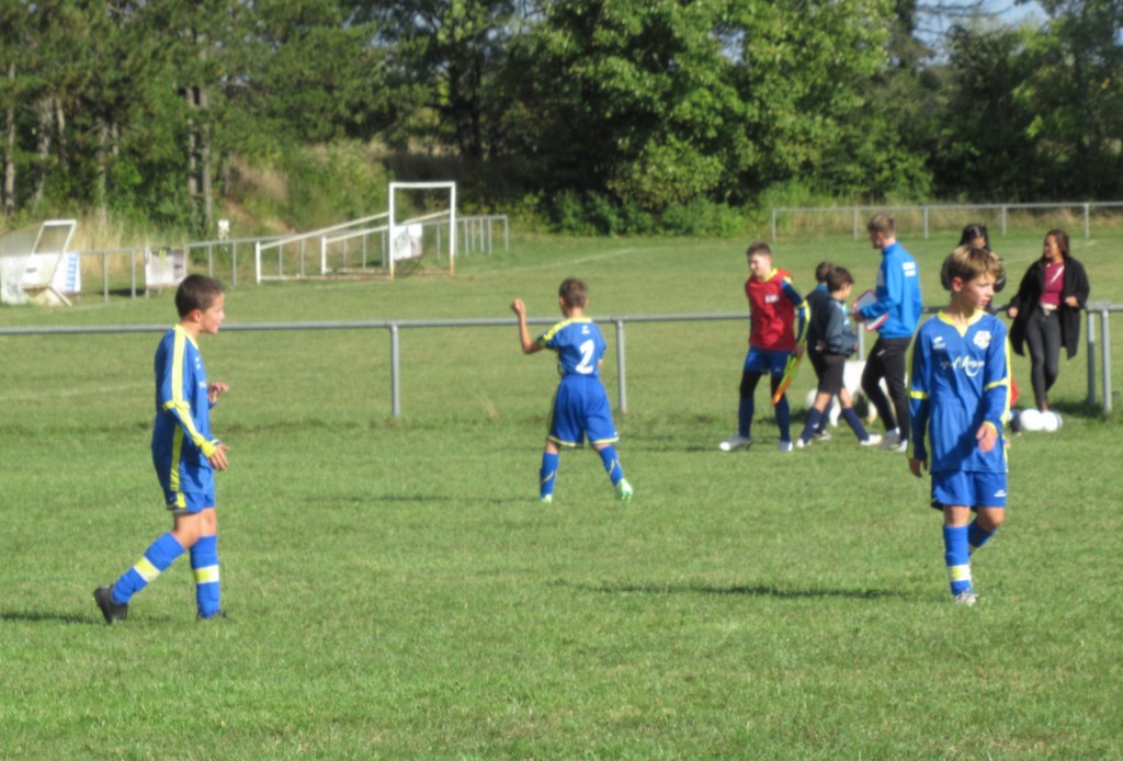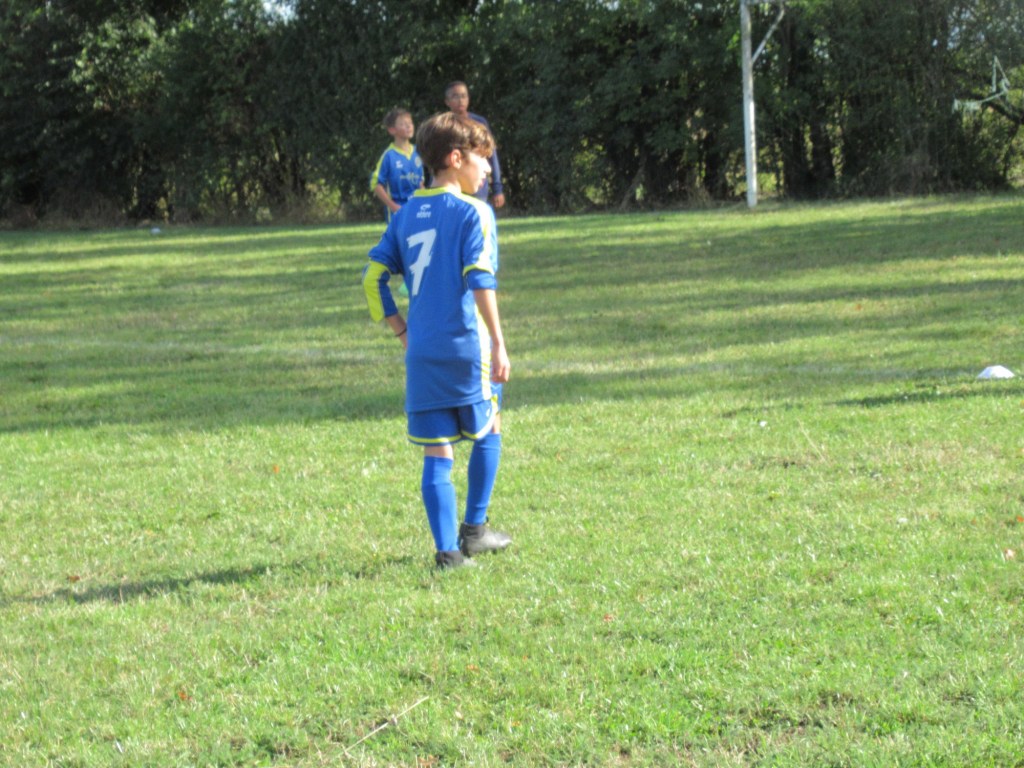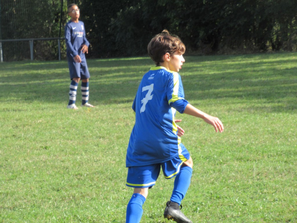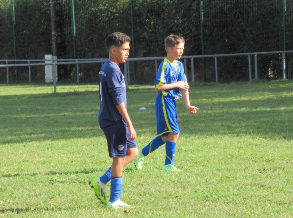 Rapidement menés 0-2 suite à une frappe lointaine et une de près suite à un joli mouvement collectif, nos petits bleus ont trouvé les ressources pour revenir dans la partie. D’abord par Arthur, puis sur un pénalty de Noé, 2 à 2. Mais les visiteurs, plus athlétiques, ont mis Samuel à contribution. Ils trouveront néanmoins les filets sur une frappe croisée qui fait poteau rentrant, 2-3. On tente bien de revenir mais c’est encore Samuel qui doit s’employer. Une dernière occasion sur un coup franc de Martin ne trouve hélas pas preneur. Un point en deux matchs, mais le contenu est consistant. Il ne manque plus que le petit zest de réussite pour faire basculer le match du bon côté. On ne lâche rien !