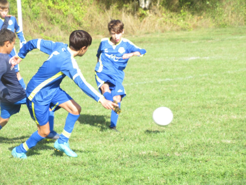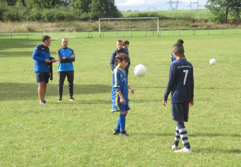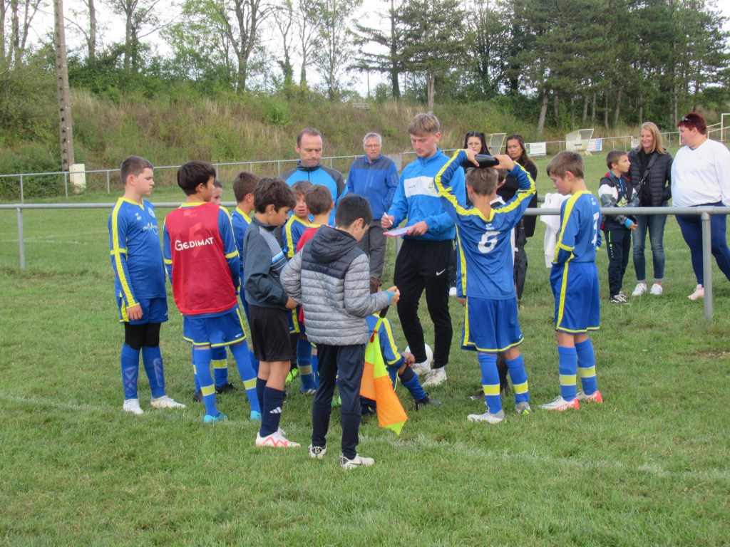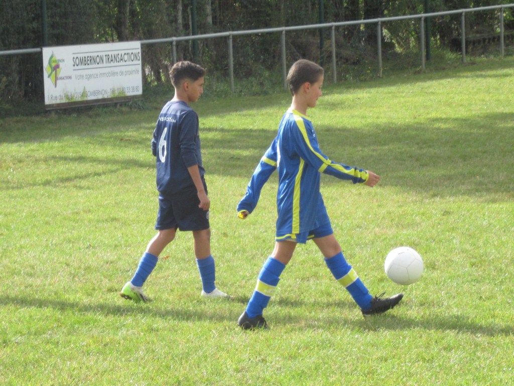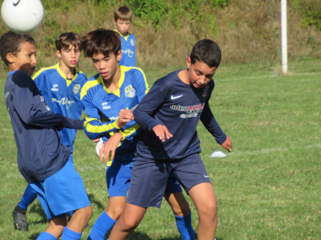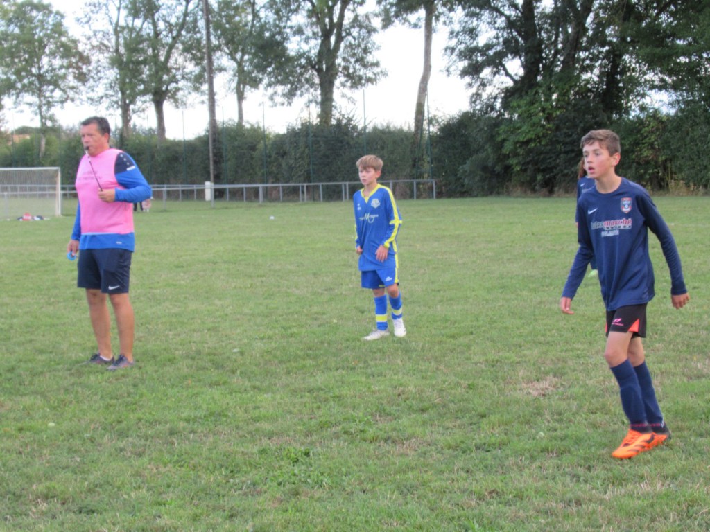 Rapidement menés 0-2 suite à une frappe lointaine et une de près suite à un joli mouvement collectif, nos petits bleus ont trouvé les ressources pour revenir dans la partie. D’abord par Arthur, puis sur un pénalty de Noé, 2 à 2. Mais les visiteurs, plus athlétiques, ont mis Samuel à contribution. Ils trouveront néanmoins les filets sur une frappe croisée qui fait poteau rentrant, 2-3. On tente bien de revenir mais c’est encore Samuel qui doit s’employer. Une dernière occasion sur un coup franc de Martin ne trouve hélas pas preneur. Un point en deux matchs, mais le contenu est consistant. Il ne manque plus que le petit zest de réussite pour faire basculer le match du bon côté. On ne lâche rien !