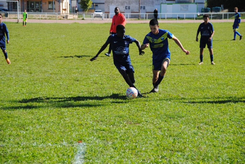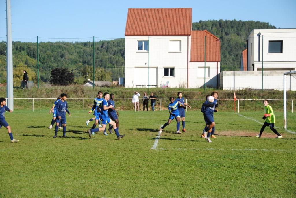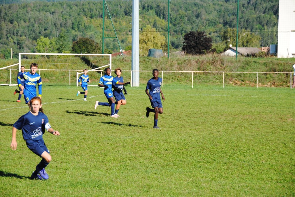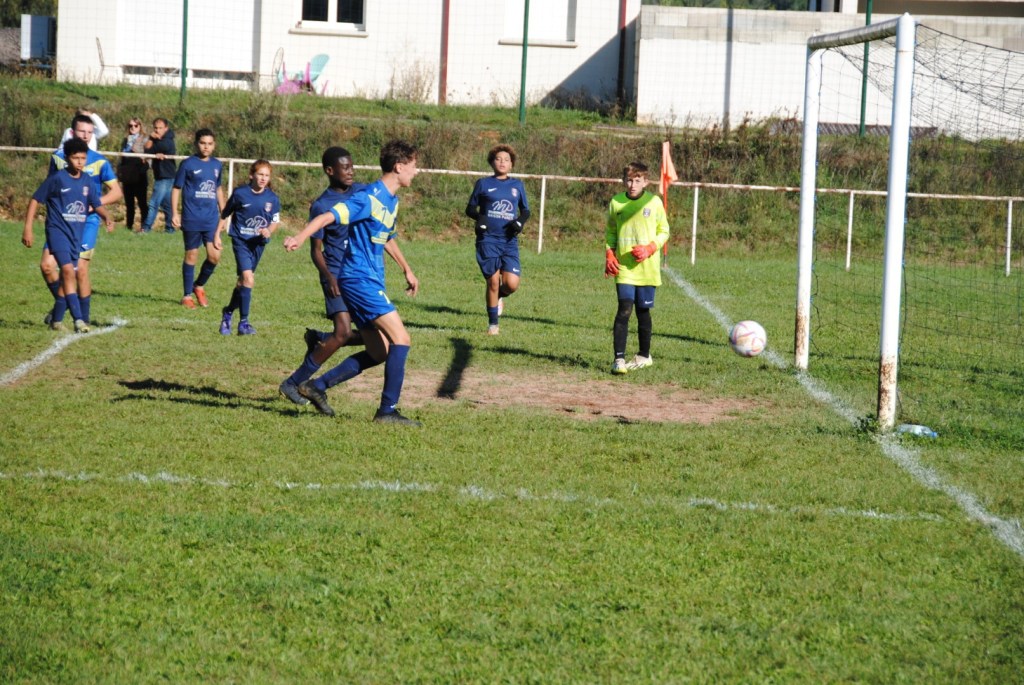 Les U15 de l’Entente l’emportent largement face à USCD 7 bus à 2 après une première période bien maîtrisée à l’issue de laquelle ils mèneront 5 à 0 avec des doublés de Jephthé et de Clément et un but de Louis. Ils se sont assurés le monopole du jeu grâce à une envie permanente de bien jouer au foot. Après le repos, forts de leur avance, l’intensité a nettement baissé. Les visiteurs sont revenus avec de bien meilleures intentions et se sont procurés de belles occasions. Après un but de Maxime, ils marqueront deux buts coup sur coup dont un sur pénalty. L’Entente se procure de très nettes occasions en contre mais pêche dans la finition. En toute fin de rencontre Mattéo inscrit toutefois un but pour assurer le nul en deuxième période.