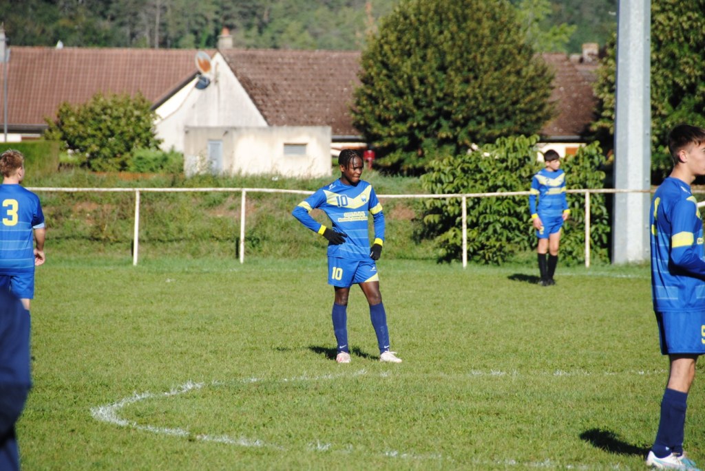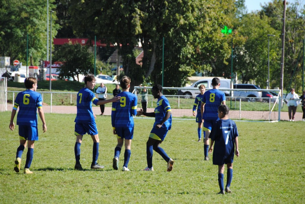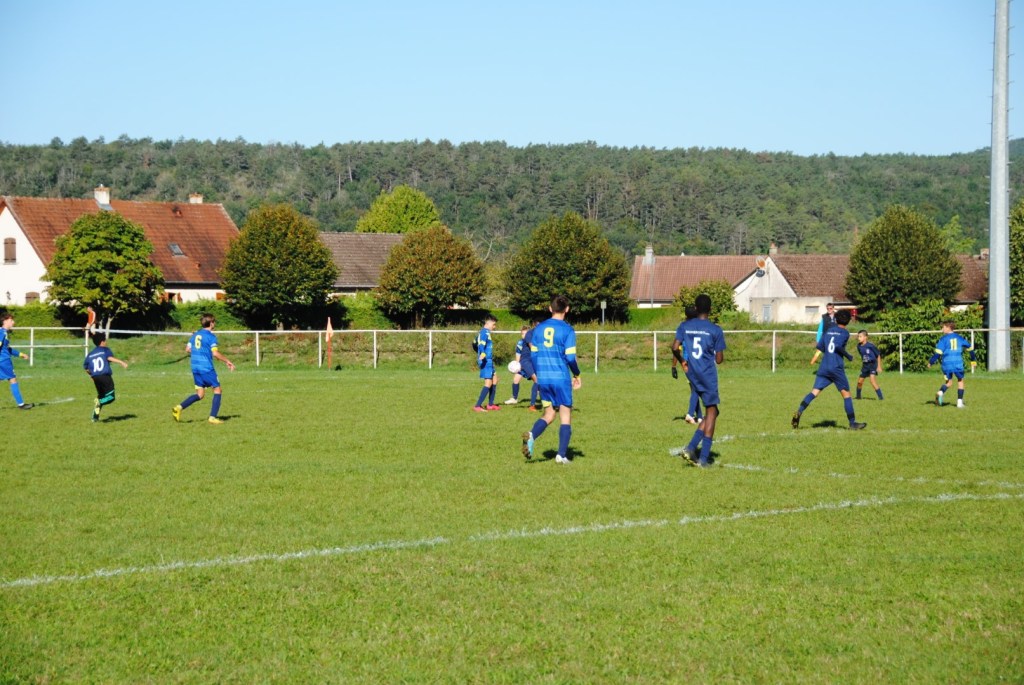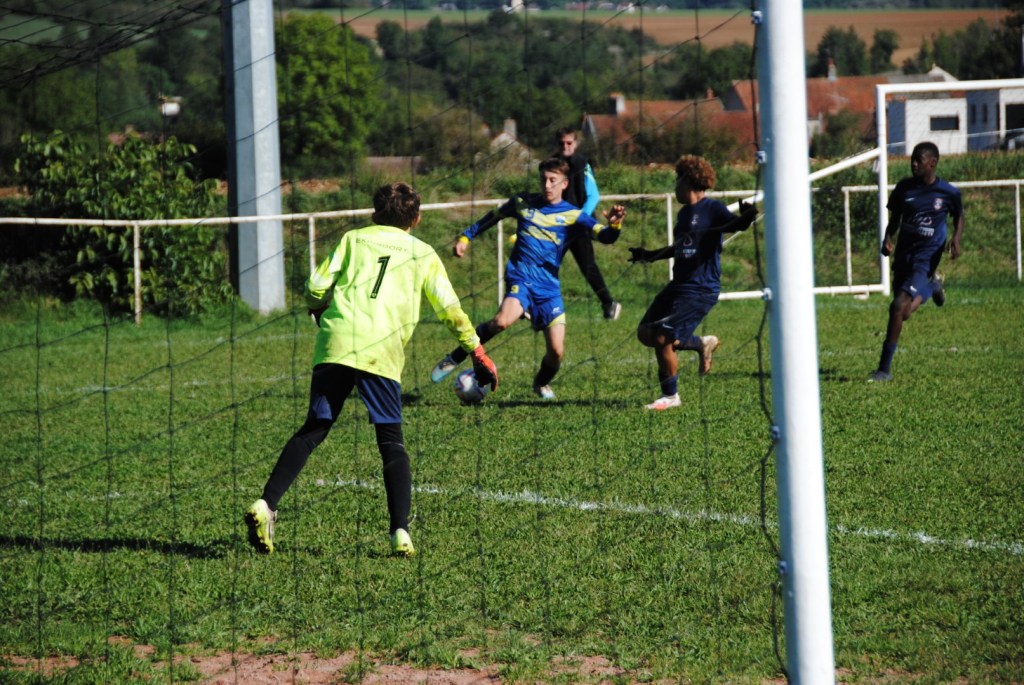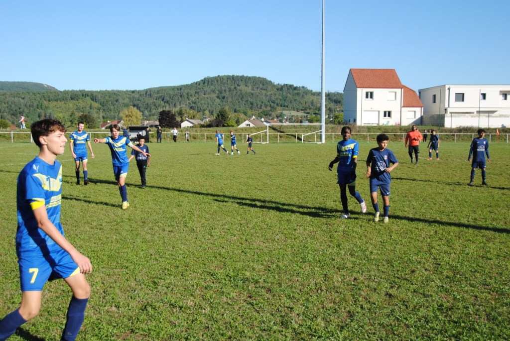 Les U15 de l’Entente l’emportent largement face à USCD 7 bus à 2 après une première période bien maîtrisée à l’issue de laquelle ils mèneront 5 à 0 avec des doublés de Jephthé et de Clément et un but de Louis. Ils se sont assurés le monopole du jeu grâce à une envie permanente de bien jouer au foot. Après le repos, forts de leur avance, l’intensité a nettement baissé. Les visiteurs sont revenus avec de bien meilleures intentions et se sont procurés de belles occasions. Après un but de Maxime, ils marqueront deux buts coup sur coup dont un sur pénalty. L’Entente se procure de très nettes occasions en contre mais pêche dans la finition. En toute fin de rencontre Mattéo inscrit toutefois un but pour assurer le nul en deuxième période.