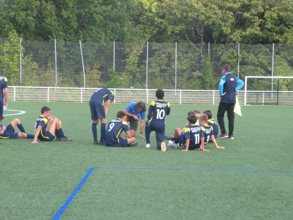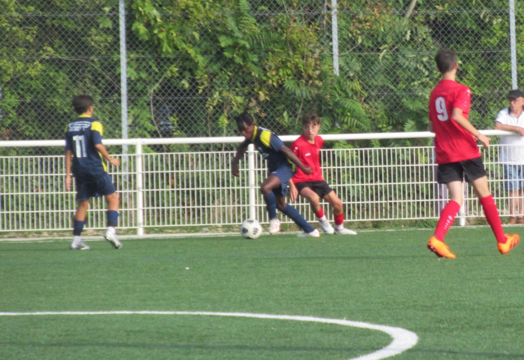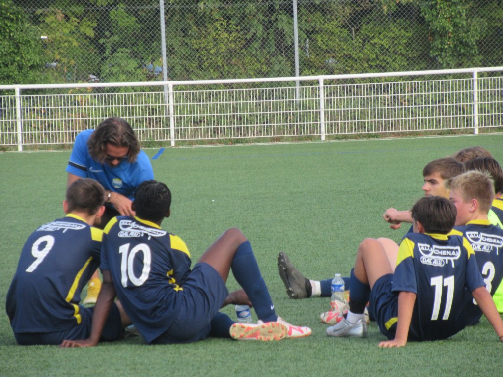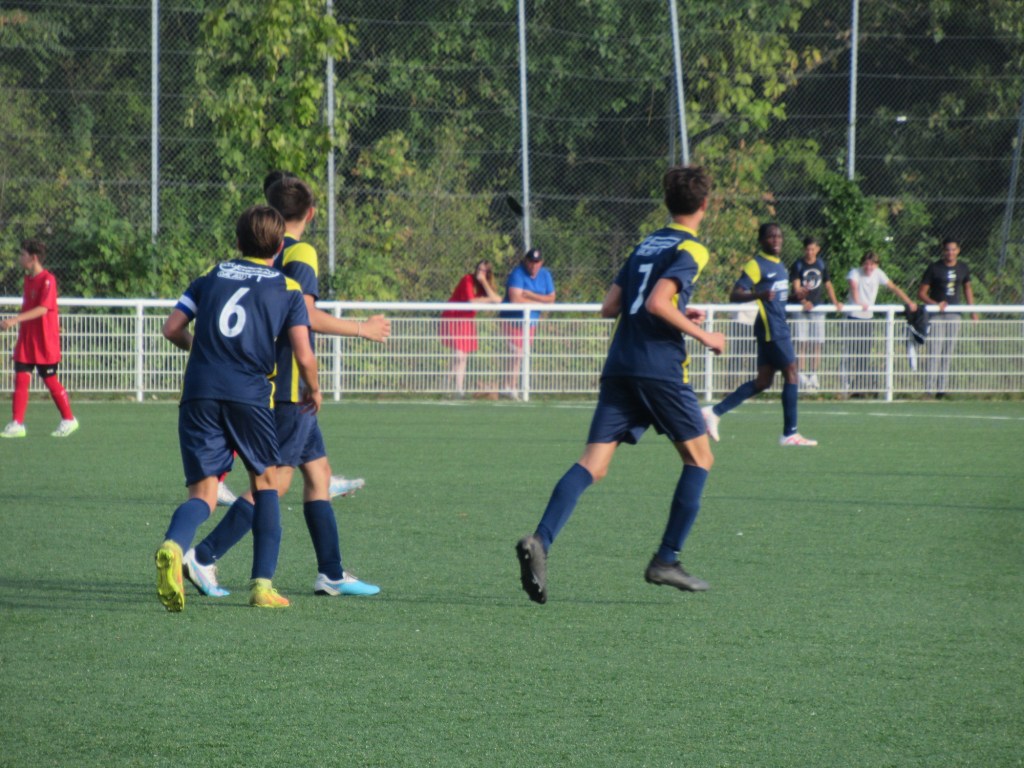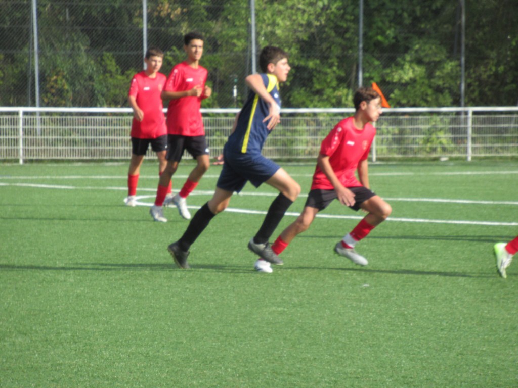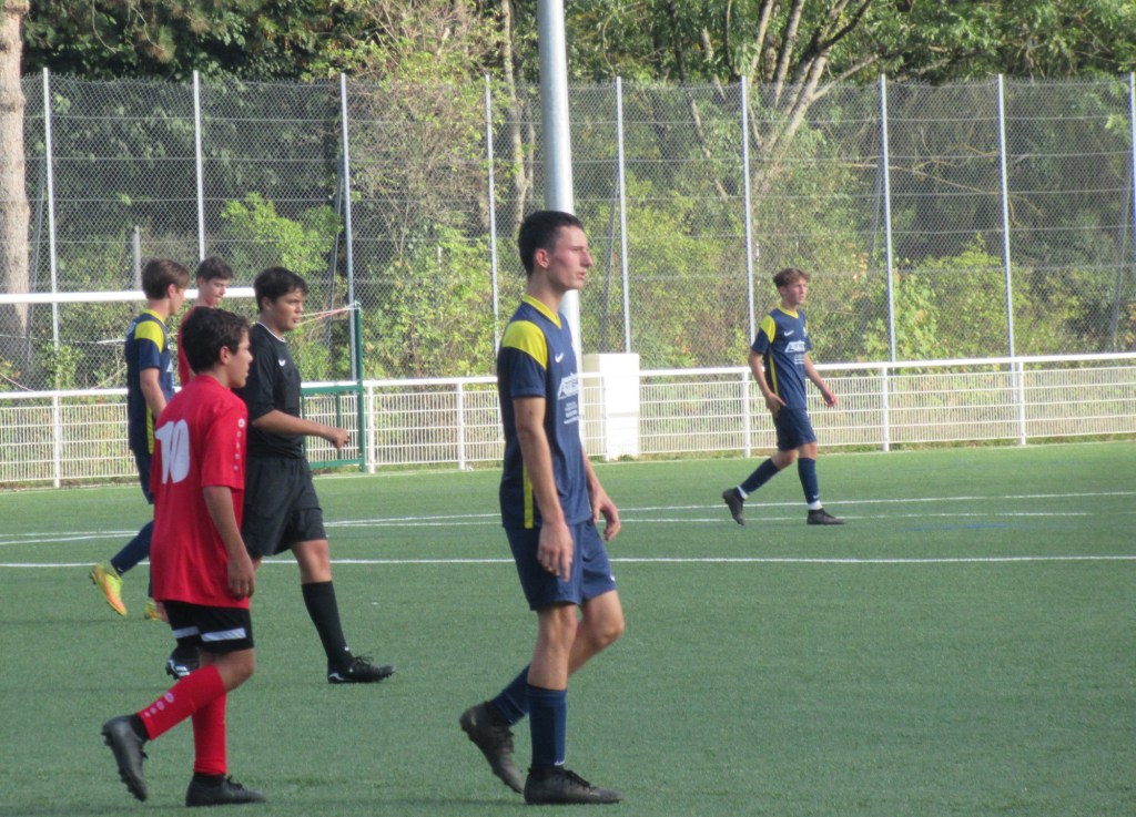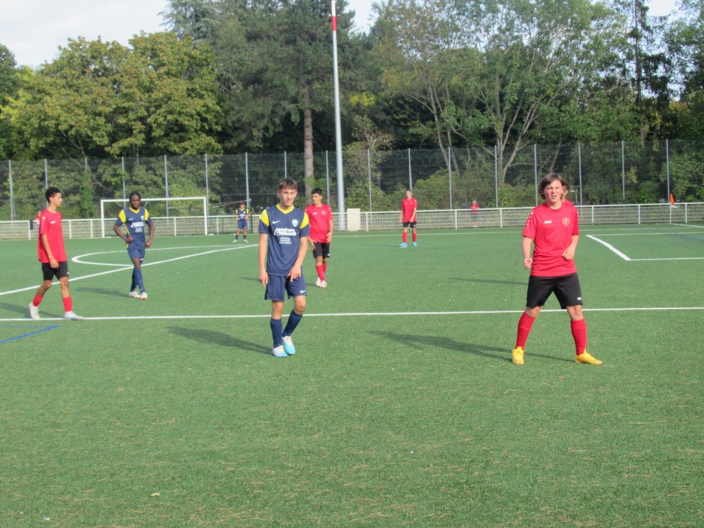 Victoire tranquille des U15 même s’ils se sont mis en difficultés tous seuls en laissant les locaux revenir à 2-1. D’entrée de jeu les partenaires d’Andréa imposent leur jeu et font la différence dès le premier quart d’heure avec des réalisations de Maxime qui, bien servi par Louis A, mystifie deux défenseurs dans la surface et vient battre le gardien d’un plat du pied sobre et efficace. Jephthé l’imite deux minutes plus tard en profitant d’une belle déviation de Mattéo. Les occasions se multiplient. Une tête astucieuse de Maxime trouve la transversale. Puis inexplicablement l’ailier droit adverse pénètre dans la surface sans que personne ne vienne l’attaquer. Il a tout e temps d’ajuster Gabin d’une belle frappe. Dijon ULFE revient à 2 – 1 sur sa seule occasion ! En seconde période, l’Entente se donne de l’air par Louis C qui marque de prêt. Les occasions se succèdent. Jephthé ajoute un quatrième but après un bel enchaînement à l’entrée de la surface, 4 à 1. Gabin nous gratifie de deux belles sorties qui soulagent la défense. La malchance poursuit Maxime qui, cette fois, trouve la base du poteau. Avec un peu plus de lucidité, l’addition aurait pu être beaucoup plus lourde.
